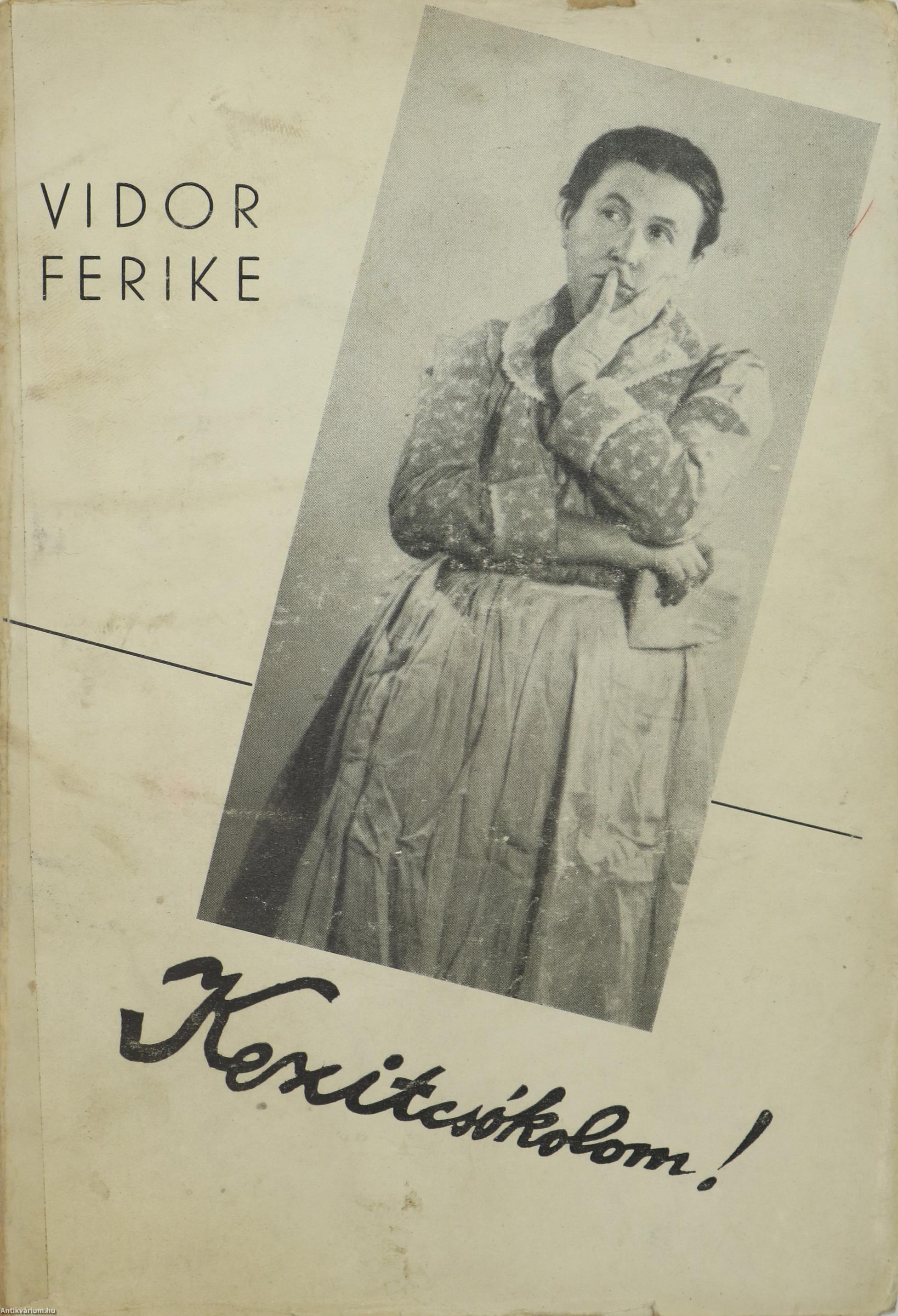 A kötet szerzője Vidor Ferike /Wechselmann Franciska/ (Budapest, 1889. június 28. – Budapest, 1970. január 23.) magyar színésznő, érdemes művész, Gábor Andor író felesége. A Vígszínházban, majd Kecskeméten, azt követően pedig Nagy Endre kabaréjában játszott. A legnagyobb sikert, a Gábor Andor által írt cselédnóták előadásával érte el. 1945 után a Nemzeti Színház, később pedig a Vidám Színpad tagja lett. Szerepeit példátlan átéléssel, remek színpadi adottságokkal vitte színpadra. 1941-ben jelent meg a "Kezitcsókolom!" című könyve, melyben emlékeit írta meg. Mozgalmas, egyéni humorú regénye igazi kuriózum.
