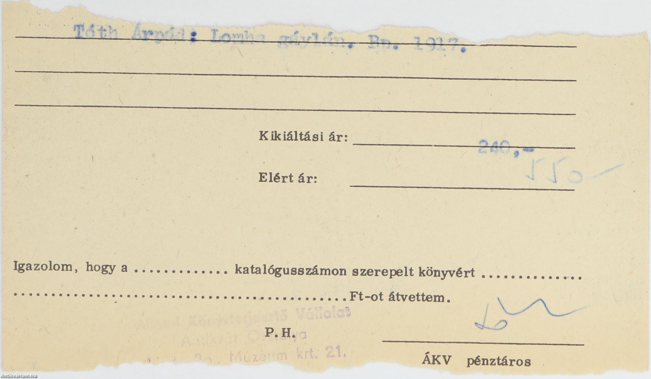 A könyv szerepelt az ÁKV 77. évi XI. aukciójának 639. tételeként.