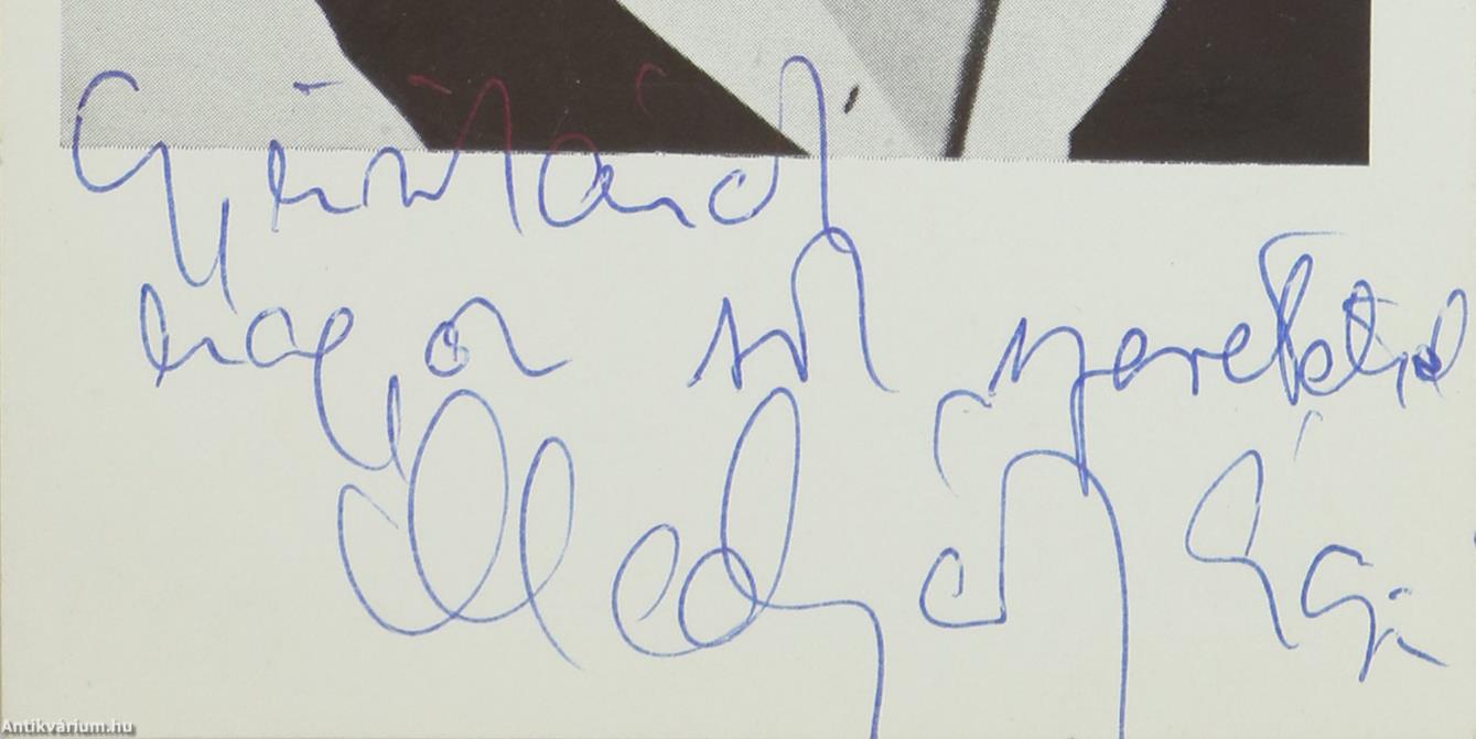Különálló, egyedi melléklet:Mednyánszky Ági színésznő fekete-fehér fényképe. A fotólapon Mednyánszky Ági tollal beírt, névre szóló dedikációja olvasható:"G.-nak nagyon sok szeretettel Mednyánszky Ági". A kép mérete: 15x9 cm. A hátlap üres. Sérülésmentes, jó állapotban megőrzött darab.