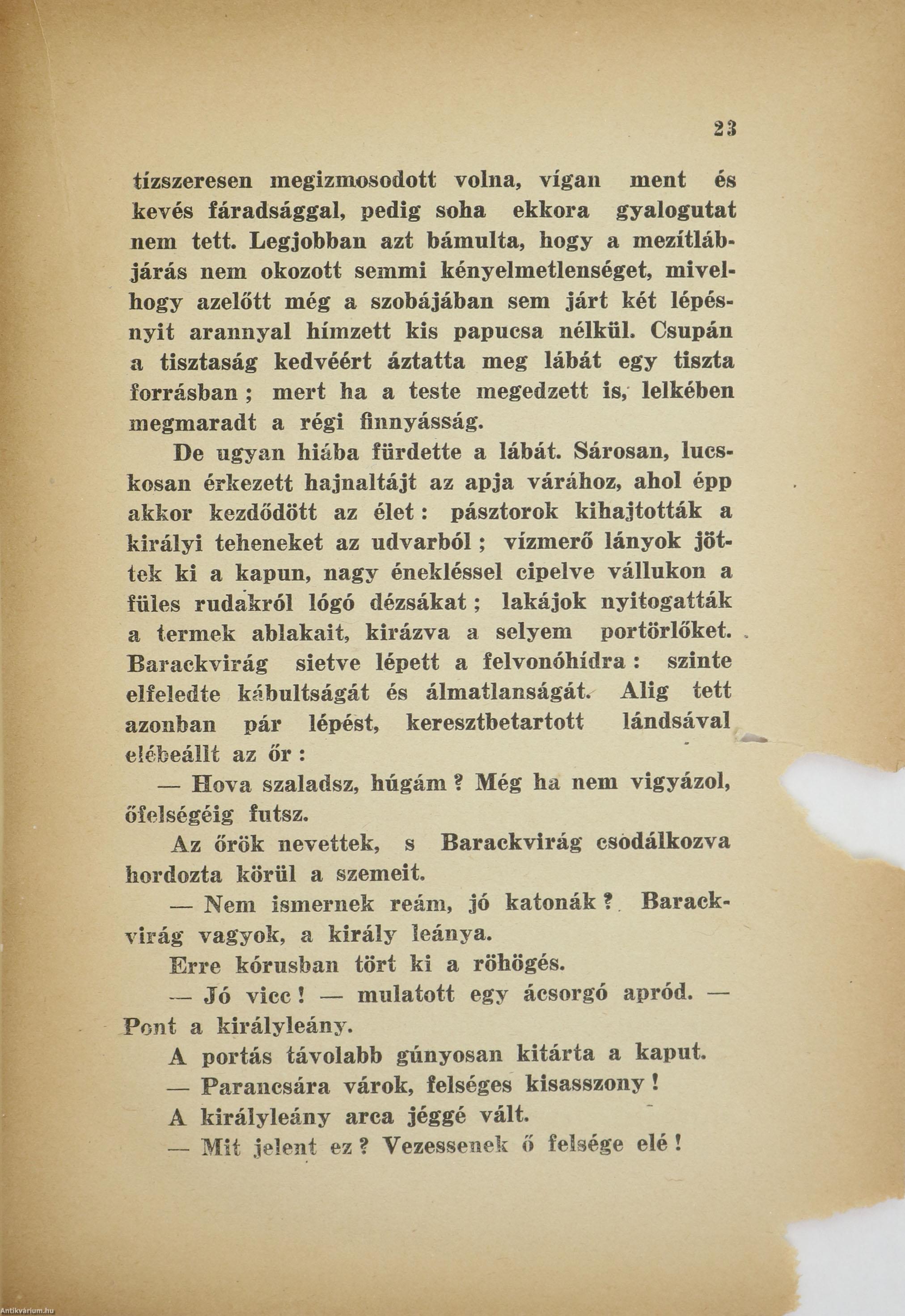 Kiadói félvászon kötésben lévő példány színes rajzzal illusztrált, feliratos címfedéllel, feliratos könyvgerinccel, foltos hátlappal, sérült, hiányos előzéklapokkal, egy kijáró lappal (címkép), több sérült, hiányos lapszéllel (a hiány szöveget nem érint).