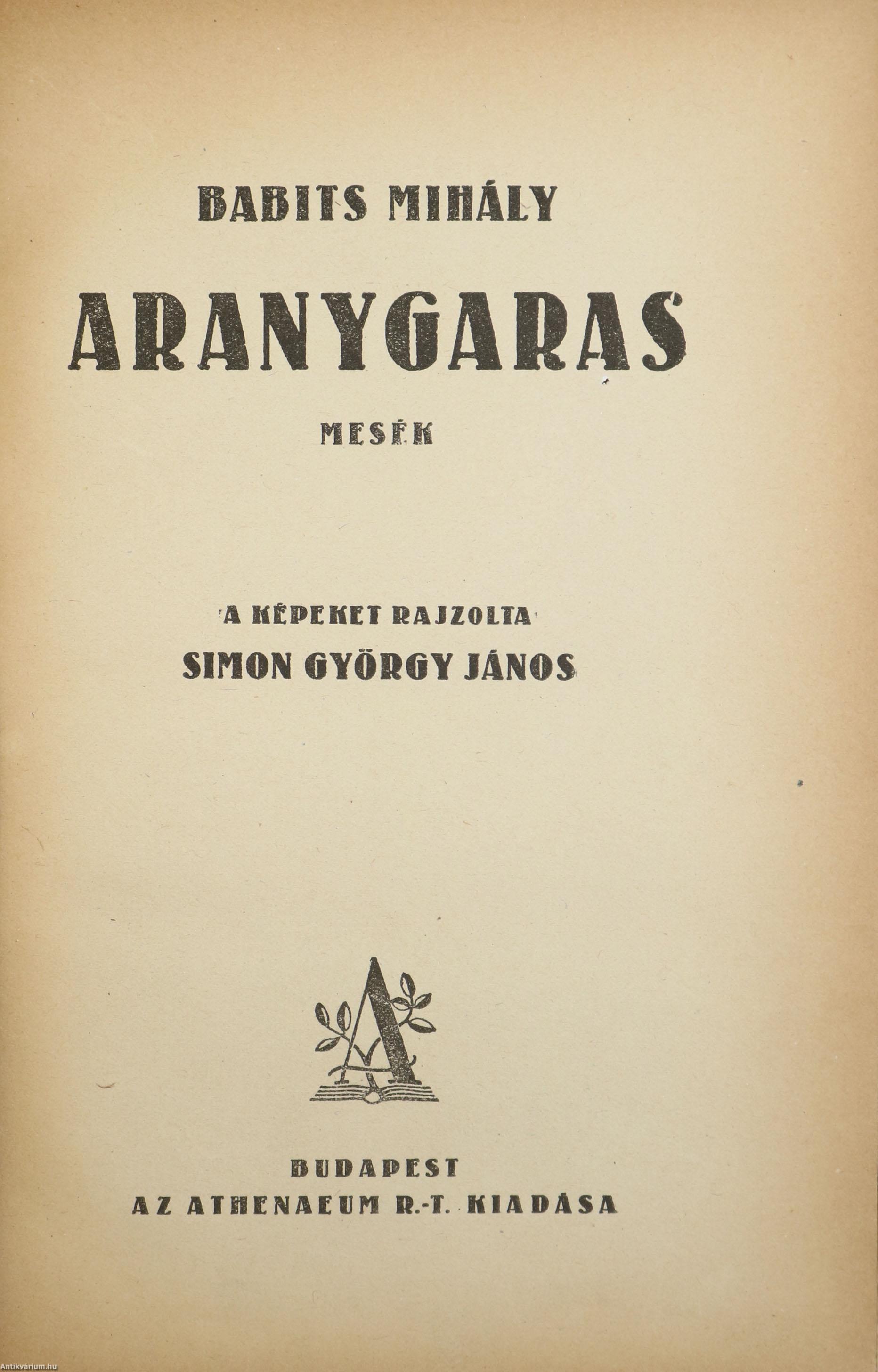 Első kiadás. Aranygaras. Mesék. Írta: Babits Mihály.