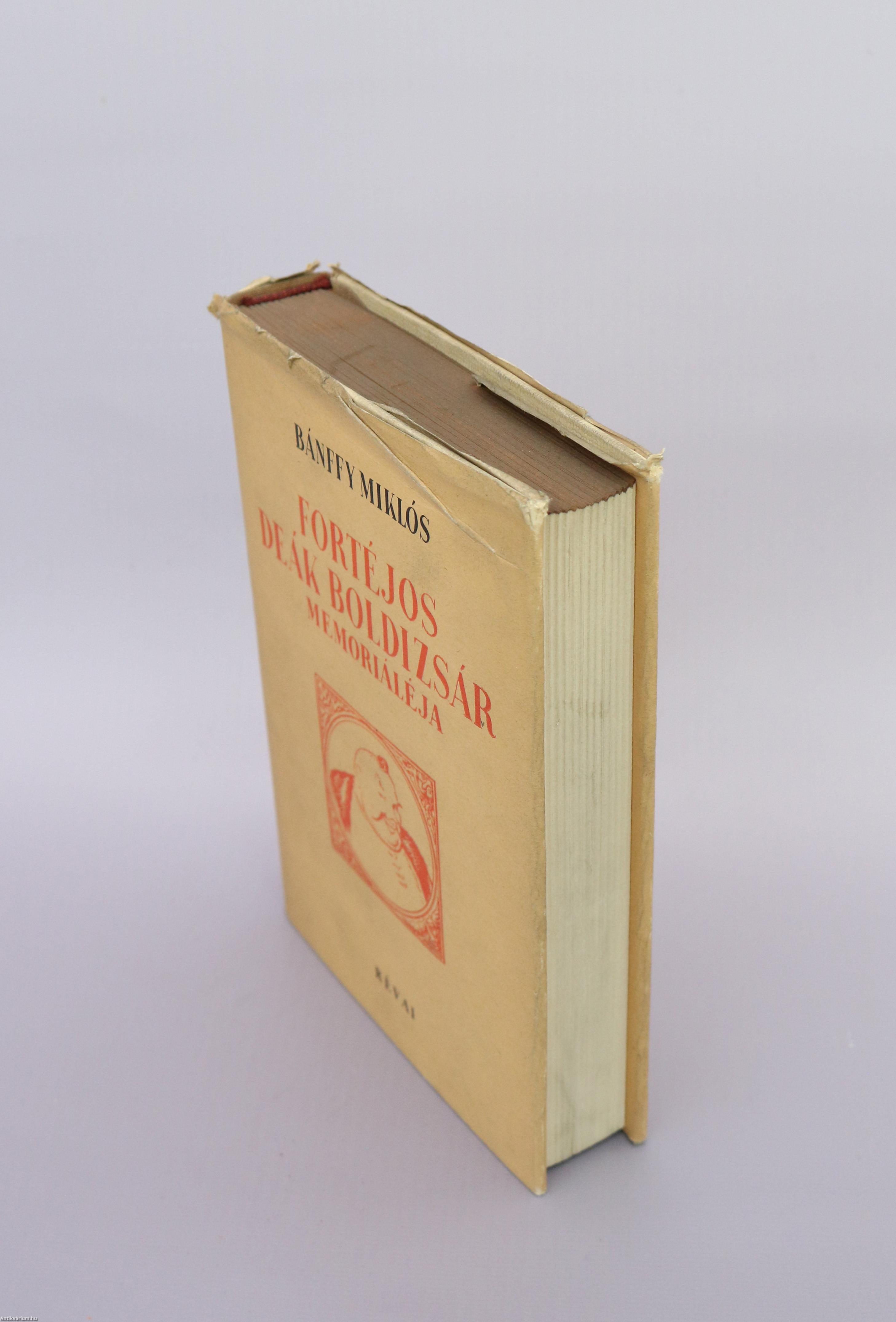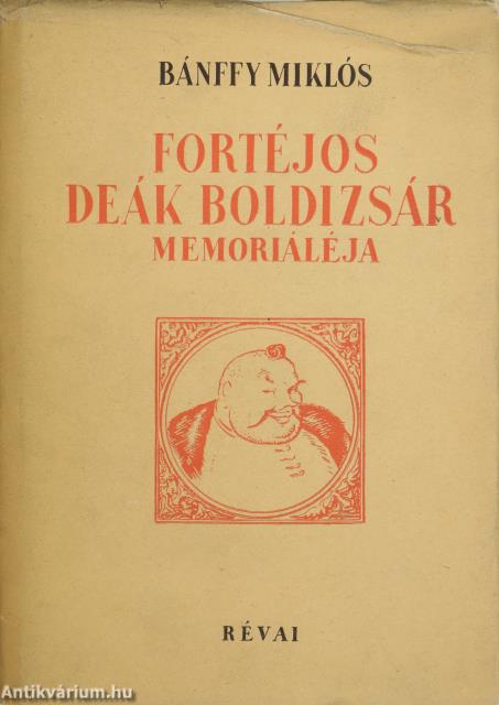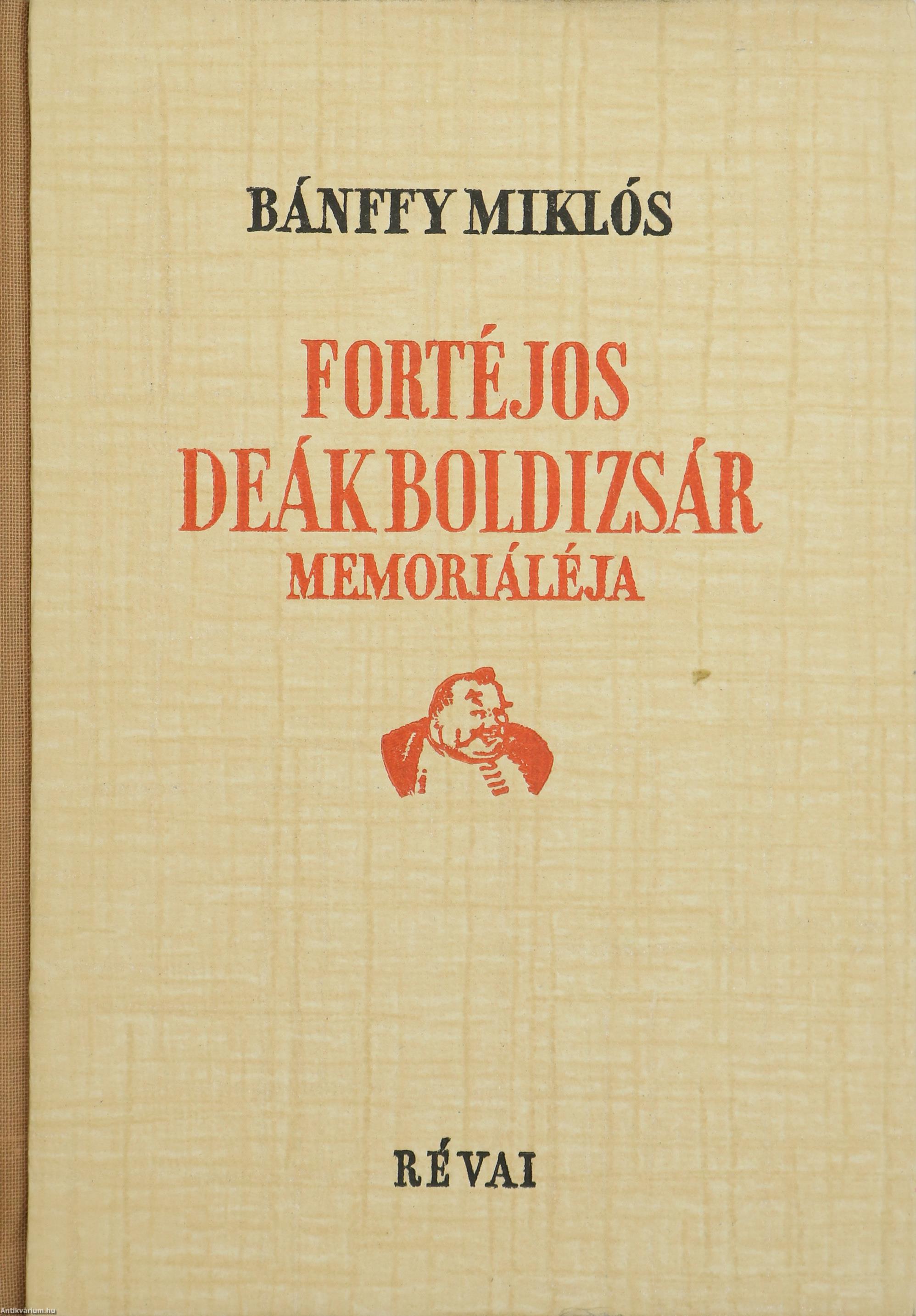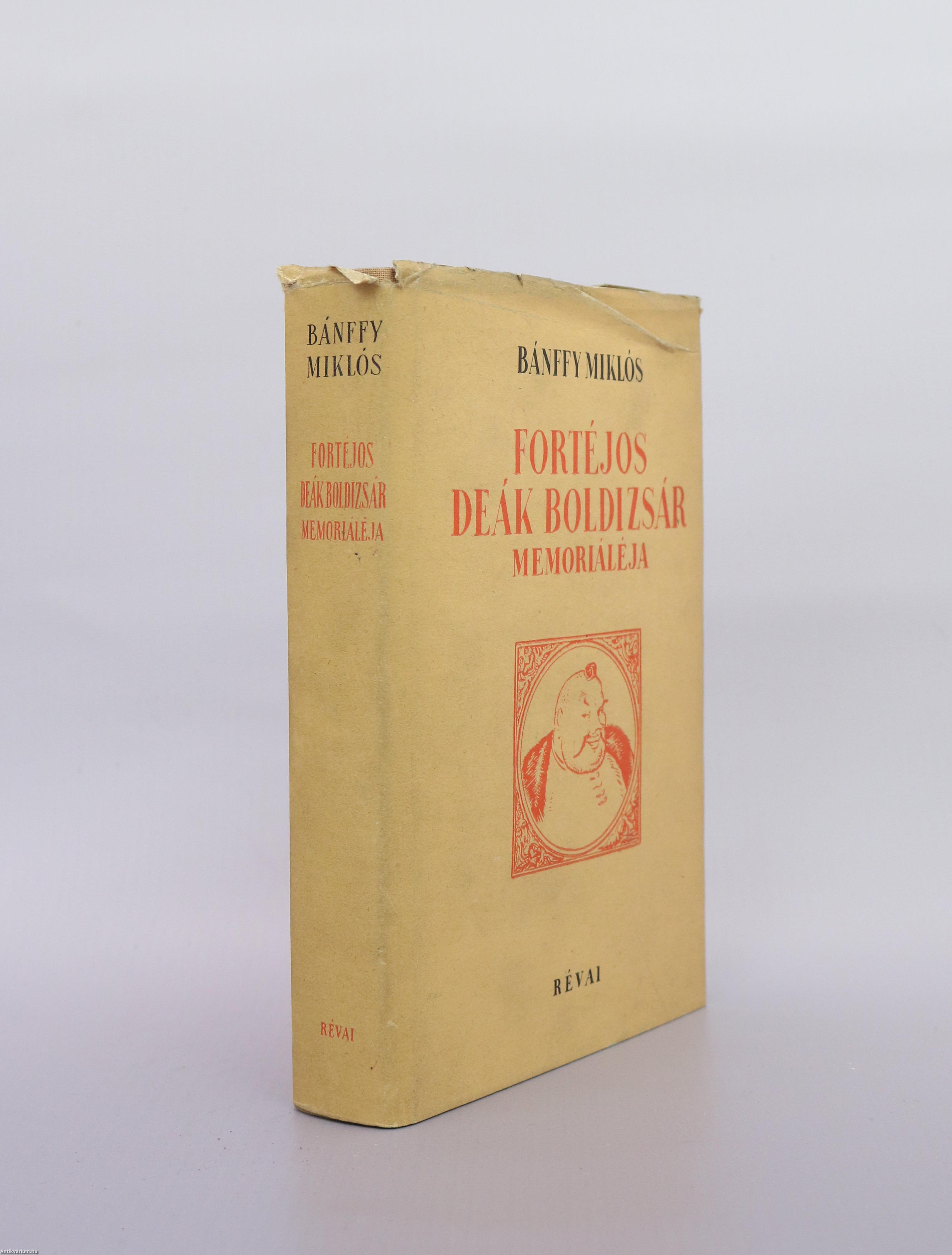 A Bánffy Miklós munkái c. sorozatban megjelent kötet (számjelzés nélkül). Fortéjos Deák Boldizsár memorialéja. Írta: Bánffy Miklós. Új kiadás. Bánffy Miklós fekete-fehér, szöveg közti rajzaival és iniciálékkal illusztrált, tartalomjegyzékkel ellátott kötet. Nyomtatta a Révai Nyomda, Budapesten. Kiadói félvászon kötésben lévő példány két színnel feliratozott címfedéllel, aranyozott feliratos könyvgerinccel, színezett felső lapélekkel, színes kiadói előzéklapokkal, tiszta belívekkel, hiánytalan állapotban, két színnel feliratozott, illusztrált, fülszöveges kiadói borítófedélben.
