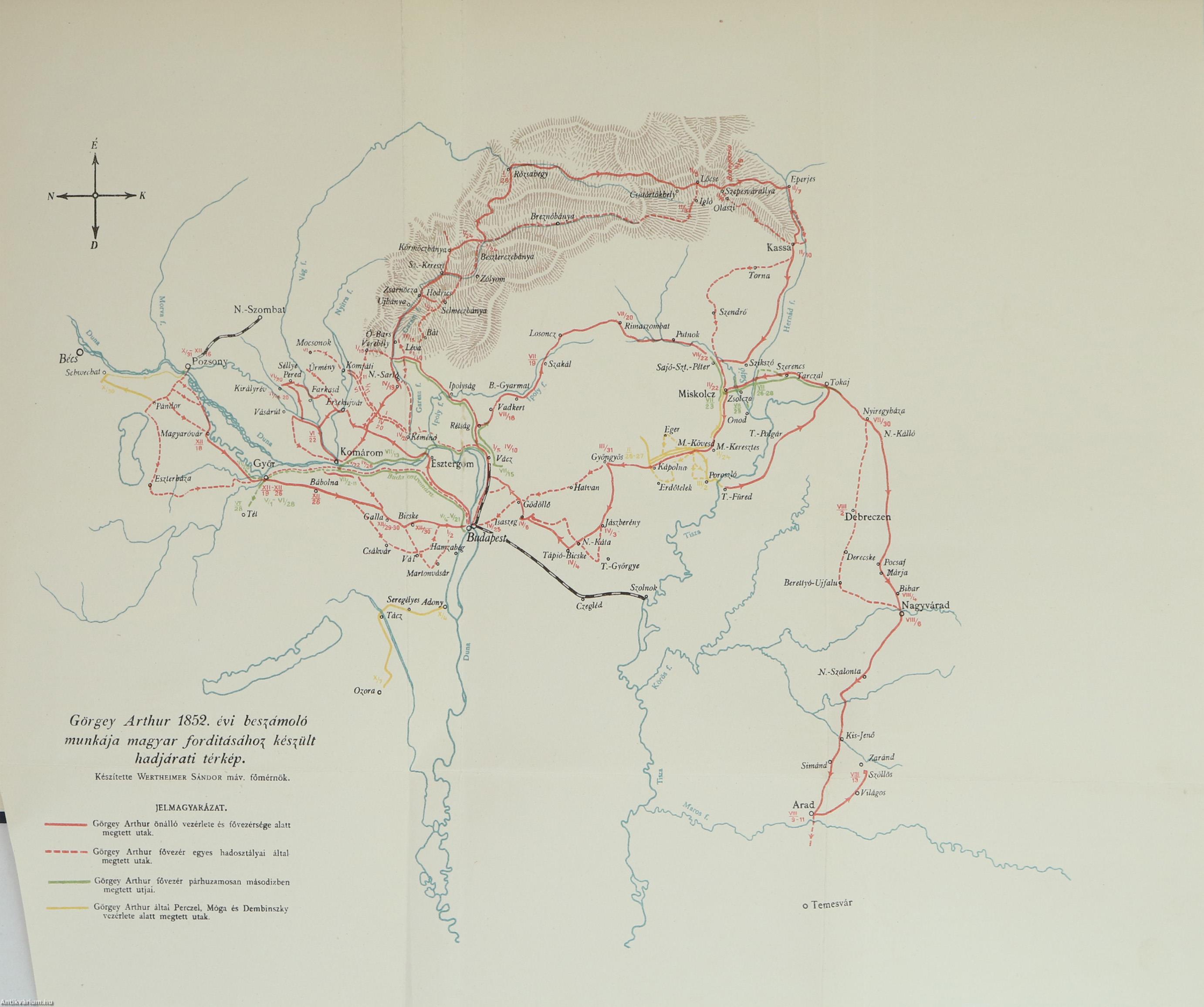Huszonegyedik fejezet. A magyar főhadsereg harczmezején történt események Buda bevételétől június hó közepéig. - A magyar és az osztrák főhadseregek kölcsönös állása ez időben. - Az ellenség haditerve felőli sejtelmeim. - Az orosz beavatkozás számerejének és komoly kezdetének bizonytalansága. - Ezen bizonytalanság befolyása elhatározásaimra. - Offensivánk késésének okai. - Szükség esetére való hátrálási vonalaink és egyéb óvintézkedések megállapítása a várható orosz betöréssel szemben 125