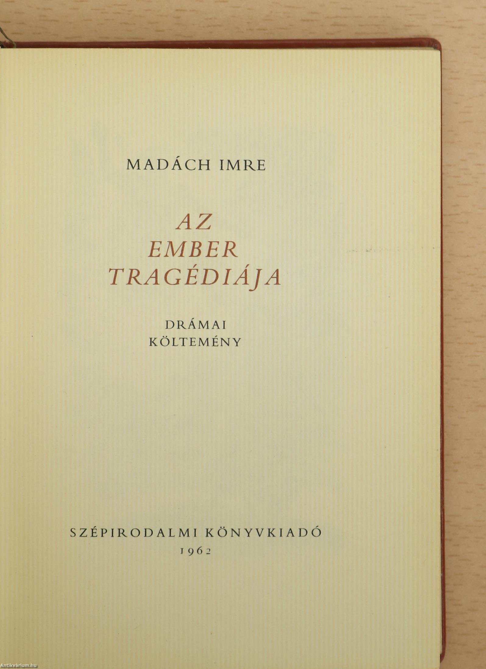 A magyar irodalom legnagyobb drámai költeménye, amely az emberiség létének értelmét, célját kutatja, éppúgy, mint nagy rokonai, Goethe Faustja vagy Byron Manfrédja, több mint száz éve jelent meg...