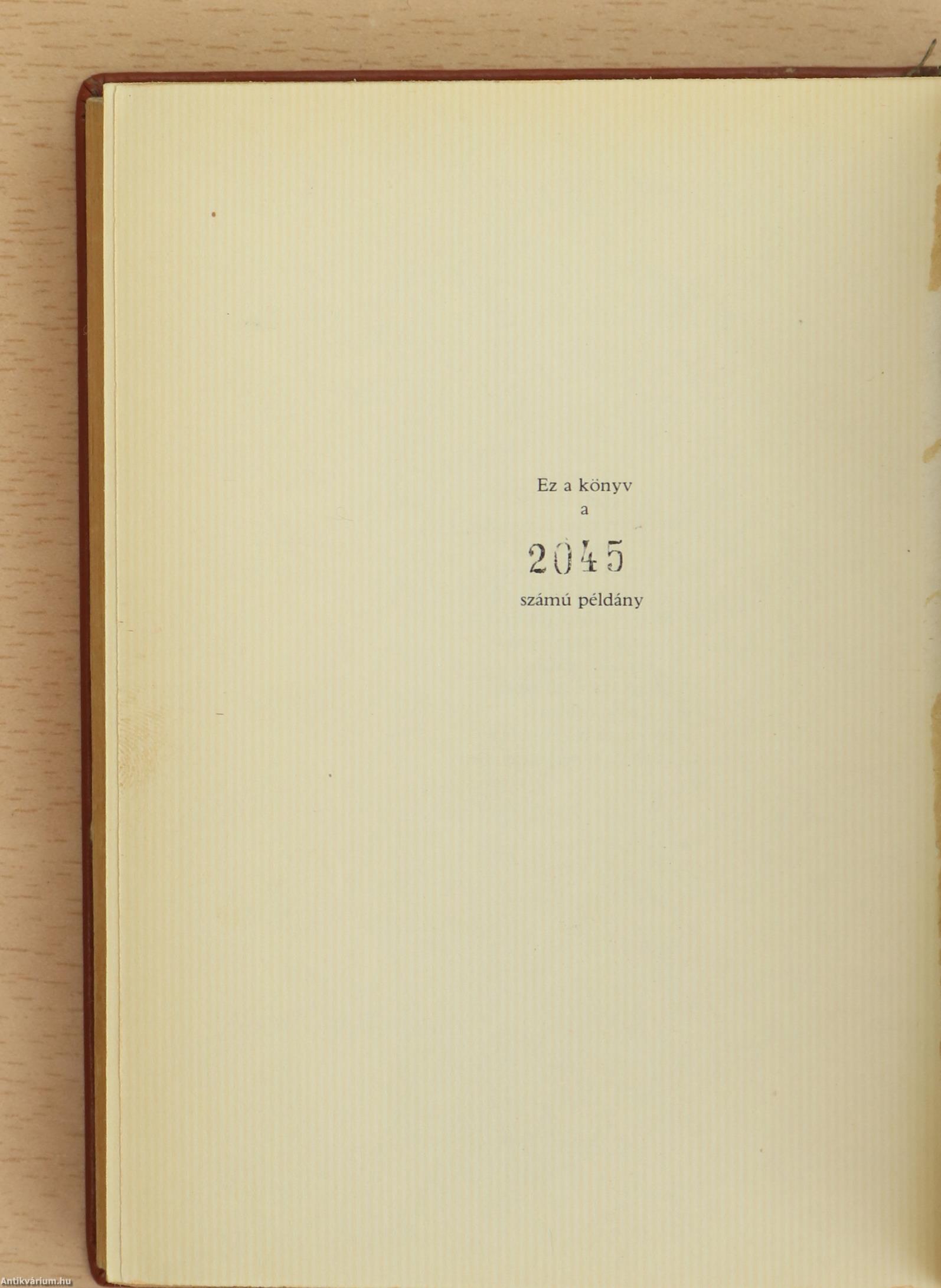 Jó állapotú példány. Számozott példány. A könyv 2000 számozott példányban jelent meg. Egy fekete-fehér és színes illusztrációkkal. Színezett lapélekkel. Ez a könyv a 2045 számú példány.