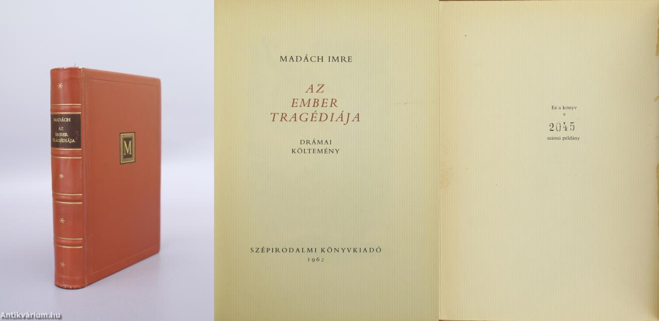 Madách Imre: Az ember tragédiája (számozott, bőrkötéses, bibliofil példány)(illusztráció: Nagyajtay Teréz)
