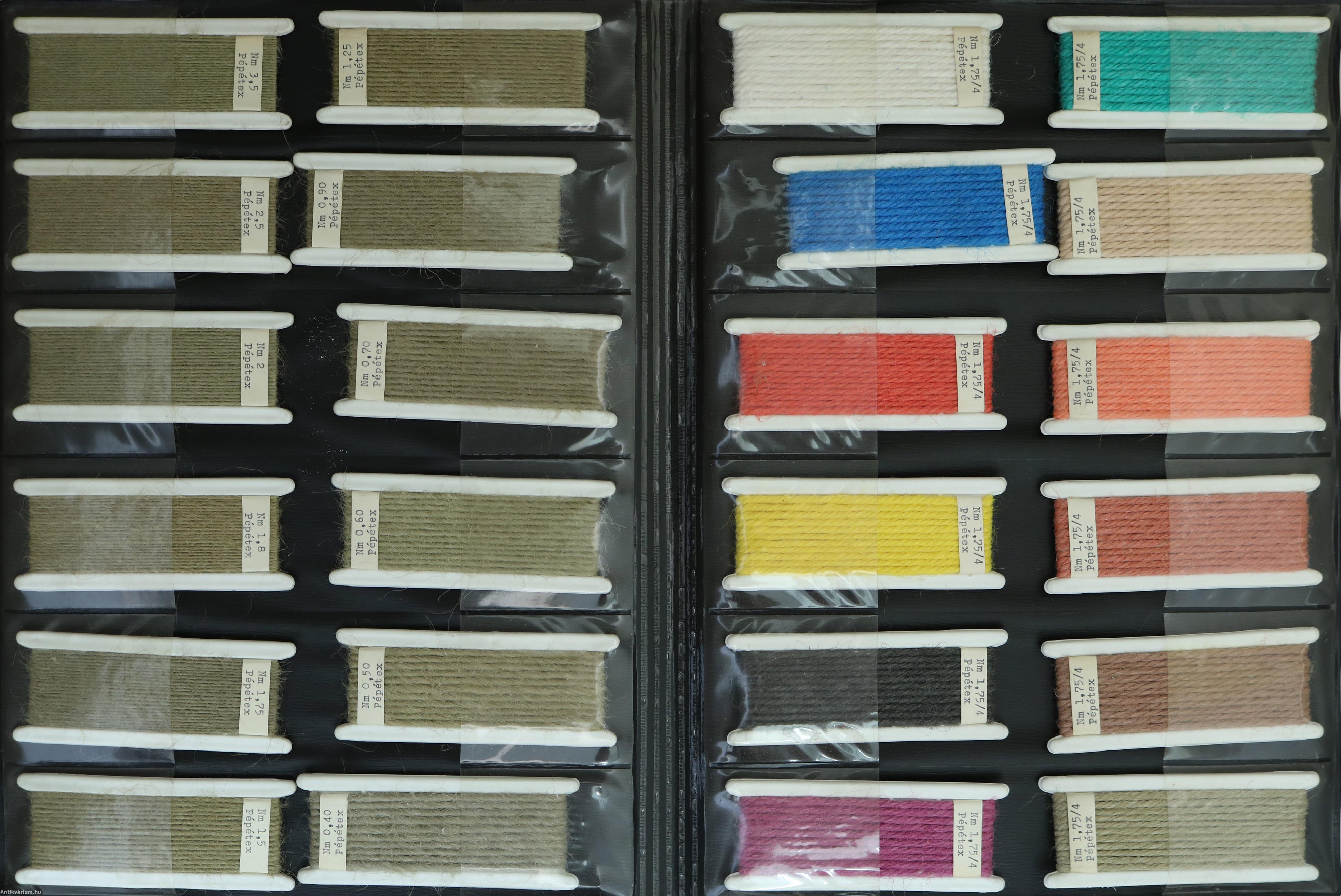 96 db natúr és színes, a Szegedi Kenderfonógyár által készített zsineg mintát tartalmazó gyűjtemény. Az összeállítás darabjai, 4 db a minták tárolására kialakított, kiadói műanyag albumban helyezkednek el. Az egyes darabok fel címkézettek, a címkéken az adott zsineg vastagsága látható (Nm). A vastagságot jelző címkéken kívül a gyűjtemény más szöveges részt nem tartalmaz.