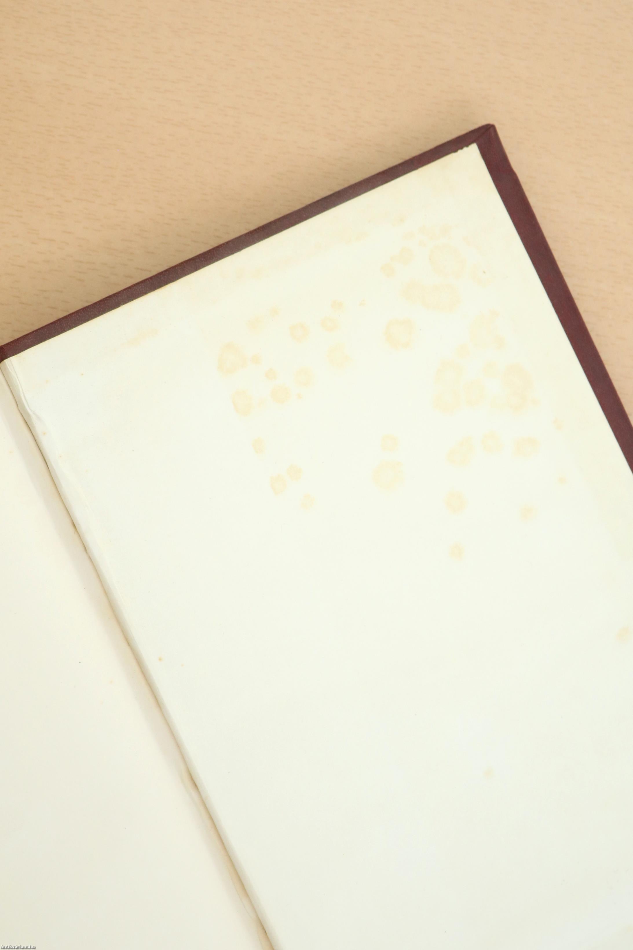 Az előzéklapon ajándékozási bejegyzés, ragasztott címke és ex libris pecsétnyom található. A borító belseje és néhány lap foltos.