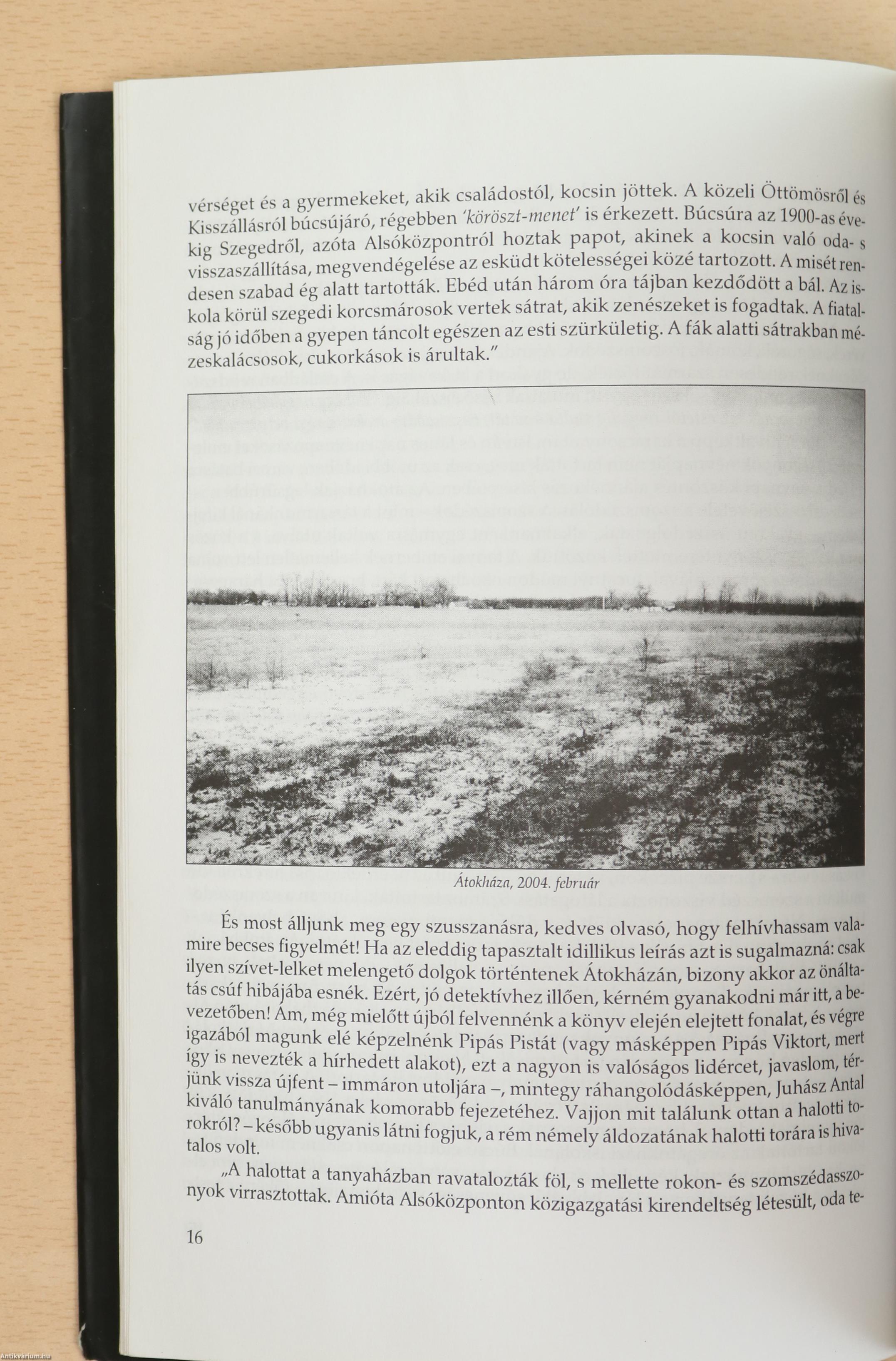 "1932 márciusában egy névtelen feljelentés érkezett a szegedi ügyészségre, amelyben a levélíró arról értesítette a hatóságokat, hogy az a sok titokzatos öngyilkosság, amely az elmúlt évben történt Átokházán és környékén, tulajdonképpen nem is mind öngyilkosság, ellenkezőleg: gyilkosság. Pipás Pista, a tanyavilág ítéletvégrehajtója ölte meg ezeket az embereket, többnyire férfiakat, olykor egy-egy beteg öregasszonyt. A kivégzés kötéllel történt. >Ha a hatóságok közelebbit akarnak tudni - írta a névtelen levél szerzője - akkor faggassák ki a Dobák és a Börcsök család legfiatalabb tagjait, mivel azok még gyerekek, és nem folytak bele a családi tanácsnak abba a döntésébe, amely kimondta a családfenntartókra a halált.<