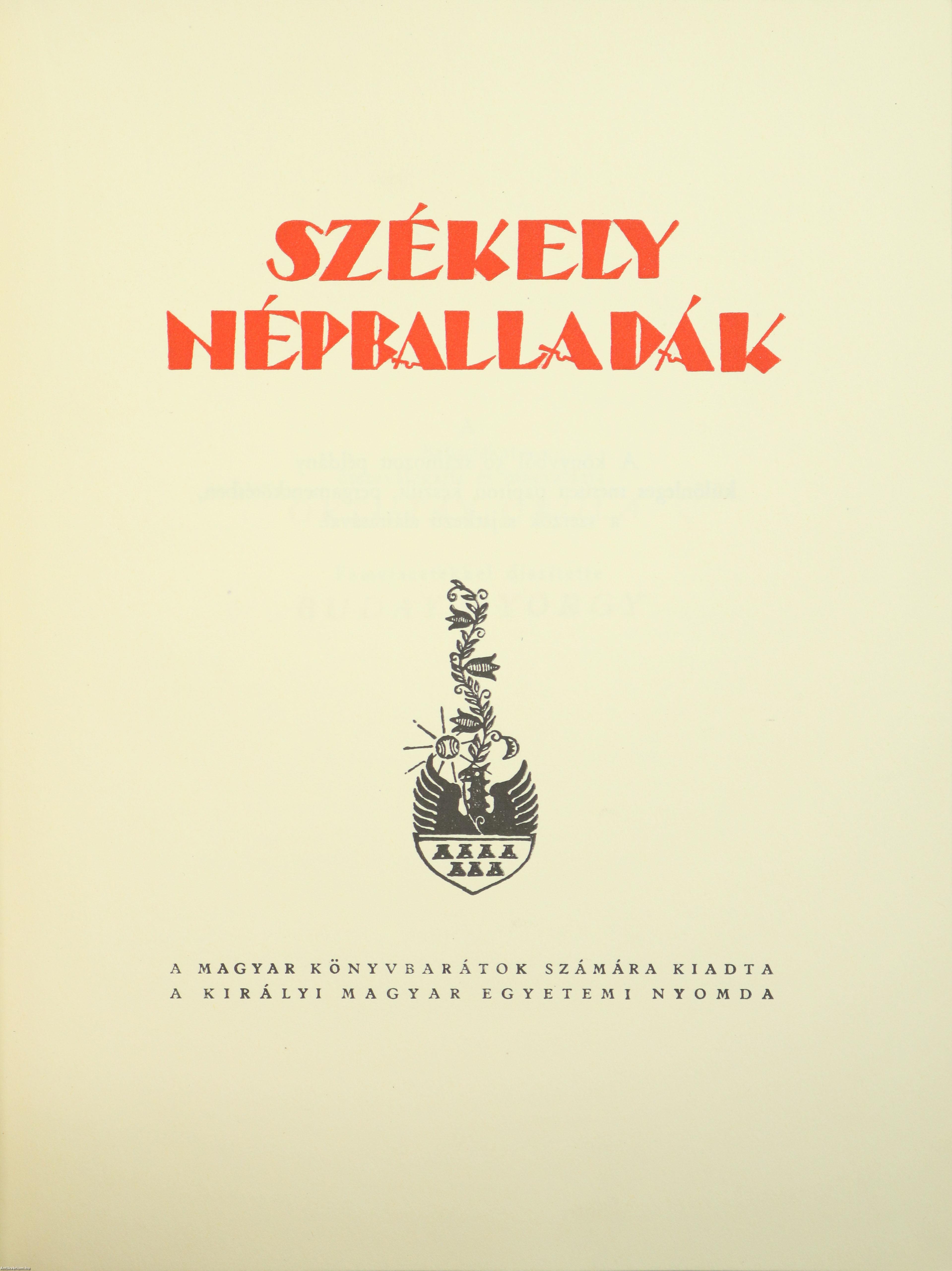 Buday György fametszeteivel illusztrált kötet kép- és tartalomjegyzékkel, valamint Buday György és Ortutay Gyula fontosabb munkáinak listájával. Nyomtatta a Királyi Magyar Egyetemi Nyomda Budapesten.