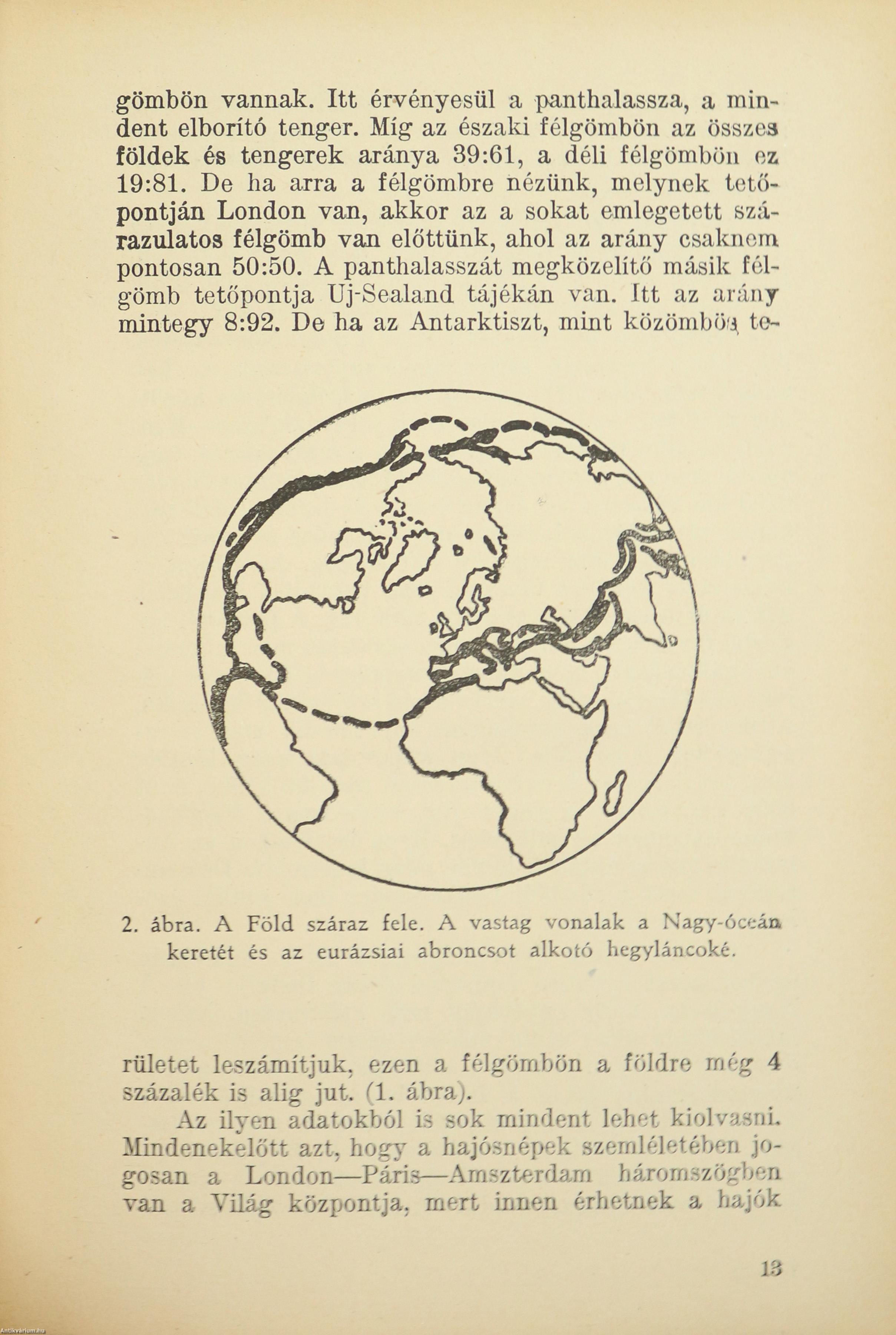 De nemcsak államférfiak és hadvezérek mérlegelik a világtérkép méreteit és vonalait. Nemcsak ők tudják, hogy ma már közeledik az emberiség életének földgömbi egységbe való összefolyása és így minden nagy lendület láthatatlan hajtószíjakat ránt meg. Akár eszmei, akár gazdasági, akár hatalmi célkitűzések idézik elő a lendületet, hullámzások a közelben, ellaposodó kilengések a távolban, gyenge rezgések a messzeségben a következményei valamennyinek; államhatárok ma már megállítani nem tudják őket. Érzik ezt a népek műveltségei is. Mennyi elmélkedő, merengő, kutató tekintet hull ma azokra a térképekre, melyek nemrég még csak utazásra vágyó, új színpompákat kereső gondtalan lelkeket szórakoztatva repítettek a "világ körül."...