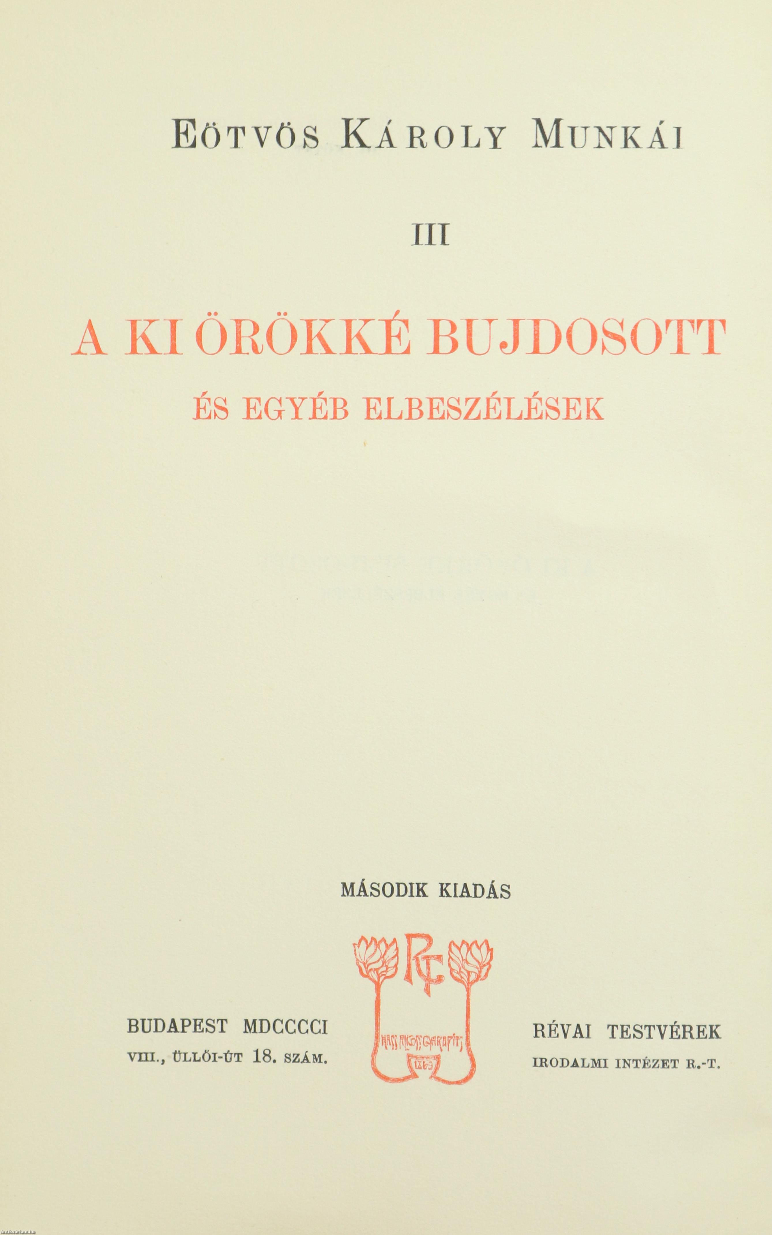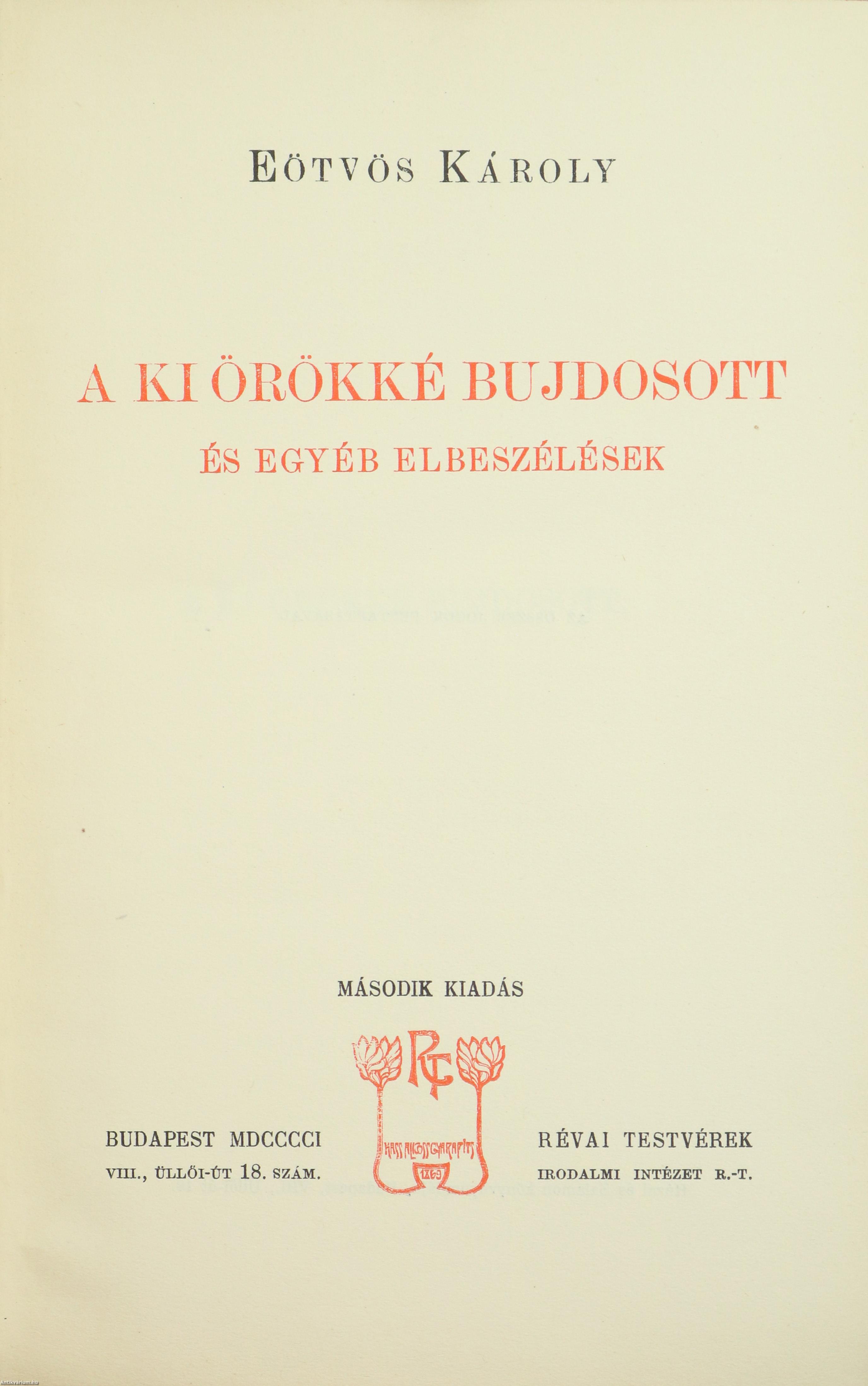 Eötvös Károly Munkái, No.: III. sz. A ki örökké bujdosott és egyéb elbeszélések. Írta: Eötvös Károly.