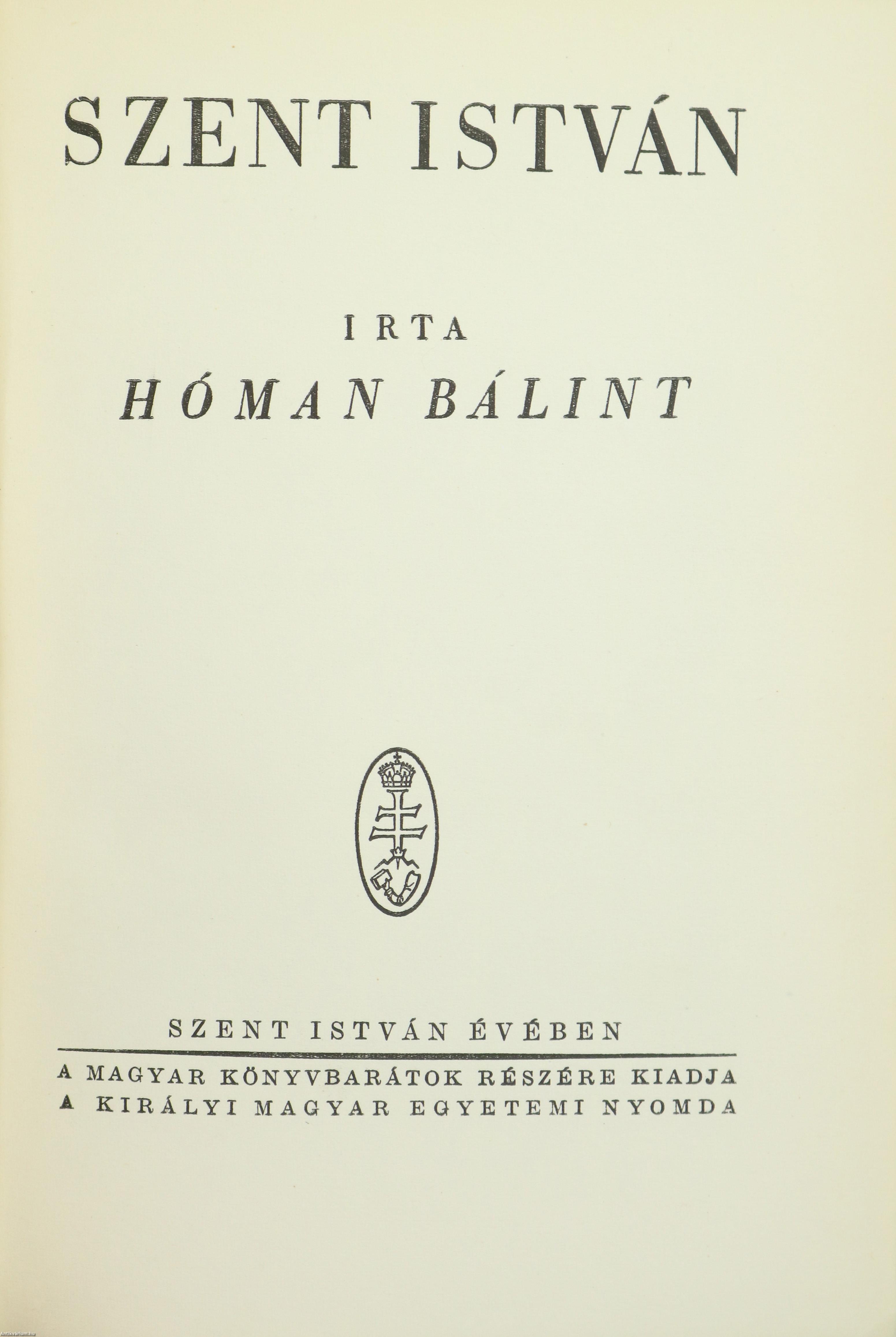 Első kiadás. Szent István. Írta: Hóman Bálint.