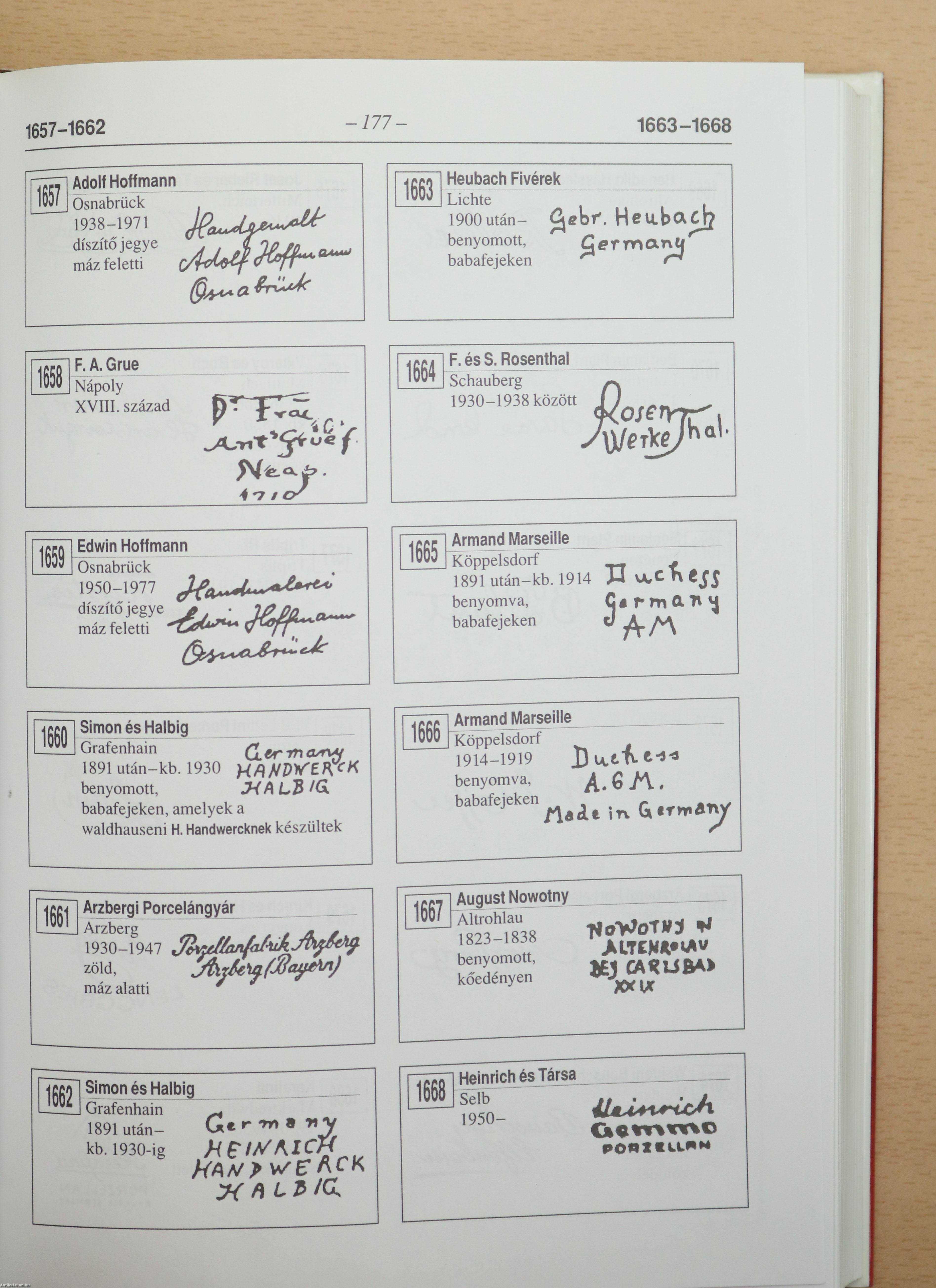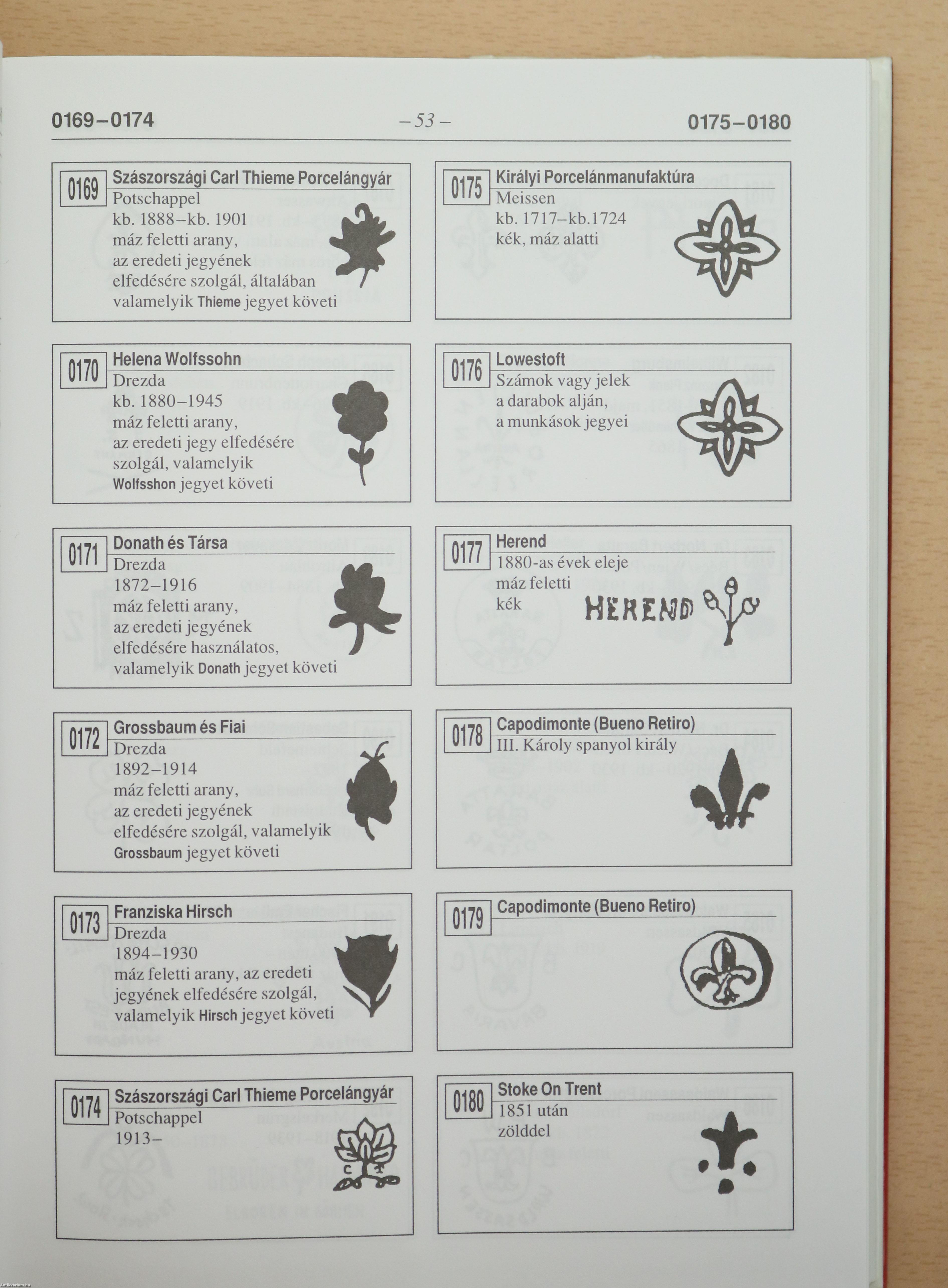 Ha ténylegesen megbizonyosodunk arról, hogy porcelánnal állunk szemben, csak akkor foglalkozhatunk annak eldöntésével, hogy az hol készült, Európának melyik - nyugati, keleti vagy középső - régiójában. Erről a tárgy alján található jegyek tájékoztatnak bennünket. A jegyekről írt fejezet megpróbál behatolni a jegyek sajátosságaiba, jelentéstartalmába. A megközelíthetőség miatt a jegyeket ábrázolási sajátosságaik alapján osztályoztuk, csoportosítottuk. A jegy ábrázolását kell elsőként eldöntenünk. Ez nem mindig könnyű, mert a jegyek között számos sematikus is található. Ha ily módon a jegy tulajdonosát sikerül megállapítanunk, a kapott szám segítségével a következő fejezetben, ábécé sorrendben található jegyzékből a készítési helyre sok fontos és jellemző adatot nyerhetünk.