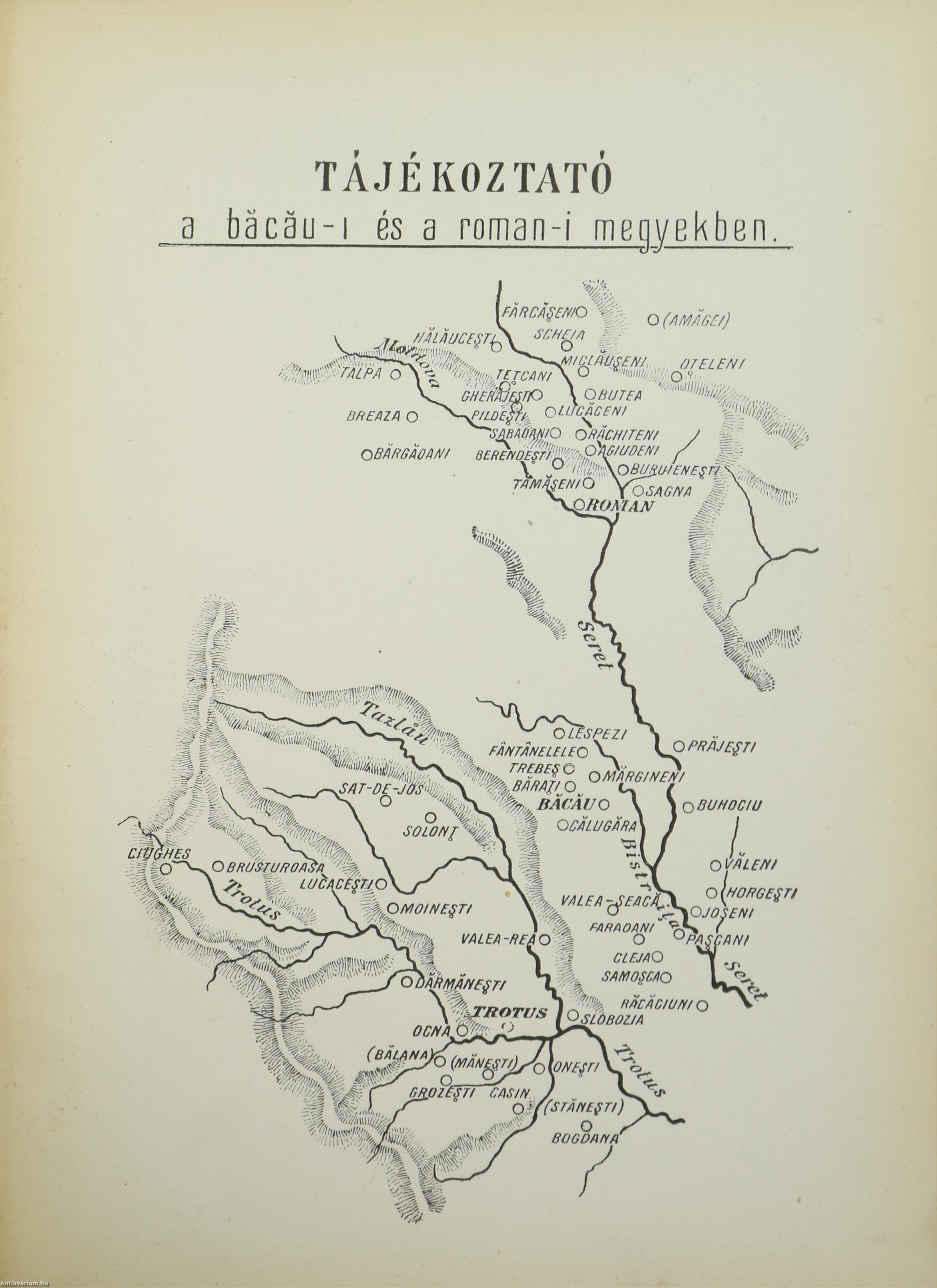 14. §. Visszapillantás. A mai lélekszám. 78. — Első letelepülés 1211 körül. 78. — Bevándorlás a moldvai fejedelemség alapításakor. 78. — Magyar hussziták Moldvában. 78. — Székelyek bevándorlása 1490 körül. 78. — Háborúk által előidézett összezsugorodás 5000 telepesre. Tömeges bevándorlás 1763-ban. 79. — A gyarmat fokozatos növekedése. 79. - Az 1824. évvel bezárul a letelepülés. 79. Jelenlegi statisztika. 79. Magyar telepesek a moldvai dekanátusokban: a iasi-iban. 79—80. — A roman-iban. 80-81. —A bac;iu-iban. 81—82. — A trotu?-iban. 82—83. — Összesen 64.601 telepes. 84. — A Románia városaiban lakó magyarok száma. Körülbelül 30.000. 84. — Van tehát Romániában 95.000 magyar, kiknek 70"/„-a román állampolgár. 84. — Betűrendes név- és helymutató. 85—94. — Általános tájékoztató. 95. — Tájékoztató a bacau-i és a roman-i megyékről. 96.