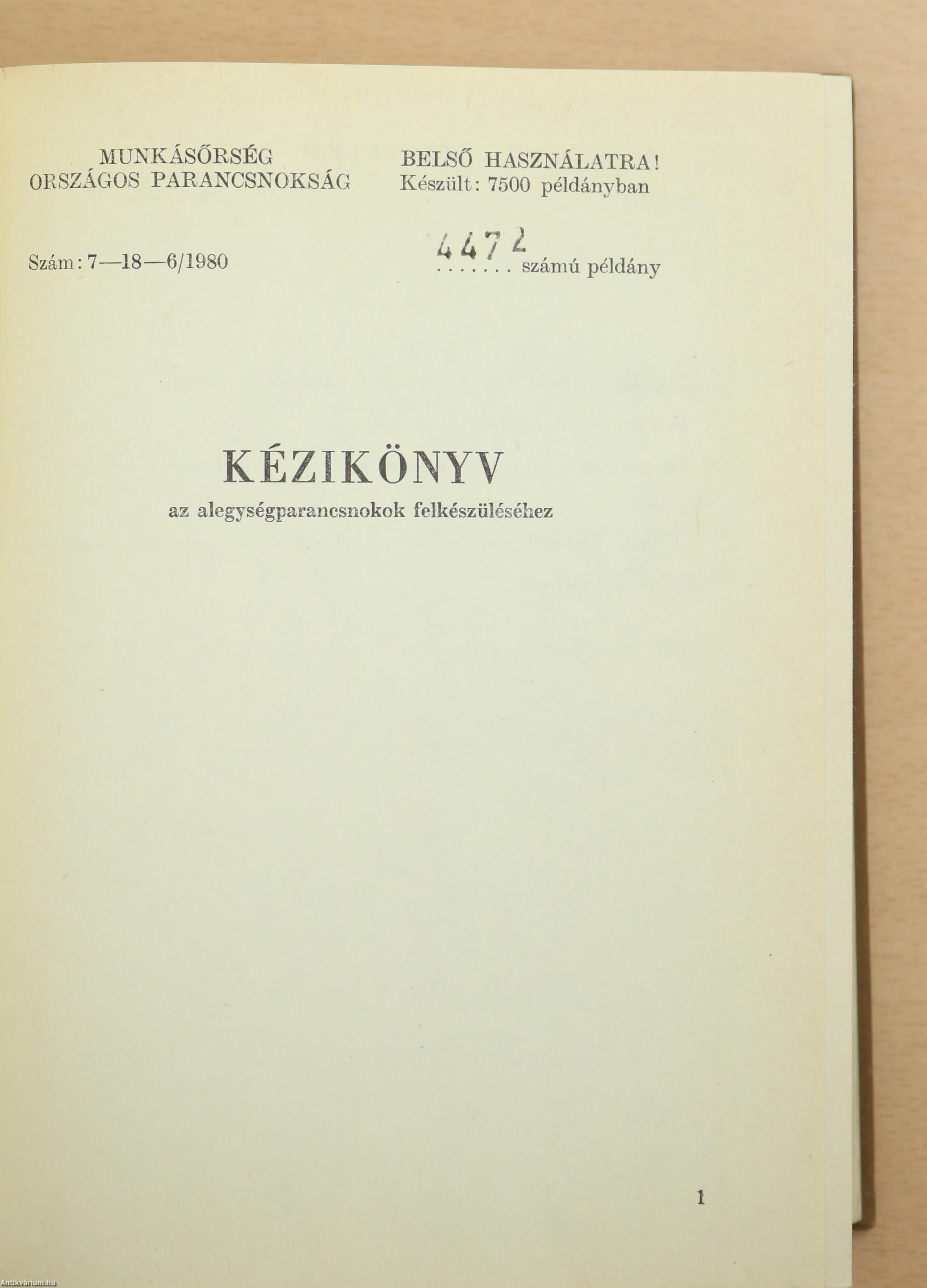 Kézikönyv az alegységparancsnokok felkészüléséhez