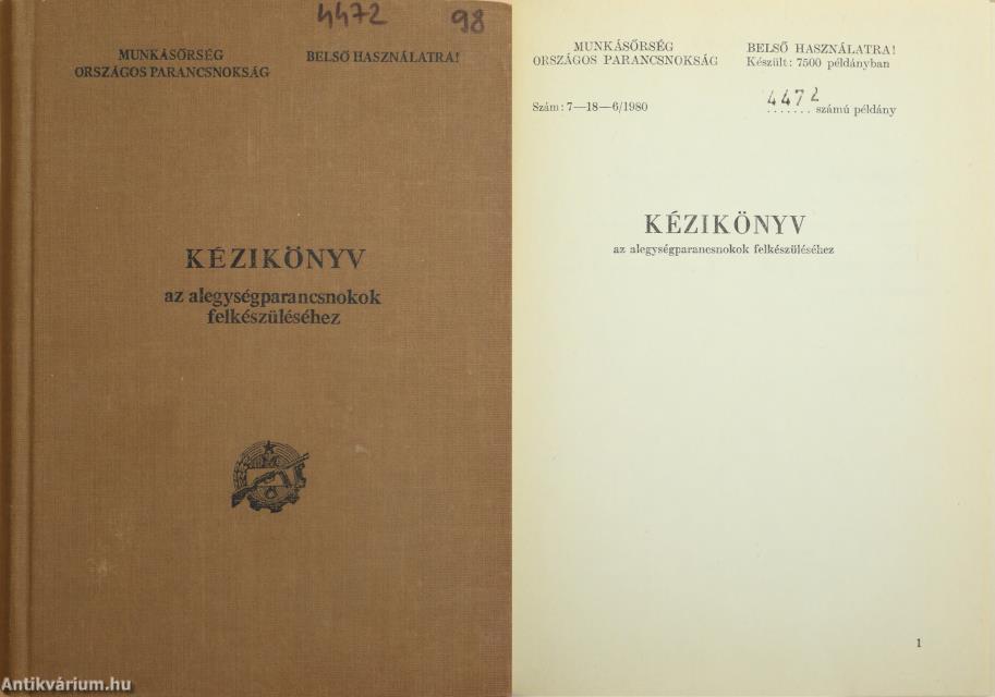 Fekete-fehér és néhány színes illusztrációval. Belső használatra! Ez a könyv a 4472 számú példány.