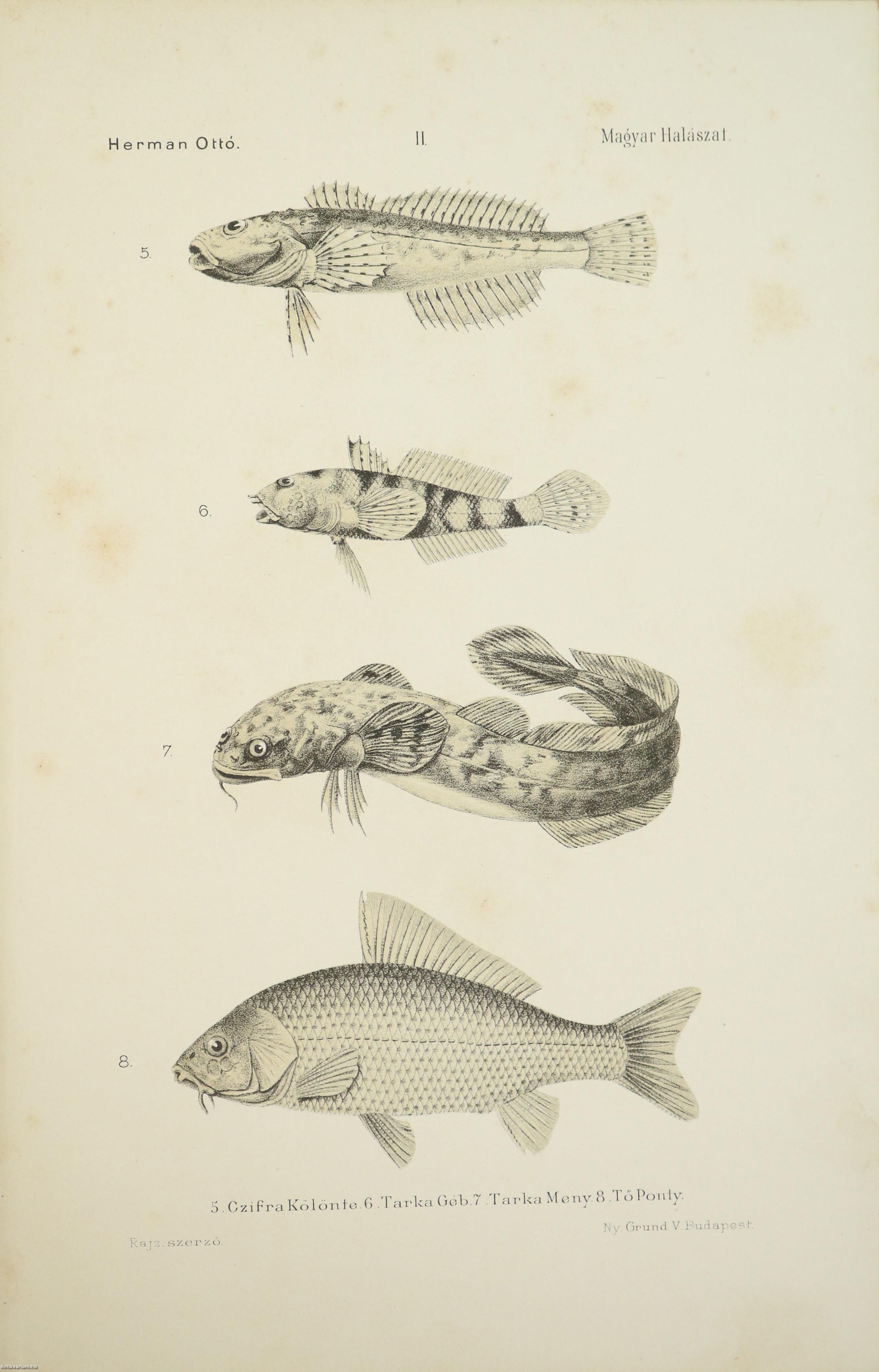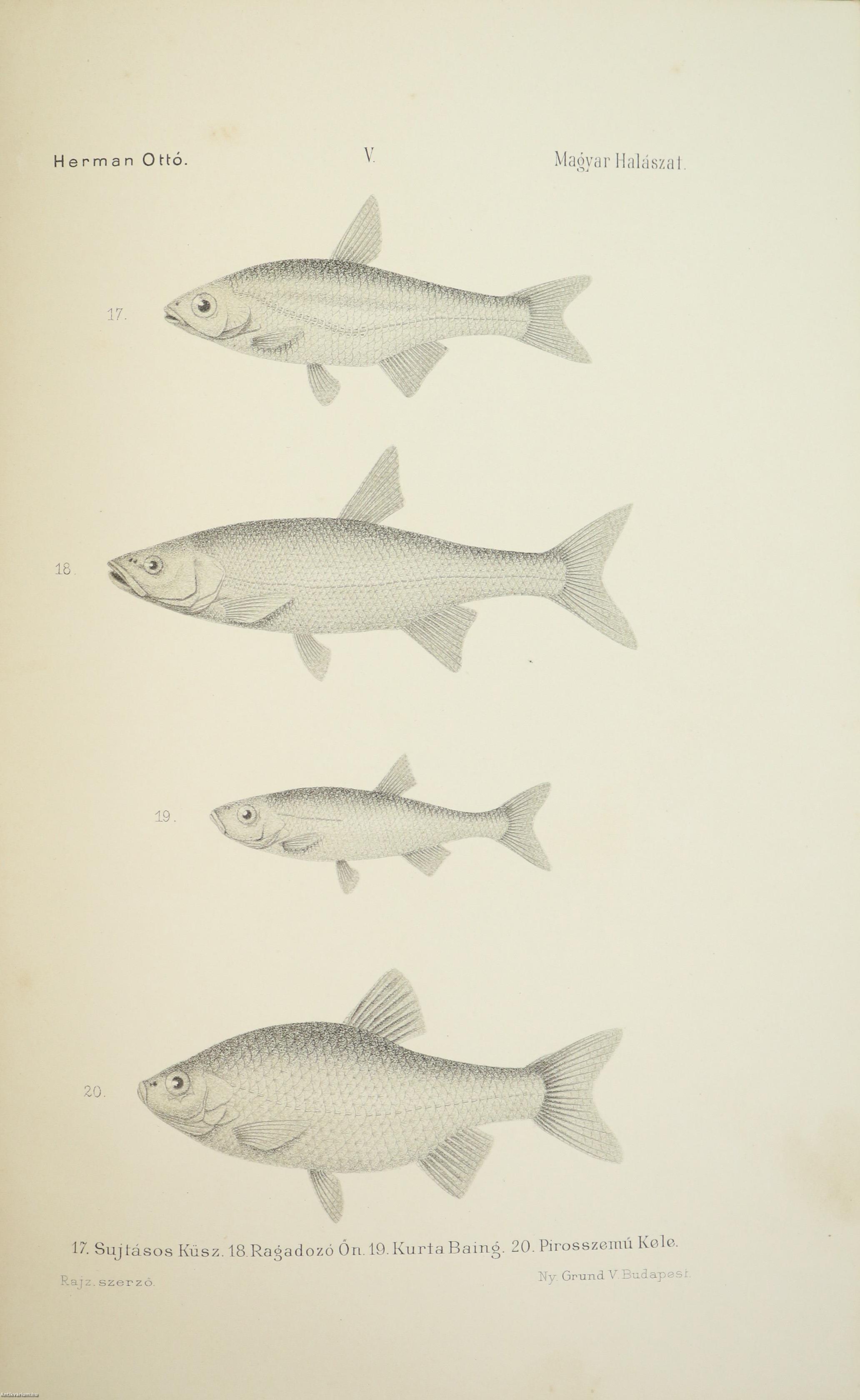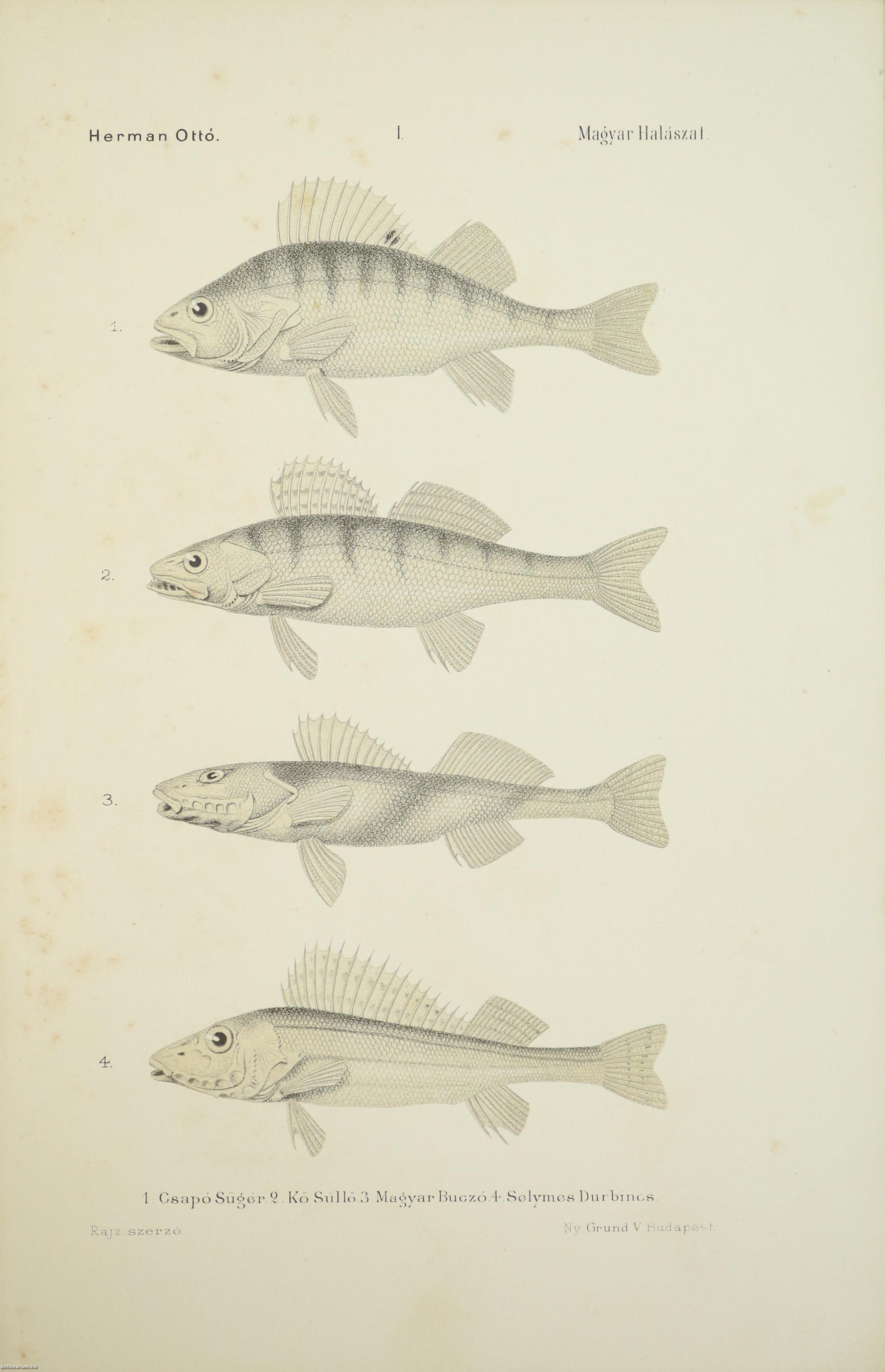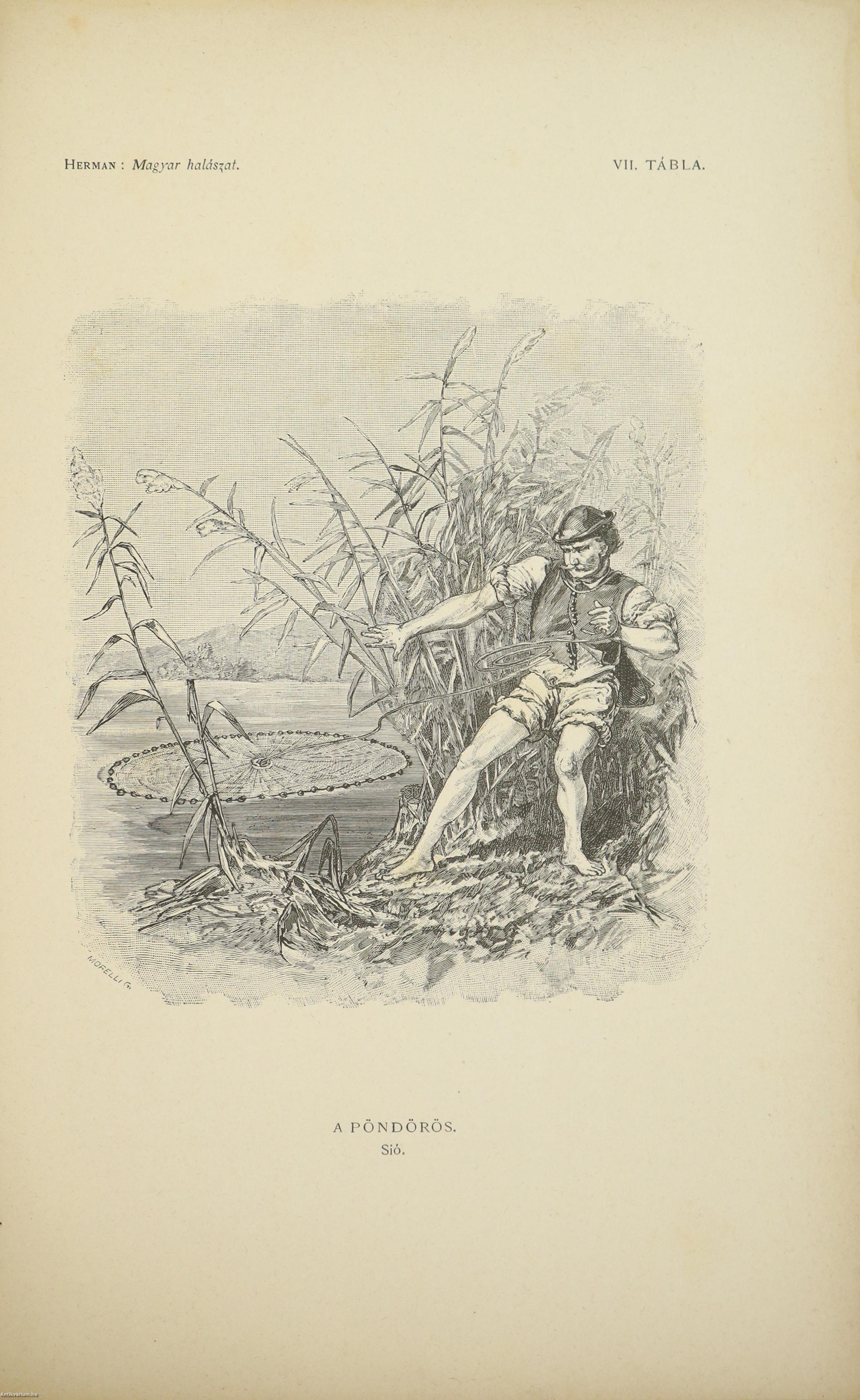 A Természettudományi Könyvkiadó-Vállalat könyvsorozatának XXVII. és XXVIII., a könyvkiadó-vállalat aláirói számára az V-ik (1884-1886. évi) cziklus harmadik és negyedik kötetei. Első kiadás. A magyar halászat könyve I-II. (Egységes külön kötetekben.) A Kir. Magyar Természettudományi Társulat megbízásából írta: Herman Ottó. Összesen háromszáz szöveg közti, fekete-fehér, feliratozott ábrával, továbbá az első kötetben 12 fekete-fehér, számozott műlappal, a második kötetben 9 számozott, kőnyomatú táblával illusztrált, a magyar népies halászat mesterszótárával, a Természettudományi Társulat kiadványainak listájával, betűrendes tárgymutatóval, valamint irodalom- és tartalomjegyzékkel kiegészített kiadás. Az első kötet címlapján tulajdonosi bélyegzés, a második kötetén tollal írt tulajdonosi bejegyzés látható. A köteteket a Franklin-Társulat Könyvsajtója nyomtatta, Budapesten. Kiadói egészvászon kötésben lévő kötetek vaknyomással díszített címfedéllel és hátlappal, aranyozott feliratos könyvgerinccel, hiánytalan állapotban. A kötet szerzője, Herman Ottó (Breznóbánya, 1835. június 26. – Budapest, 1914. december 27.) természetkutató, zoológus, néprajzkutató, régész, politikus. Sokoldalú tudományos tevékenysége nyomán az utolsó magyar polihisztornak és a madarak atyjának is nevezték, ezernél is több tudományos publikáció fűződik a nevéhez. A magyar őskőkorszak-kutatás és a hazai tudományos barlangkutatás egyik elindítója volt. Termékeny természetrajzi írói munkássága mellett mint tudományszervező is jeleskedett. A Természettudományi Füzetek és az Aquila c. madártani folyóirat szerkesztője, a Magyar Ornitológiai Központ alapító-igazgatója, a Magyar Néprajzi Társaság alapítótagja és elnöke, a tudományos ismeretterjesztés műfajának egyik magyarországi megteremtője.