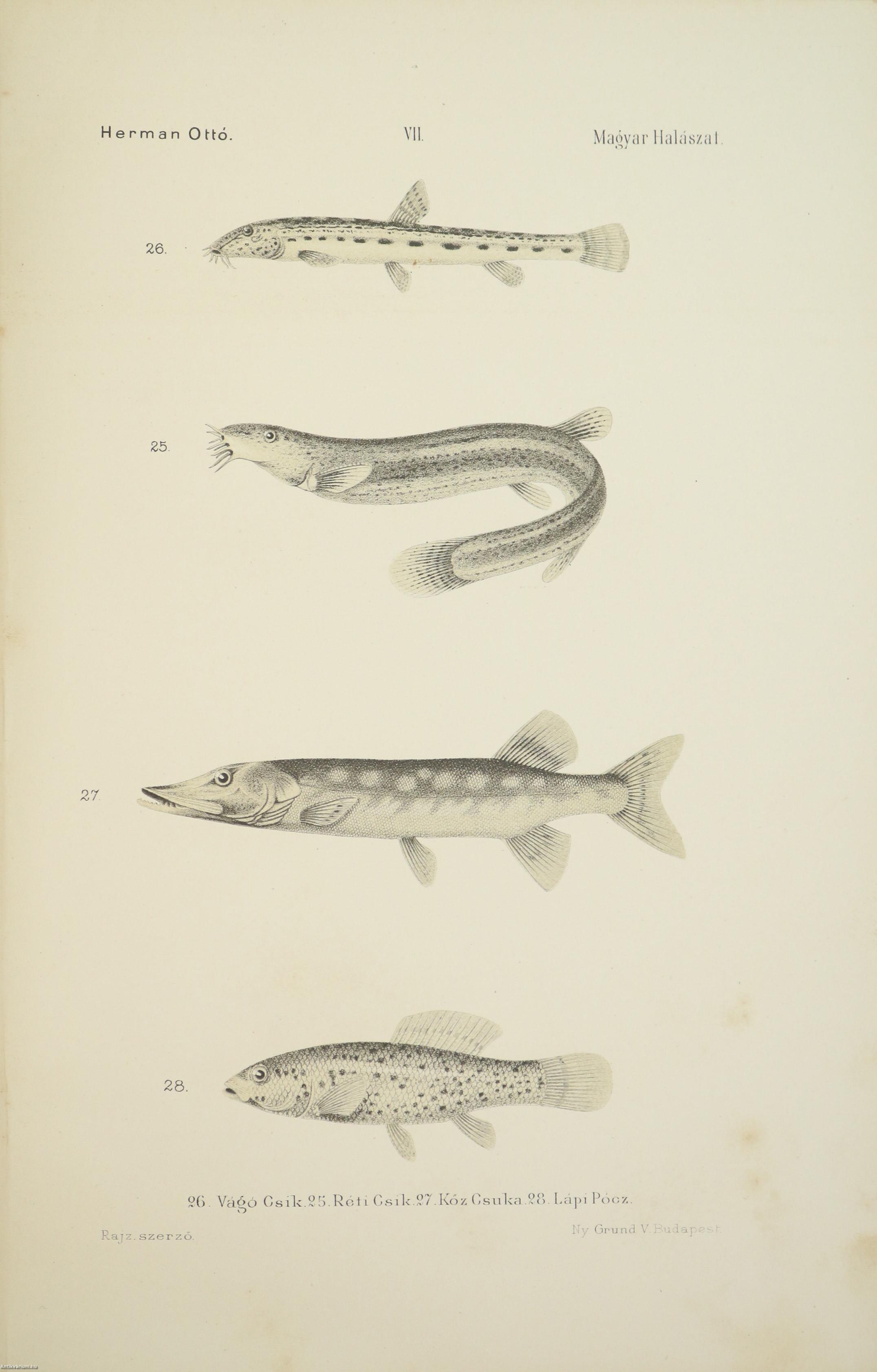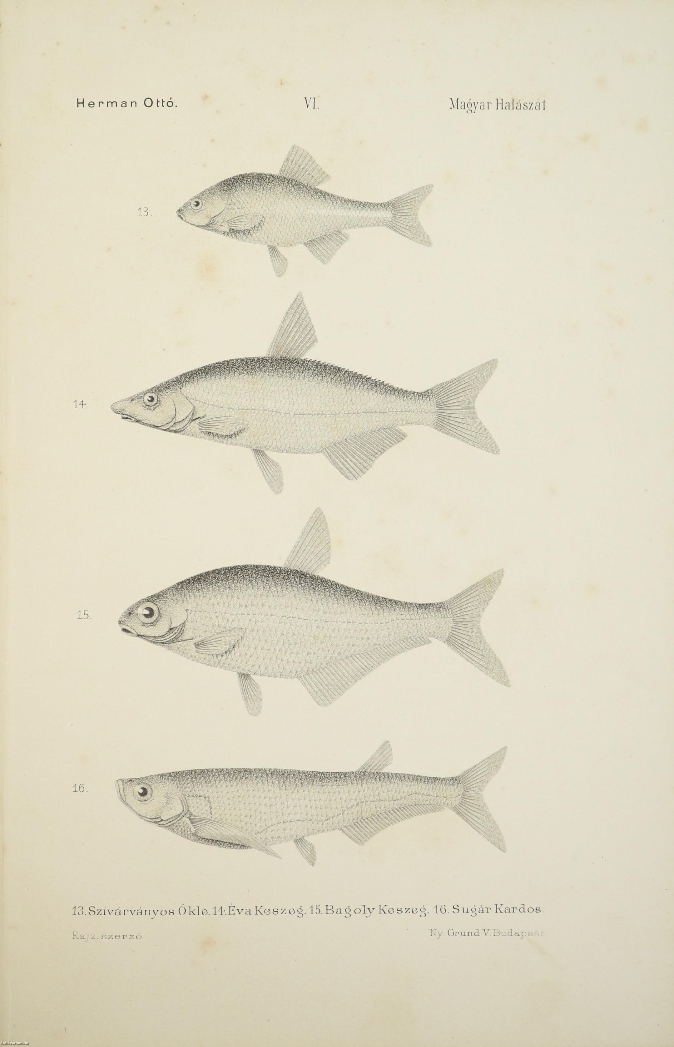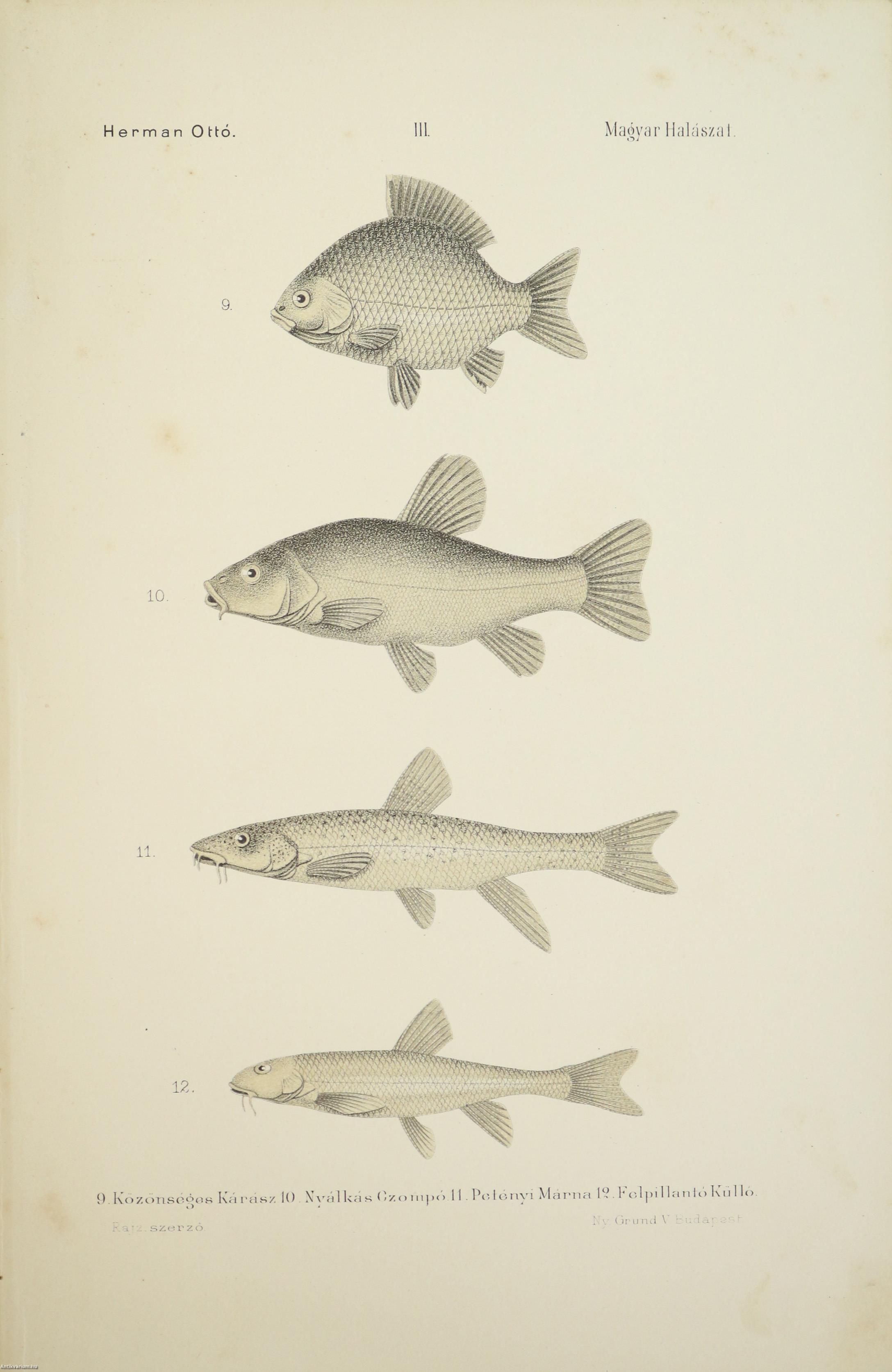 A Természettudományi Könyvkiadó-Vállalat könyvsorozatának XXVII. és XXVIII., a könyvkiadó-vállalat aláirói számára az V-ik (1884-1886. évi) cziklus harmadik és negyedik kötetei. Első kiadás. A magyar halászat könyve I-II. (Egységes külön kötetekben.) A Kir. Magyar Természettudományi Társulat megbízásából írta: Herman Ottó. Összesen háromszáz szöveg közti, fekete-fehér, feliratozott ábrával, továbbá az első kötetben 12 fekete-fehér, számozott műlappal, a második kötetben 9 számozott, kőnyomatú táblával illusztrált, a magyar népies halászat mesterszótárával, a Természettudományi Társulat kiadványainak listájával, betűrendes tárgymutatóval, valamint irodalom- és tartalomjegyzékkel kiegészített kiadás. Az első kötet címlapján tulajdonosi bélyegzés, a második kötetén tollal írt tulajdonosi bejegyzés látható. A köteteket a Franklin-Társulat Könyvsajtója nyomtatta, Budapesten. Kiadói egészvászon kötésben lévő kötetek vaknyomással díszített címfedéllel és hátlappal, aranyozott feliratos könyvgerinccel, hiánytalan állapotban. A kötet szerzője, Herman Ottó (Breznóbánya, 1835. június 26. – Budapest, 1914. december 27.) természetkutató, zoológus, néprajzkutató, régész, politikus. Sokoldalú tudományos tevékenysége nyomán az utolsó magyar polihisztornak és a madarak atyjának is nevezték, ezernél is több tudományos publikáció fűződik a nevéhez. A magyar őskőkorszak-kutatás és a hazai tudományos barlangkutatás egyik elindítója volt. Termékeny természetrajzi írói munkássága mellett mint tudományszervező is jeleskedett. A Természettudományi Füzetek és az Aquila c. madártani folyóirat szerkesztője, a Magyar Ornitológiai Központ alapító-igazgatója, a Magyar Néprajzi Társaság alapítótagja és elnöke, a tudományos ismeretterjesztés műfajának egyik magyarországi megteremtője.