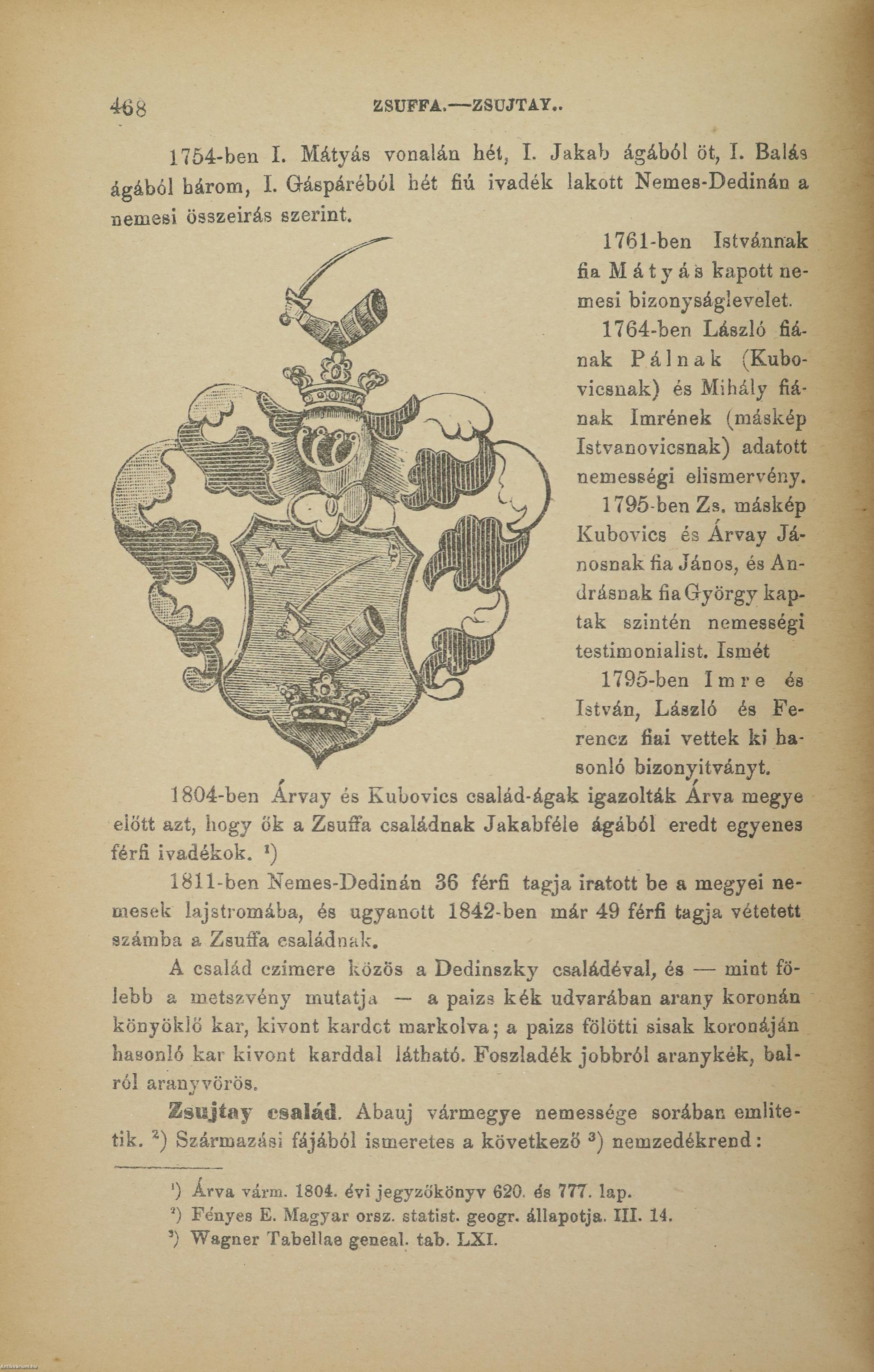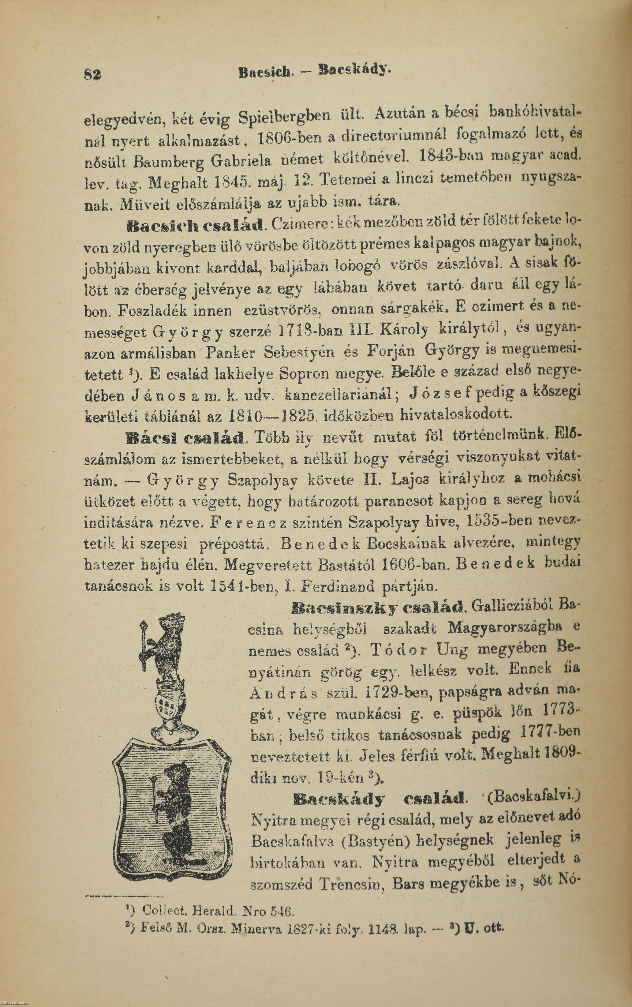 Nehéznek vallom e munkát azért, mert hazai irodalmunk e téren alig mutathat fel valamit. A mult század végén Lehoczky latinul irt Stemmatographiája nagyon kevés családot tárgya], és azokat is sürü és roppant tévedései miatt csak óvatossággal használhatni Wagner Collectanea Geneal. Historica Ill. H. Familiarum czimü müve összesen a négy részben (Decas) csak negyven kihalt családról értekezett. Ennyi az egész Magyarországra nézve.