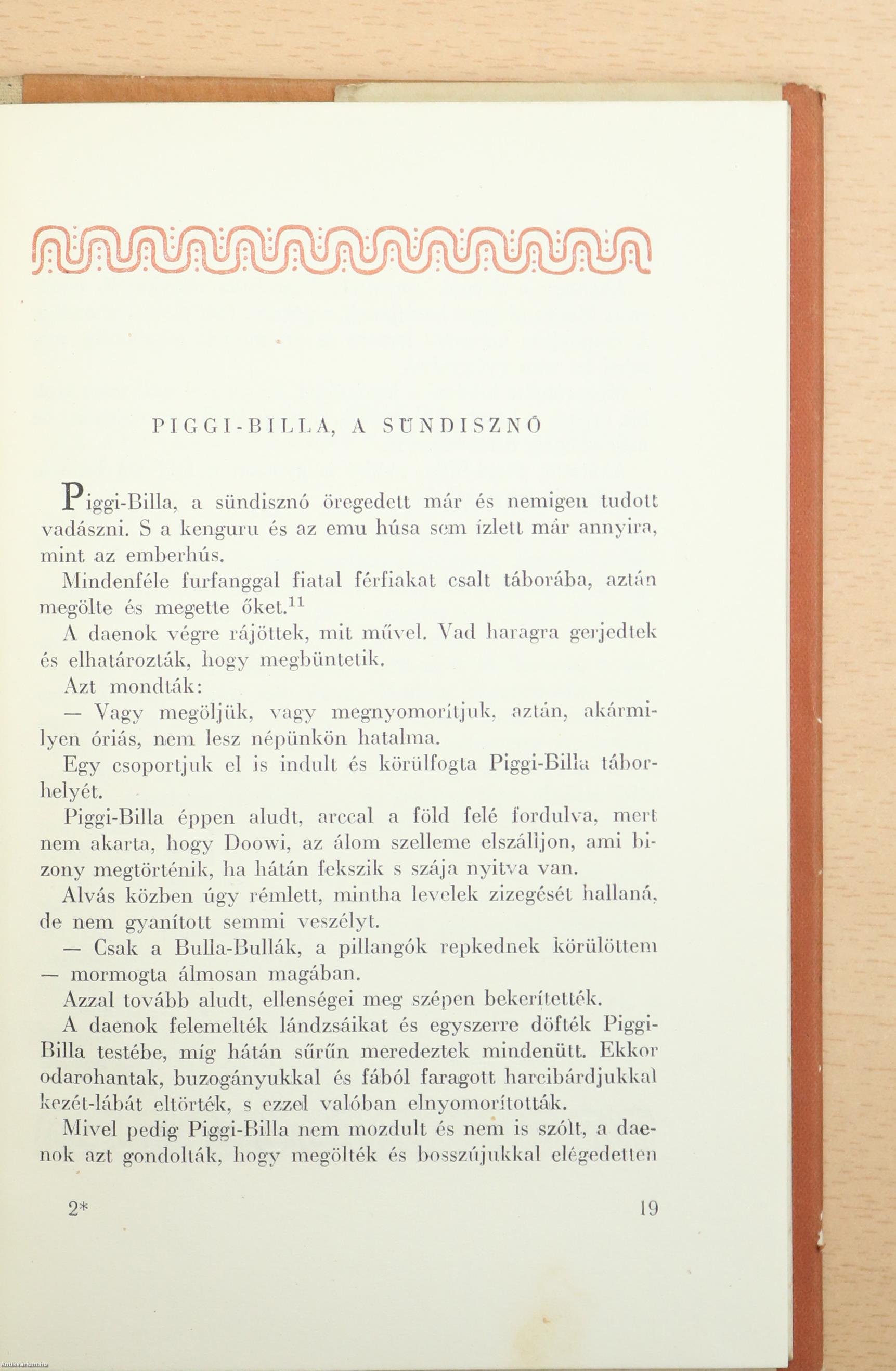 Különös, ismeretlen világ tárul fel előttünk a kis kötet lapjain: az ausztráliai bennszülöttek ősi világa. Ma is szinte ugyanazon a kezdetleges kultúrfokon é Ausztrália őslakossága, mint száz meg száz évvel ezelőtt. Testvéreiknek tekintik az állatokat, isteni eredetűnek a természeti tüneményeket.