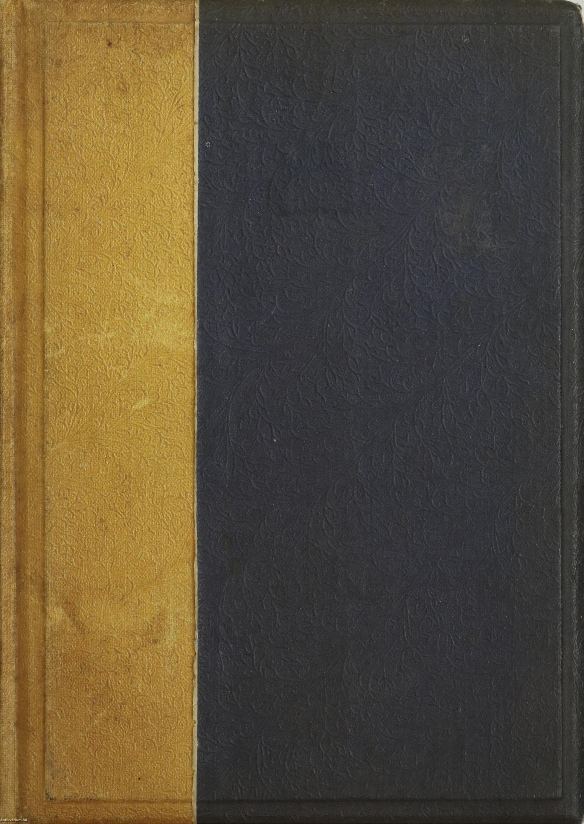 Könyvkötői egészvászon kötésben lévő példány feliratozatlan, dombornyomott díszítéssel ellátott címfedéllel és hátlappal, aranyozott feliratozású könyvgerinccel, mintás előzéklapokkal, hiánytalan állapotban.