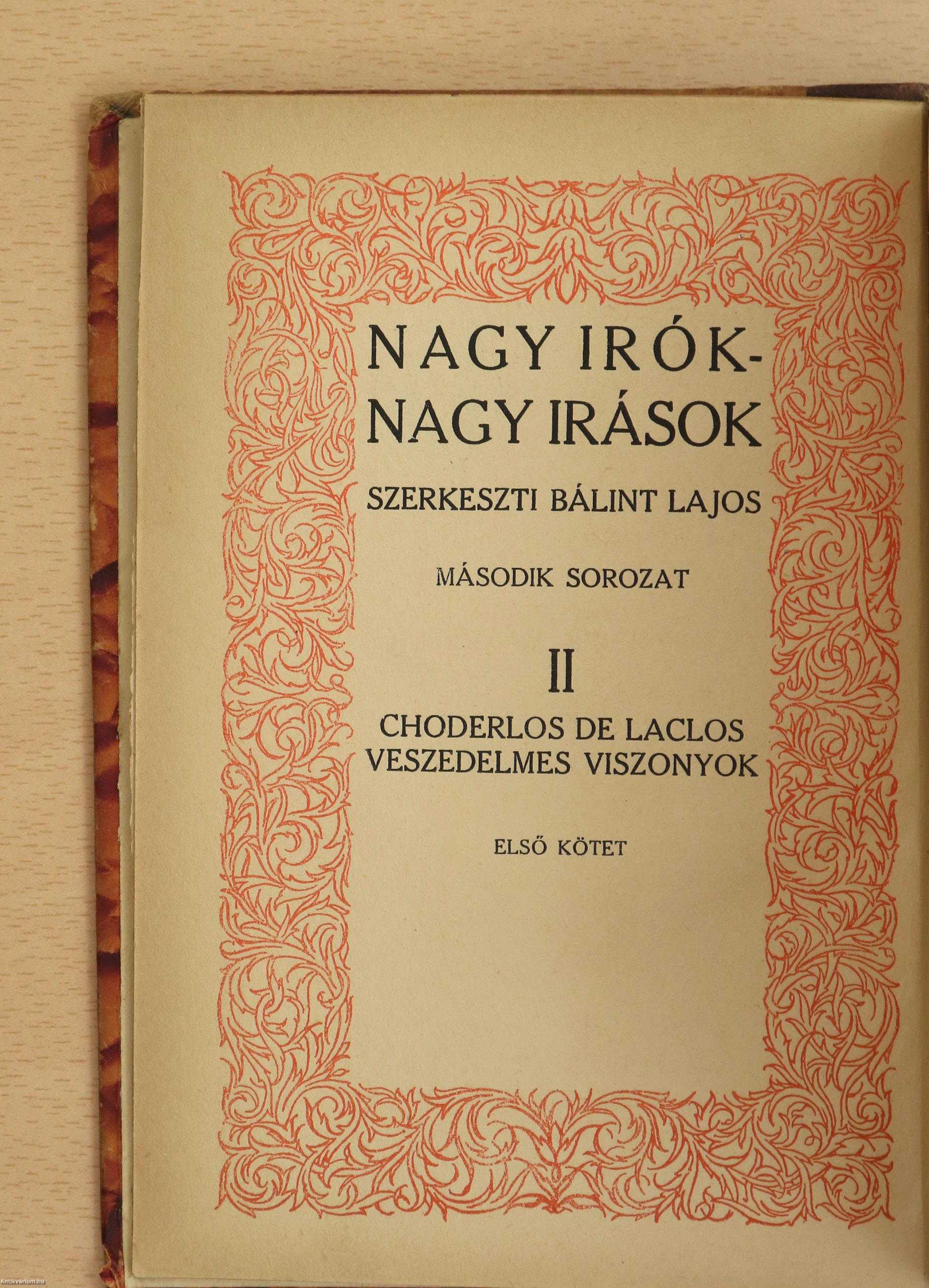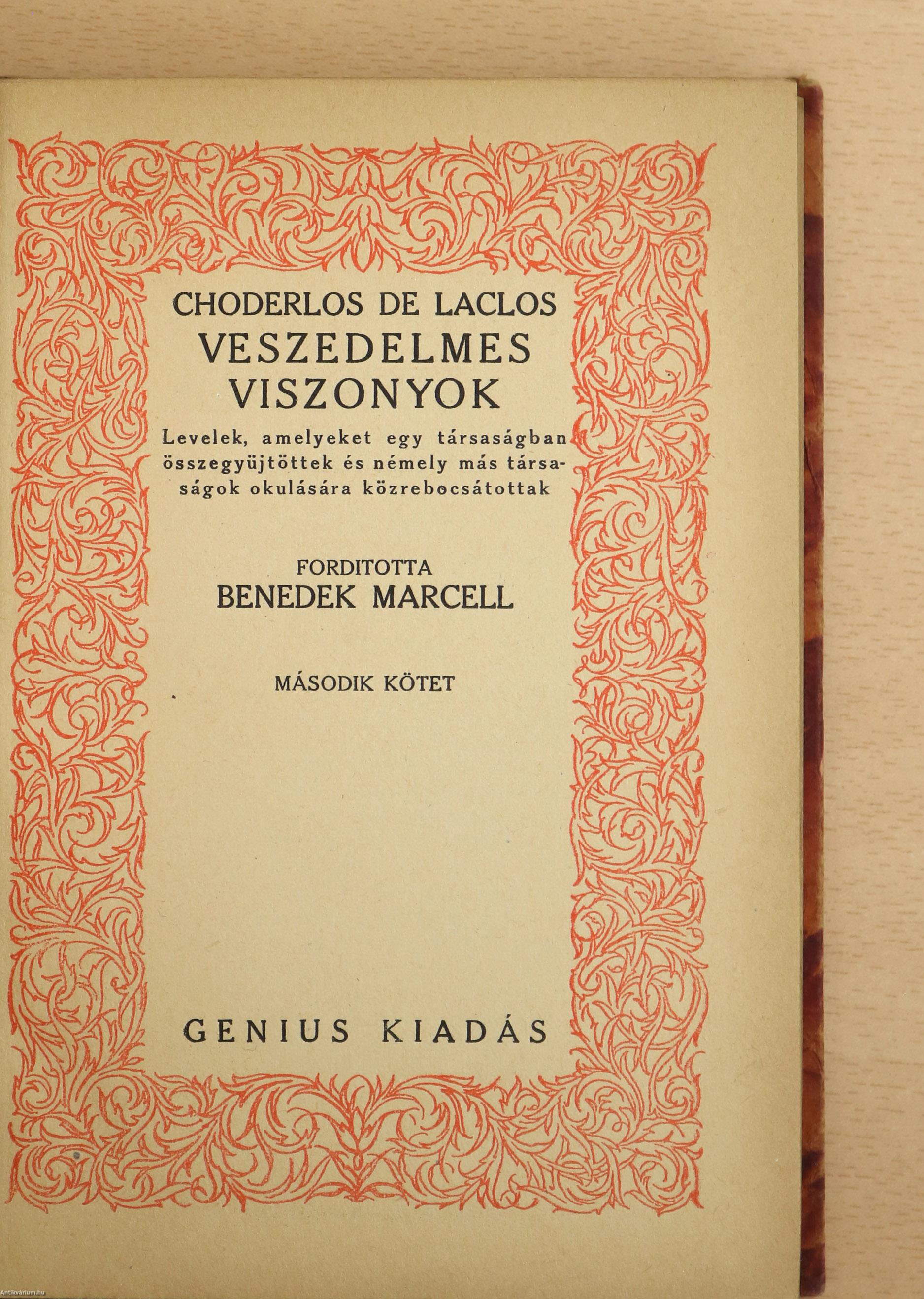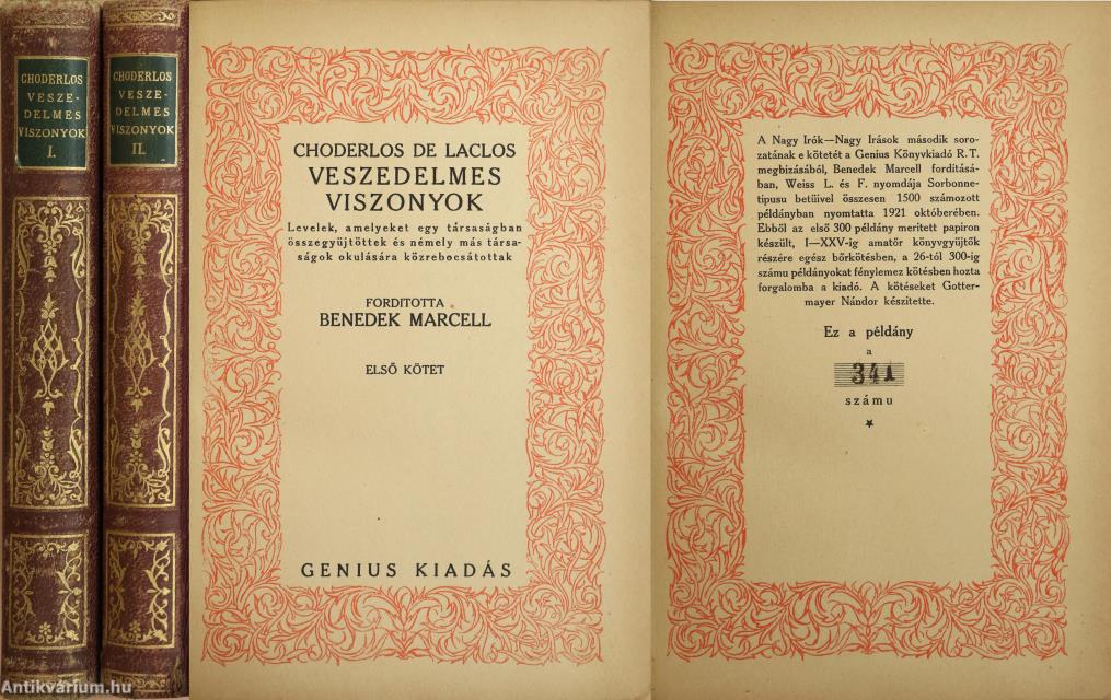 Laclos, Choderlos de: Veszedelmes viszonyok I-II. (számozott példány)