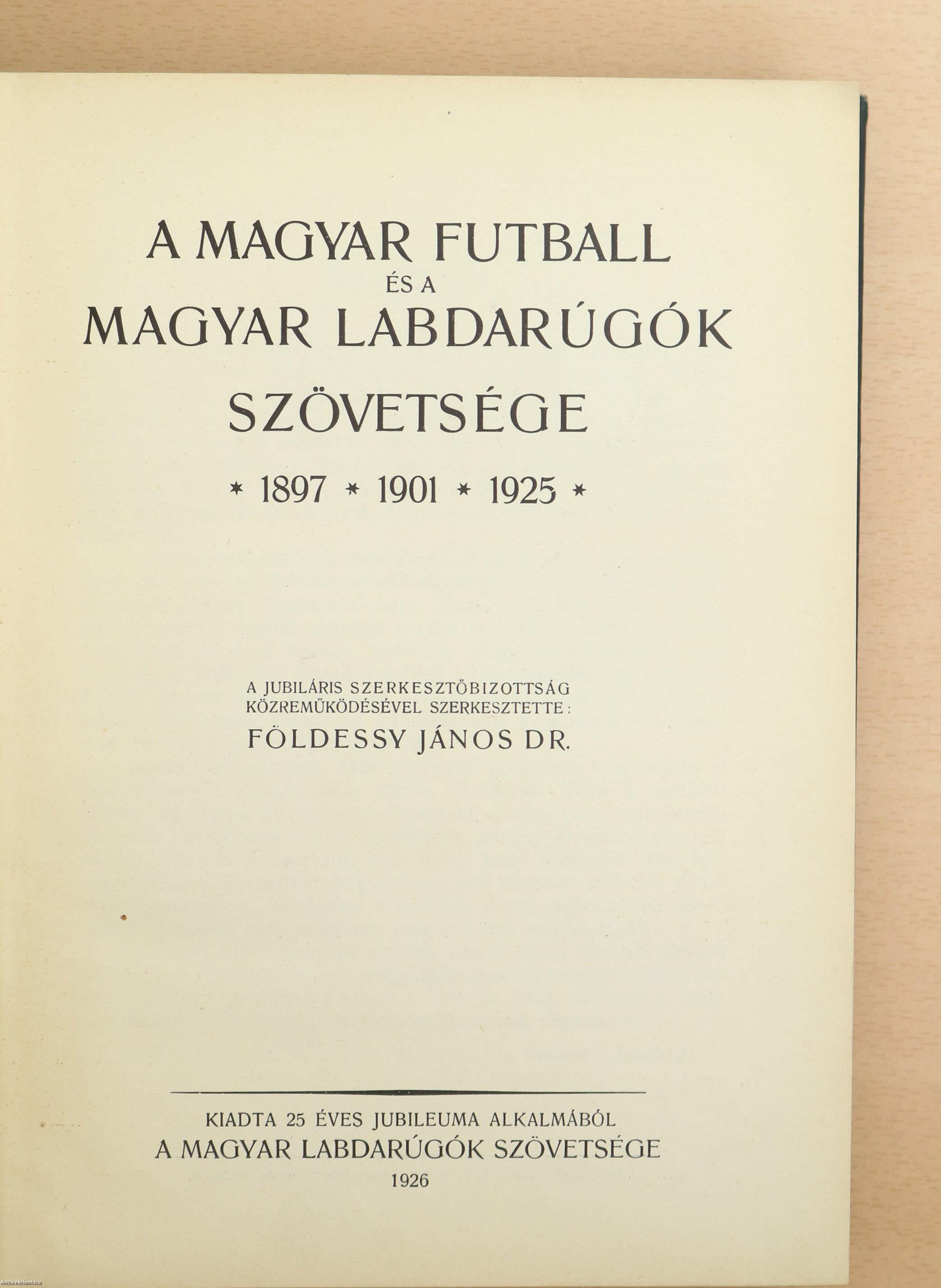 | A magyar futballsport és a Magyar Labdarúgók Szövetsége története 1897-1901-1925. | |