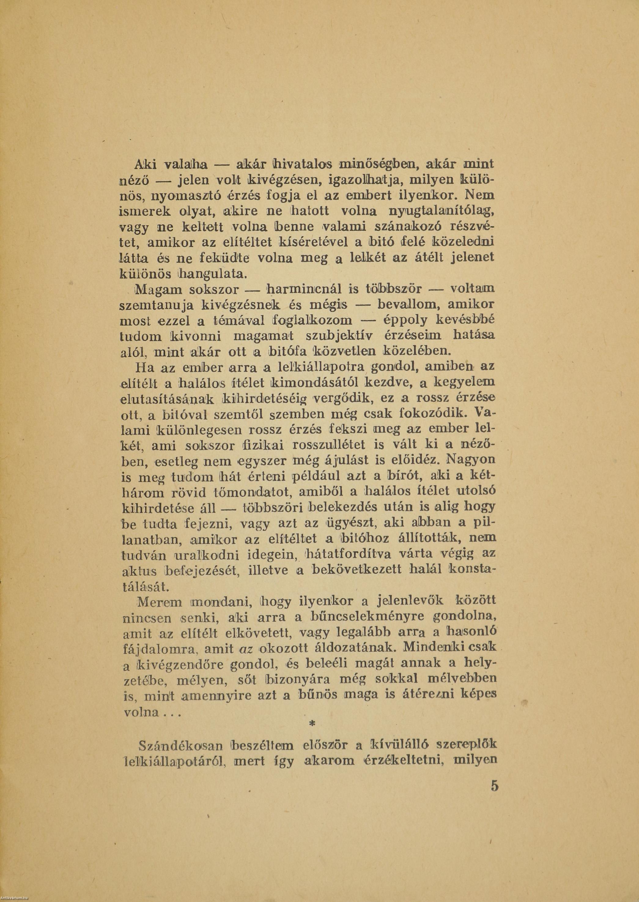 Magam sokszor - harmincnál is többször - voltam szemtanuja kivégzésnek és mégis - bevallom, amikor most e4zzel a témával foglalkozom - éppoly kevésbbé tudom kivonni magamat szubjektív érzéseim hatása alól, mint akár ott a bitófa közvetlen közelében.