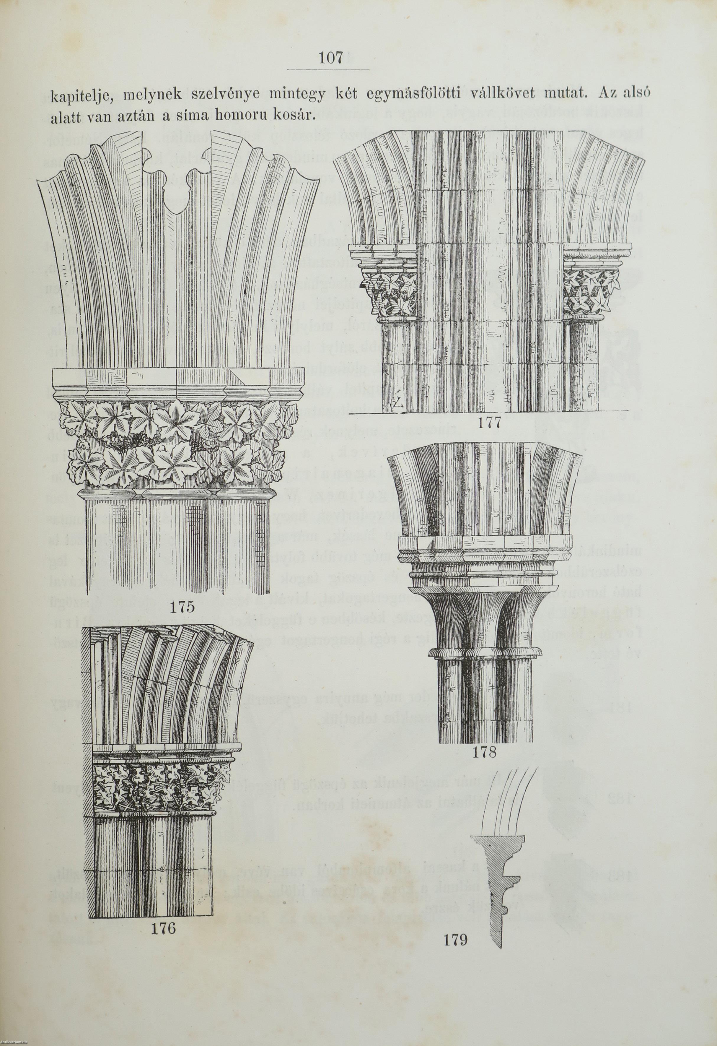 II. rész: Középkori építészet. Írta: Dr. Henszlmann Imre m. akad. lt. Pest, 1866, 150 p., ill. 250 szöveg közti, fekete-fehér fametszettel illusztrált, valamint az építészeti műszók és az értelemzavaró nyomtatási hibák jegyzékével kiegészített kötet.