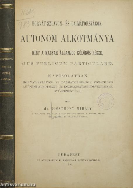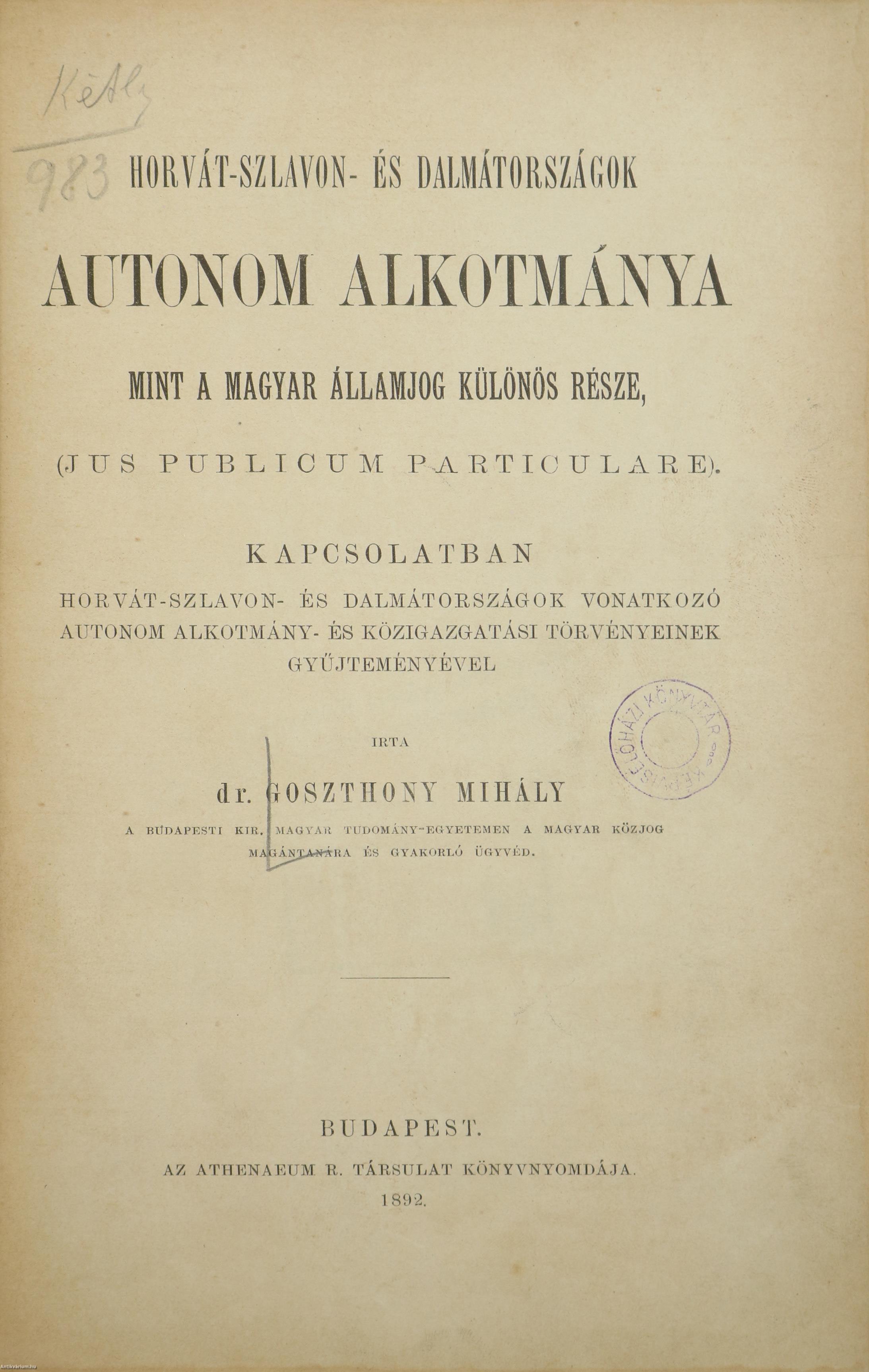 Horvát-Szlavon- és Dalmátországok autonom alkotmány- és közigazgatási törvényeinek gyűjteménye 1869-1892-ig 135