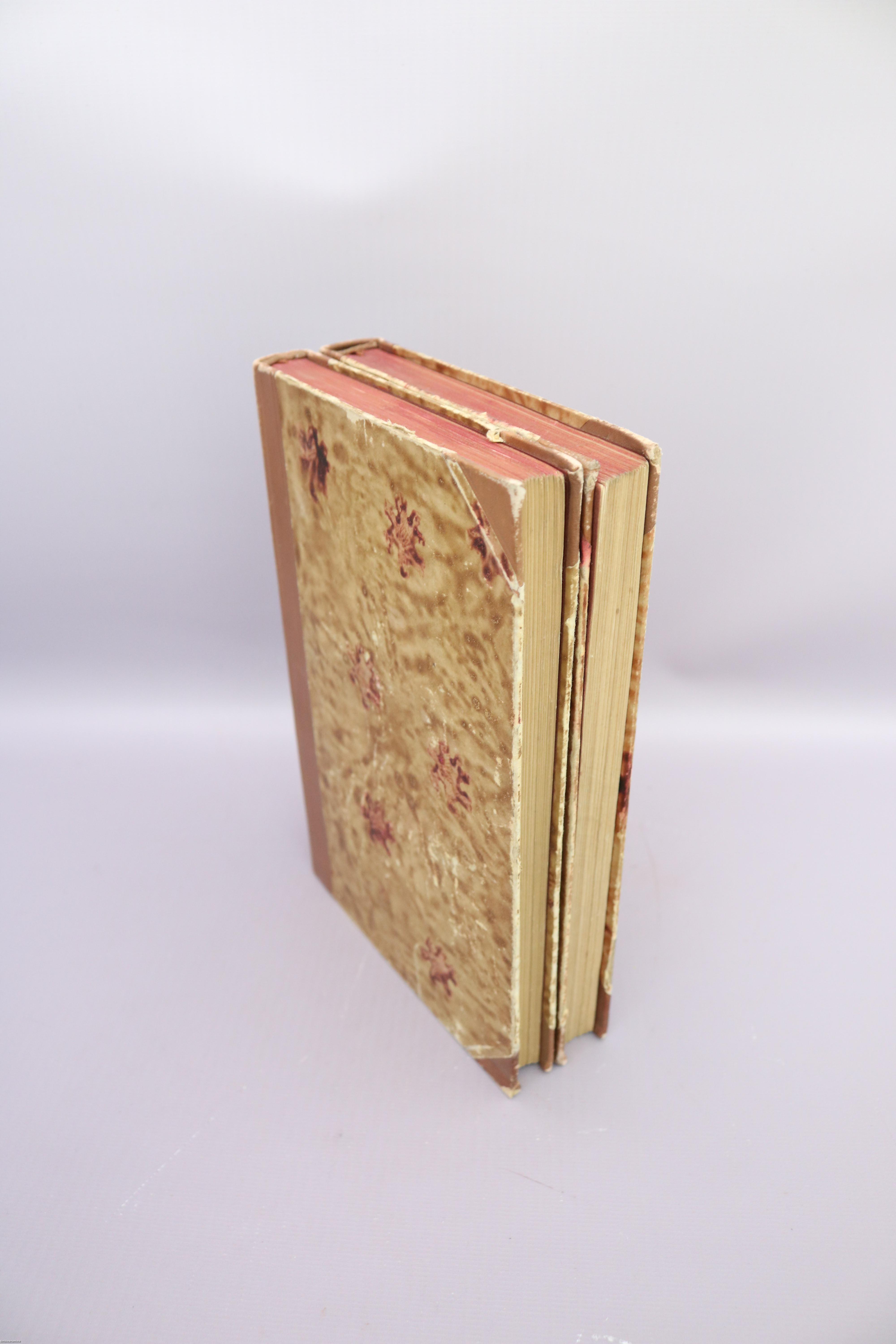 Kiadói félbőr kötésben lévő kötetek feliratozatlan, mintás címfedéllel és hátlappal, aranyozott feliratozású könyvgerinccel, színes, (az első kötet esetében megtört) kiadói előzéklapokkal, színezett felső lapélekkel, hiánytalan állapotban.