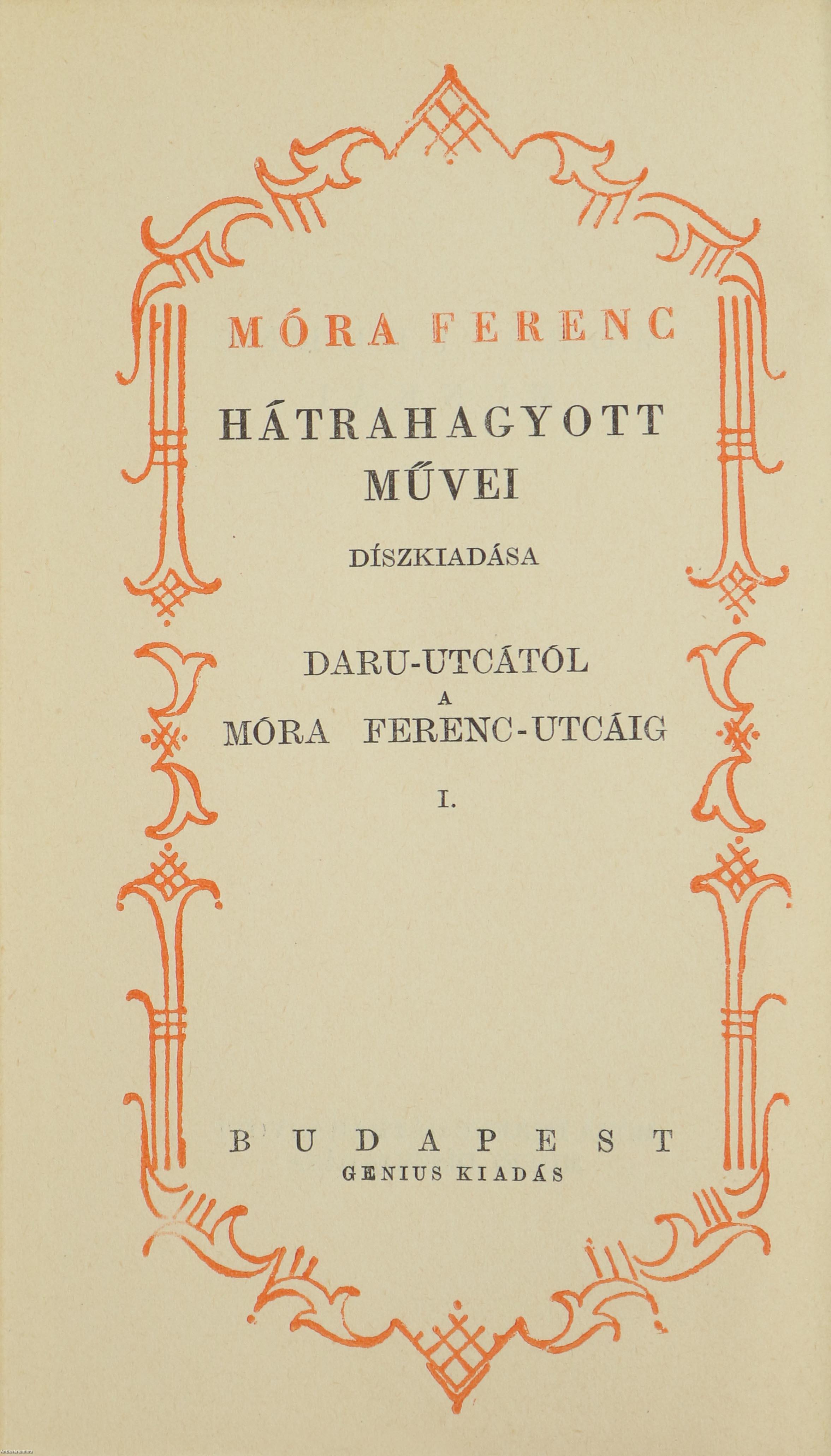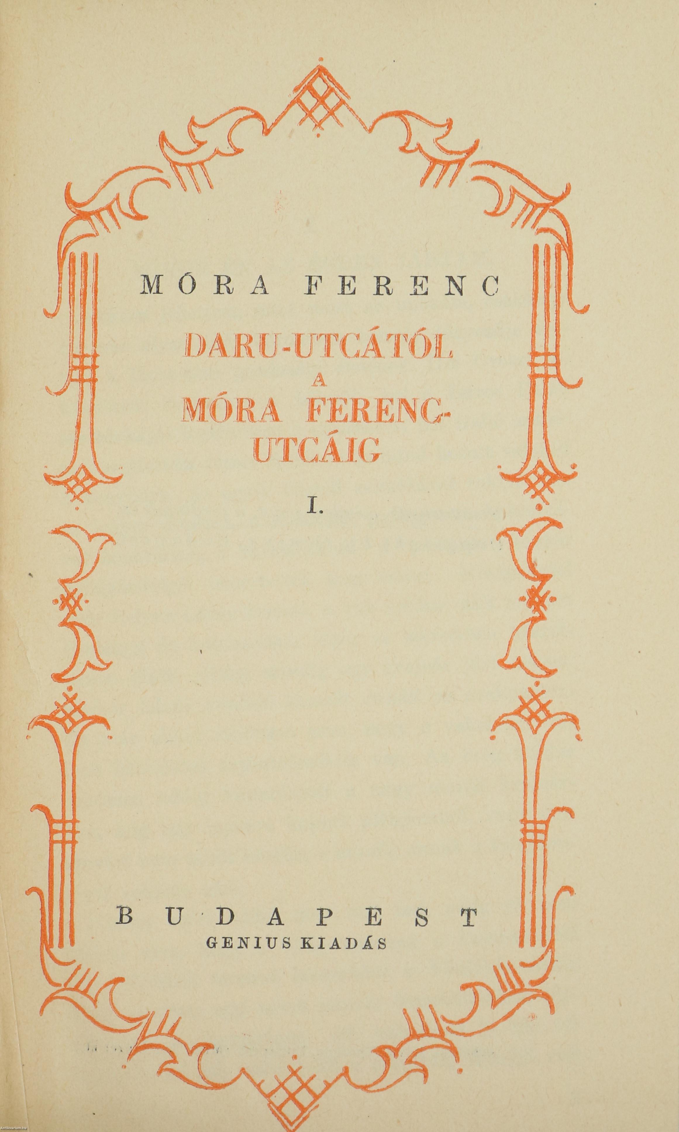 1-2. Daru-utcától a Móra Ferenc utcáig I-II. Bp., [1935], Genius, 271 p. + [1] p., 289 p. + [5] p.