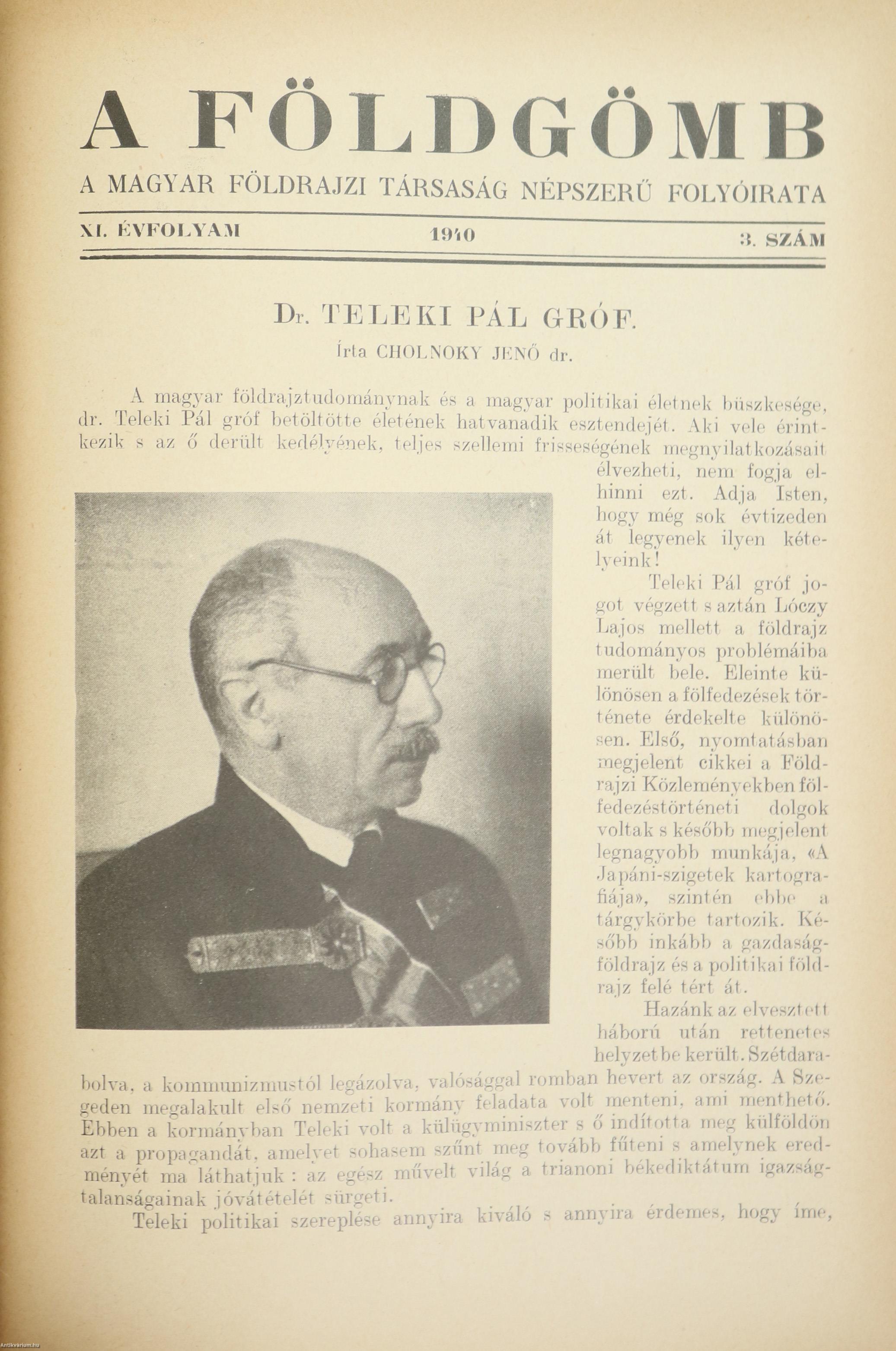 Dr. Cholnoky Jenő: Dr. Teleki Pál gróf 57