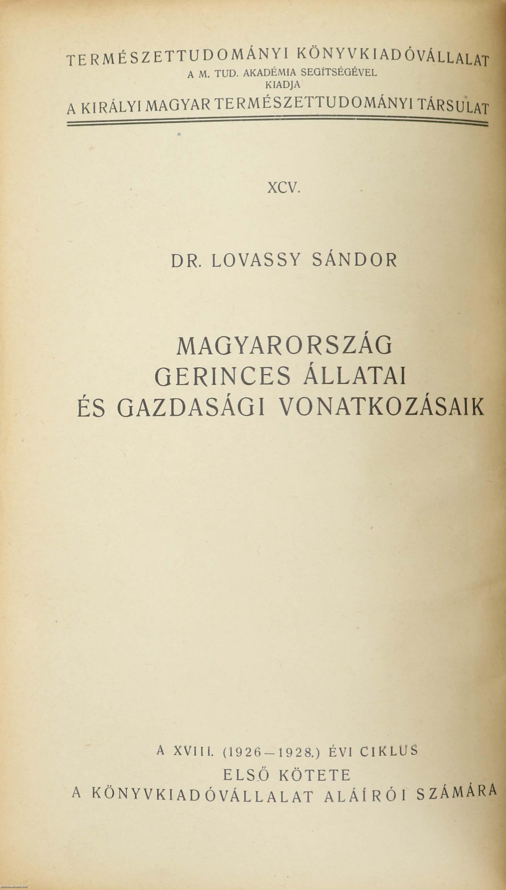 Állatvilágunk sorában kétségen kívül a gerincesek azok, amelyek a magyar értelmiség érdeklődését szélesebb körben is felébresztik. Annál feltűnőbb, hogy irodalmunkban Magyarország gerinces...