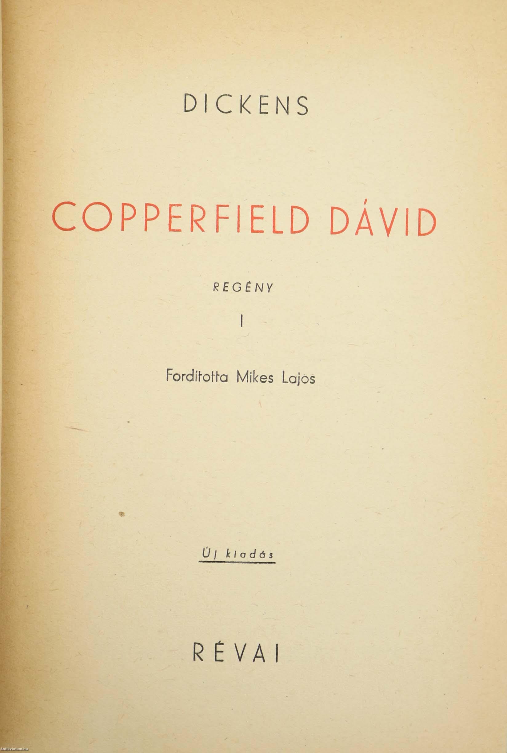Dickens máig a világ egyik legnépszerűbb regényírója. Hírnevével a mull század folyamán senkié nem vetekedhetett és senkinek nem volt oly mély hatása a magyar regényírásra, mint neki, a kedves, melegkedélyű „Boz"-nak. 1836-ban kapja szárnyra a hír: képesfüzetek formájában ekkor jelenik meg egyik legmulatságosabb regénye, a Pickwick-Club. A író mögött szenvedésekkel teli ifjúság áll: tízéves korától fogva keserves munkával kereste meg kenyerét, gyárakban éhbérért dolgozott, majd tizennégy éves korában írnok, később újságíró és parlamenti tudósító. 1870-ben halt meg. A Copperfield Dávid legnépszerűbb regényei közé tartozik. Aprólékos realizmussal ábrázolt alakjai felejthetetlenek. Talán azért olyan megható ez a regény, mert valójában burkolt önéletrajz: gyermekévei szenvedéseinek állított benne emléket Dickens. Az alakok mögött valóban élt személyek vonásait fedezhetjük föl, az ügynökben például az apát, magában Dávidban pedig az írót. Az angol kispolgárság kusza és nehéz életének máig fölülmúlhatatlanul hiteles képe éppoly mély élmény marad, mint amilyen felejthetetlen ismerőseink a hősök.