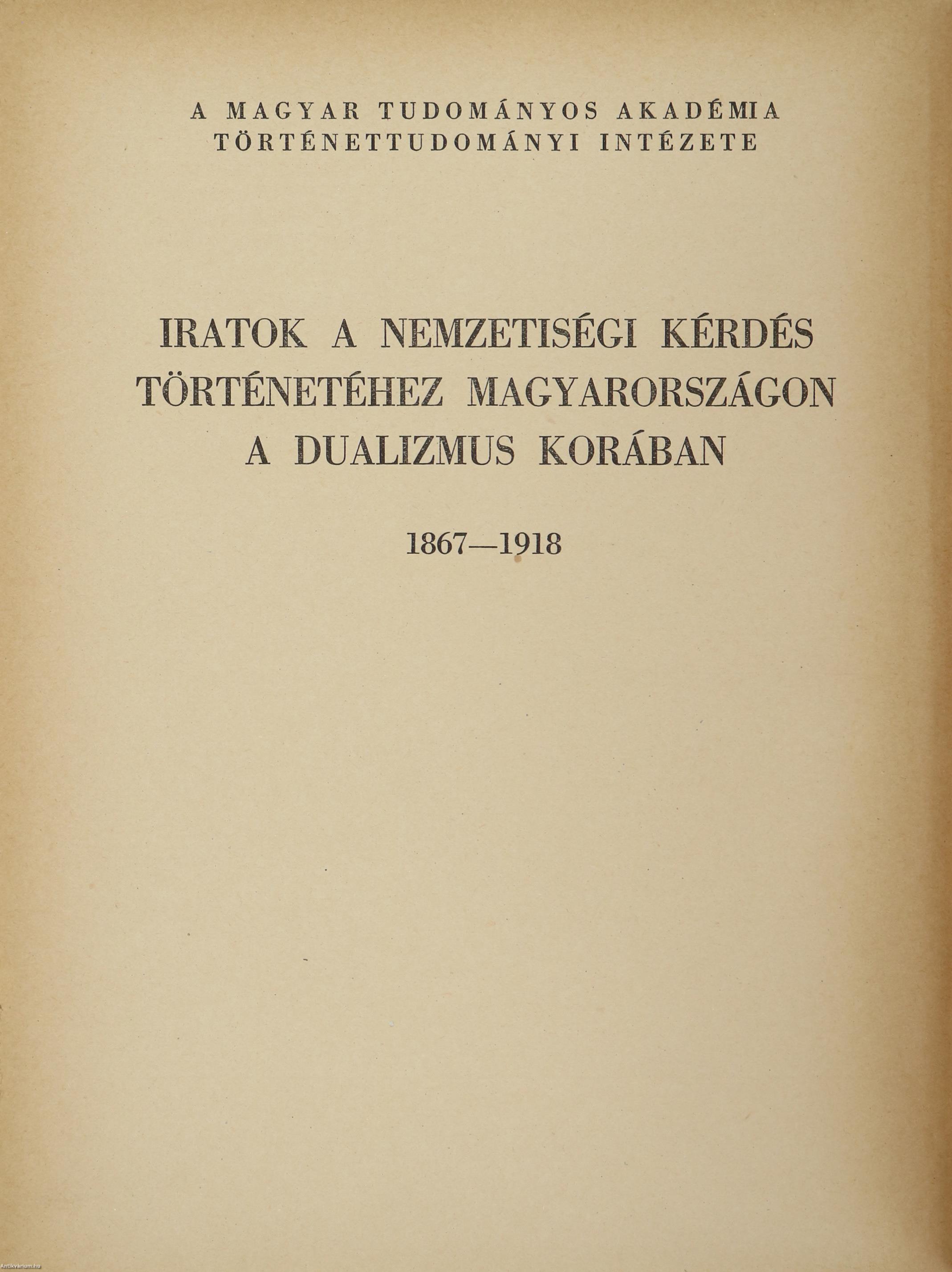 1868 nov. 24-dec. 4. A nemzetiségi törvényjavaslat országgyűlési vitája 126