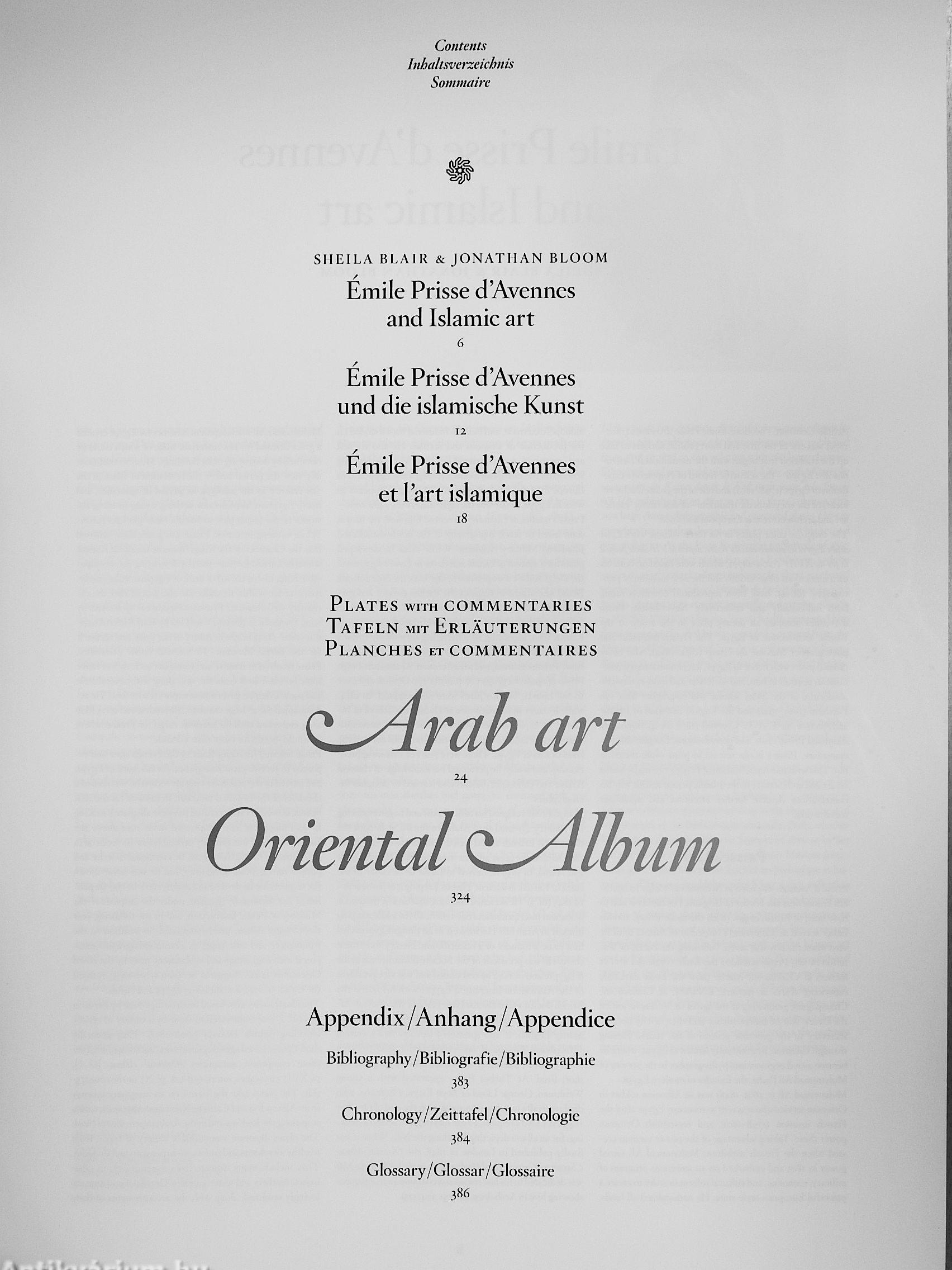 A könyv az arab ornamentika lenyűgöző világát mutatja be: geometrikus minták, növényi arabeszkek és kalligrafikus díszítések formálják az iszlám művészet harmóniáját. A háromnyelvű (angol, francia, német) kiadás Sheila S. Blair és Jonathan Bloom tanulmányaival egészül ki, akik tudományos kontextusba helyezik a művet. Az L’Art arabe egyszerre művészettörténeti forrás és vizuális inspiráció, méltó tisztelgés Émile Prisse d’Avennes életműve és az arab díszítőművészet időtlen szépsége előtt.