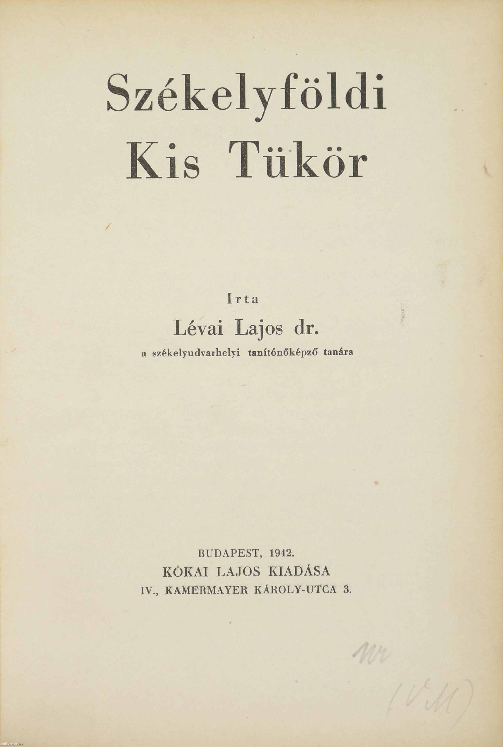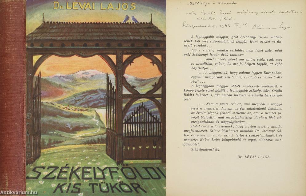 Szerző által dedikált példány. Első kiadás. Székelyföldi Kis Tükör. Írta: Dr. Lévai Lajos a székelyudvarhelyi tanítóképző tanára.