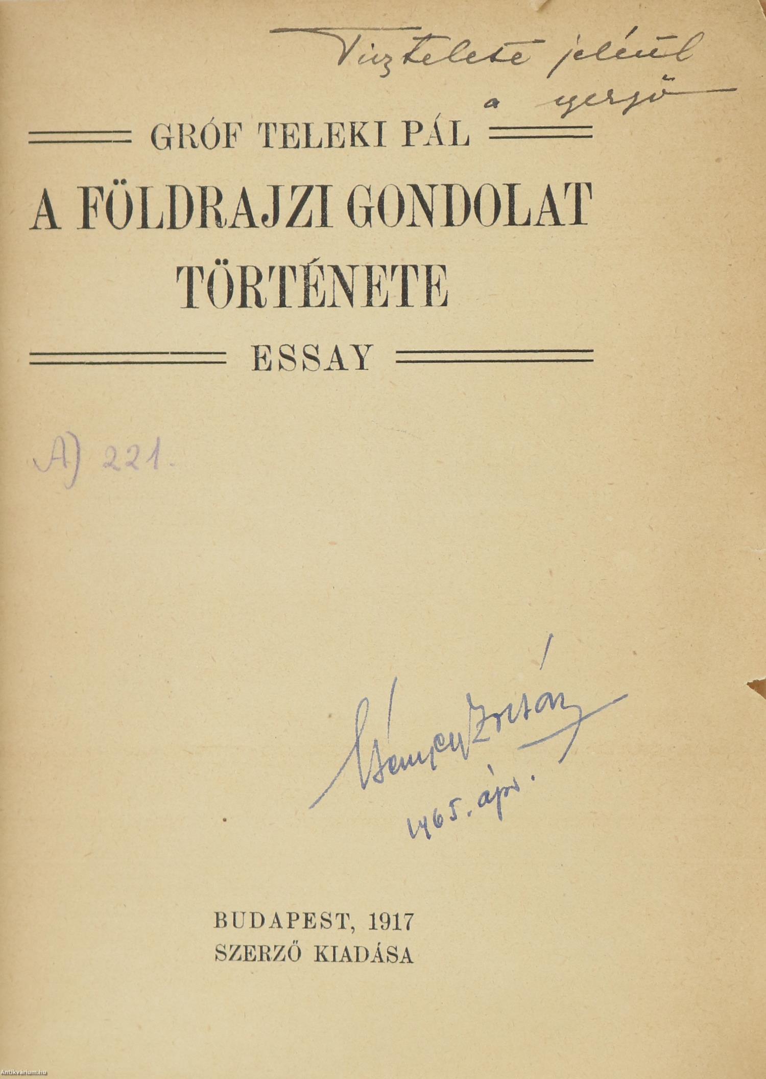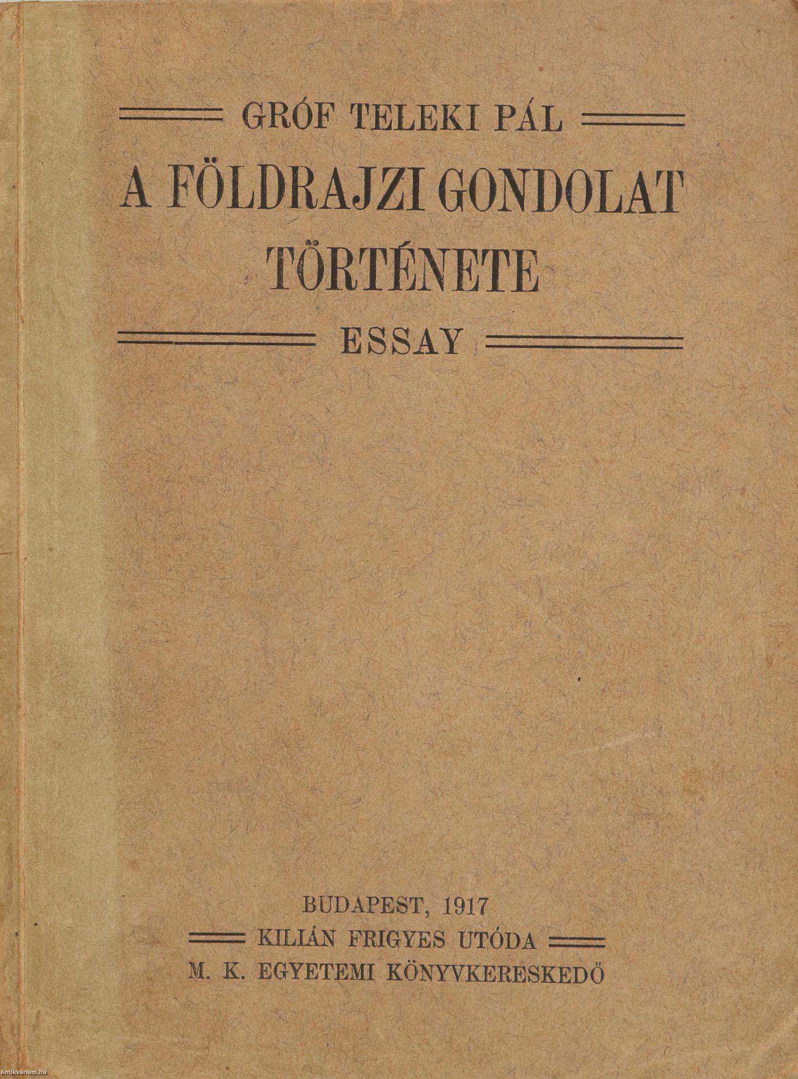 I. A kérdés föltevése. - A földrajzi gondolat története