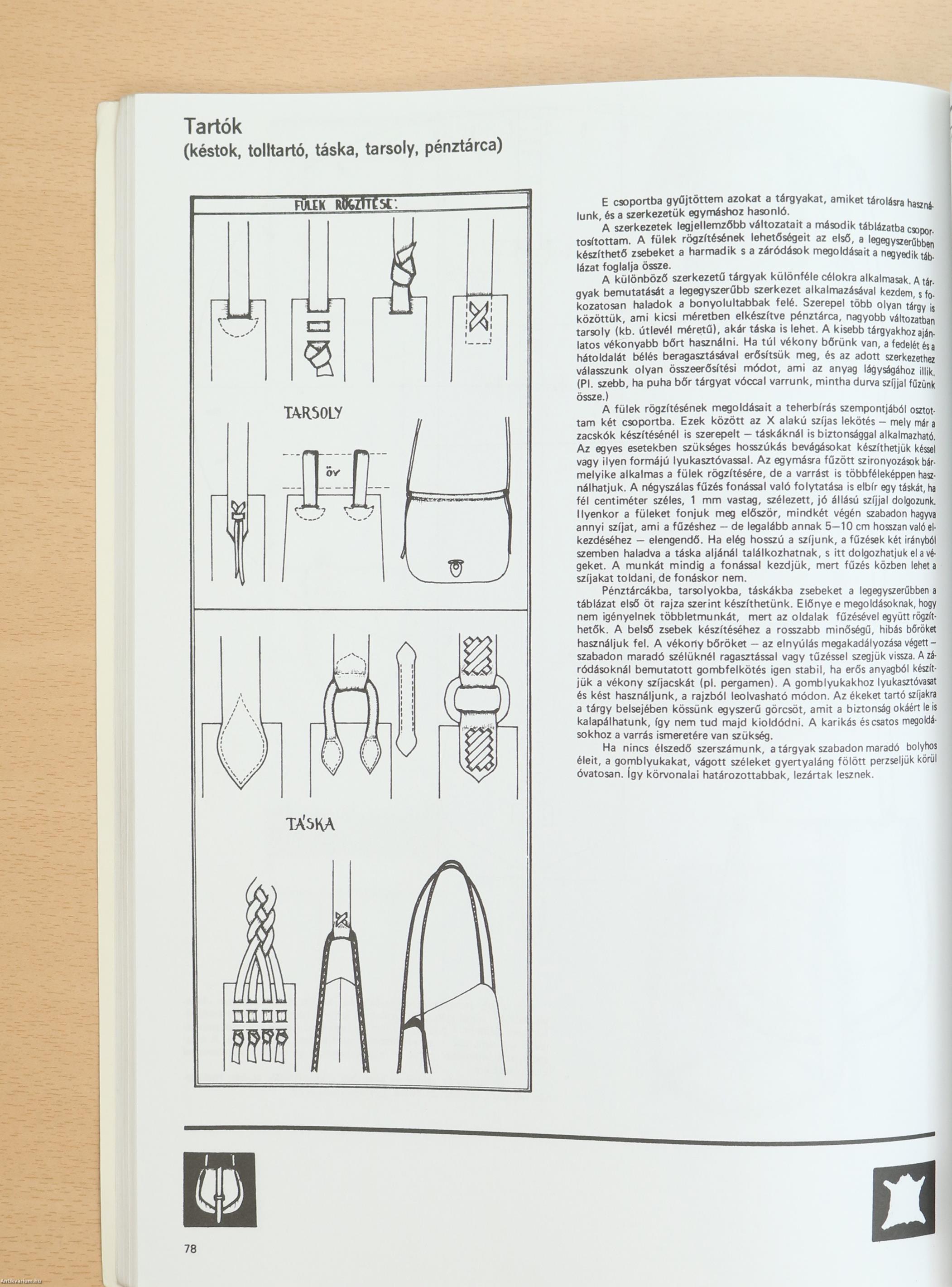 Ez a könyv azoknak segíthet, akik kedvet éreznek magukban arra, hogy bőrből tarsolyt, pénz- és levéltárcát vagy táskát készítsenek.