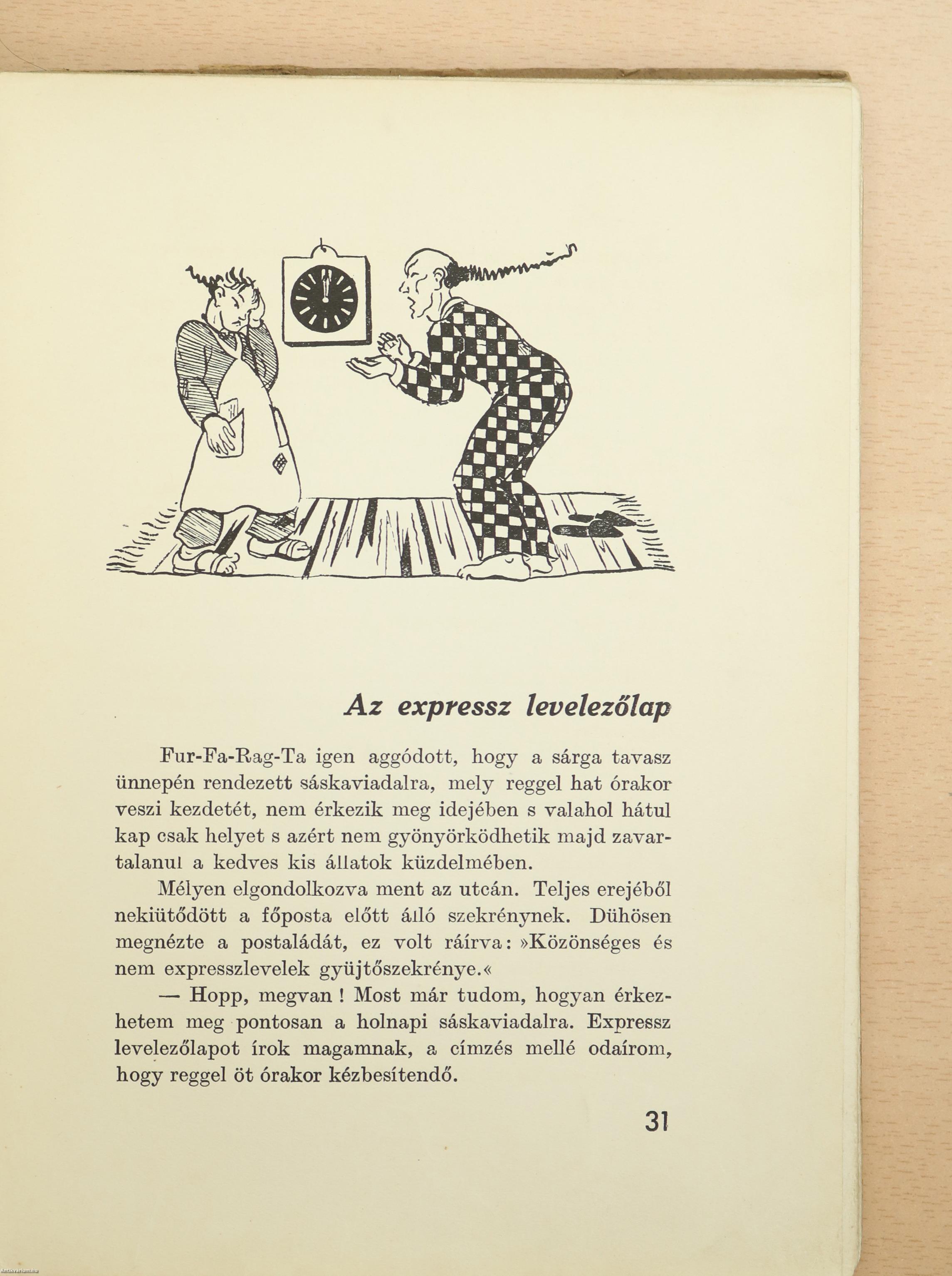 Lányok, fiúk, ide figyeljetek. Nem magyarázom nektek, merre van Kína, mert azt ti jól tudjátok, hogy Ázsiában van. Azt se magyarázom, hogy milyen egy kínai, mert azt is tudjátok jól, hogy sárga. Azt is megtanultátok már bizonyára, hogy Peking Kína fővárosa. De hogy Pekingben él Fur-Fa-Rag-Ta, a mókáskedvű ezermester, azt, úgy-e, most halljátok először. Nagy kópé őkelme! Feltalált már sok mindent: repülő sótartót, lyukaspoharat (amelyik éppen olyan volt szemre, mint egy rendes pohár, csak mikor ajkához emelte a szomjúságtól epedő, - rejtélyes módon - az alján utolsó cseppig mind kifolyt a vágyva vágyott ital). Feltalált még Fur-Fa-Rag-Ta: meleg jeget, hideg tüzet, ki tudná azt felsorolni, hogy mi mindent.