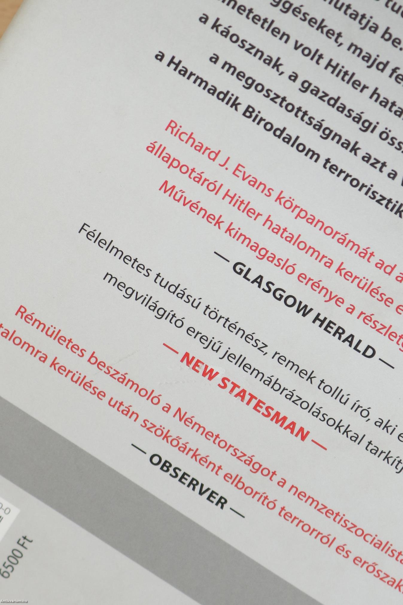 Richárd J. Evans körpanorámát ad a német társadalom állapotáról Hitler hatalomra kerülése előtt, alatt és után. Művének kimagasló erénye a részletgazdagság.