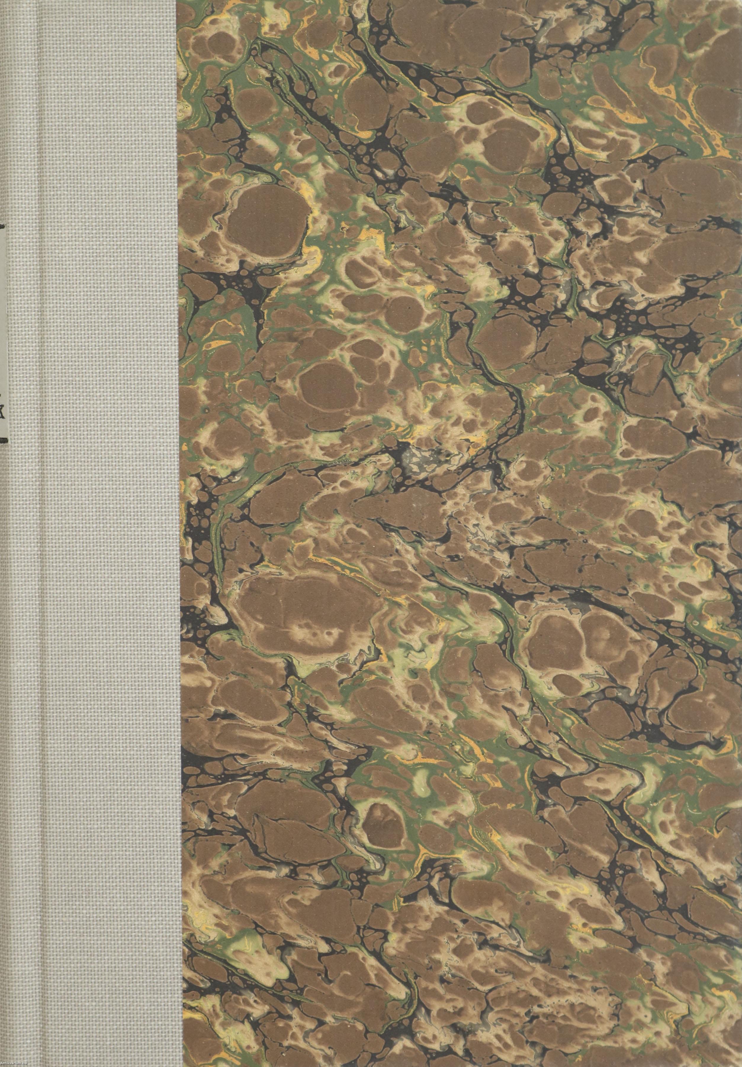 Modern félvászon kötésben lévő példány feliratozatlan, színes, márványmintás fed- és hátlappal, feliratos könyvgerinccel, a színes feliratos kiadói címfedél megtartásával, modern merített papíros előzéklapokkal, tiszta, szép belívekkel, hiánytalan, jó állapotban.