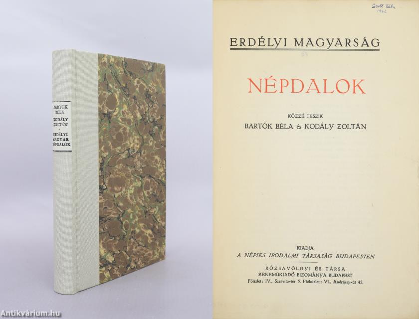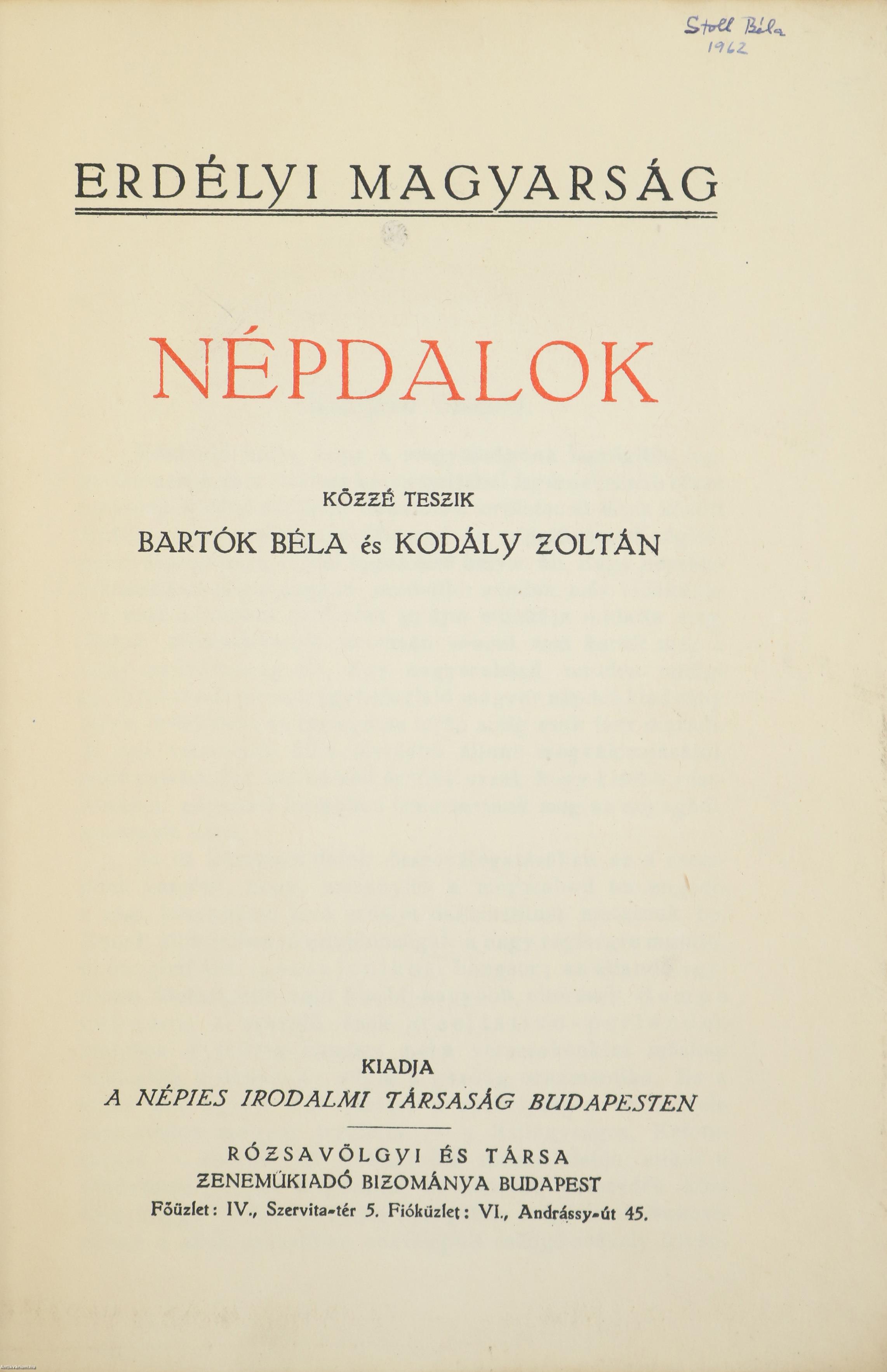 Az Erdélyi magyarság című sorozatban (számjelzés nélkül) megjelent mű. Népdalok. Közzé teszi Bartók Béla és Kodály Zoltán.