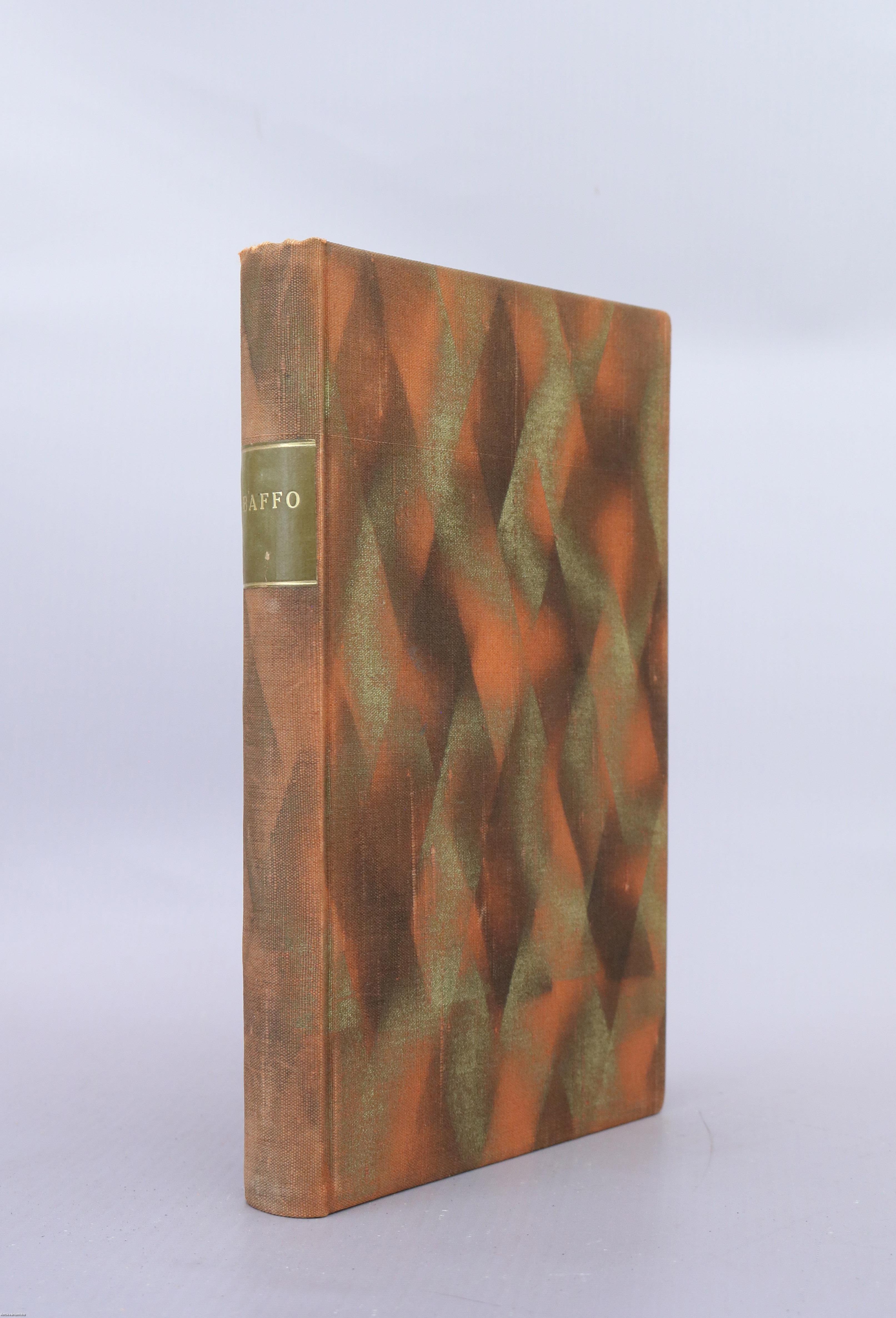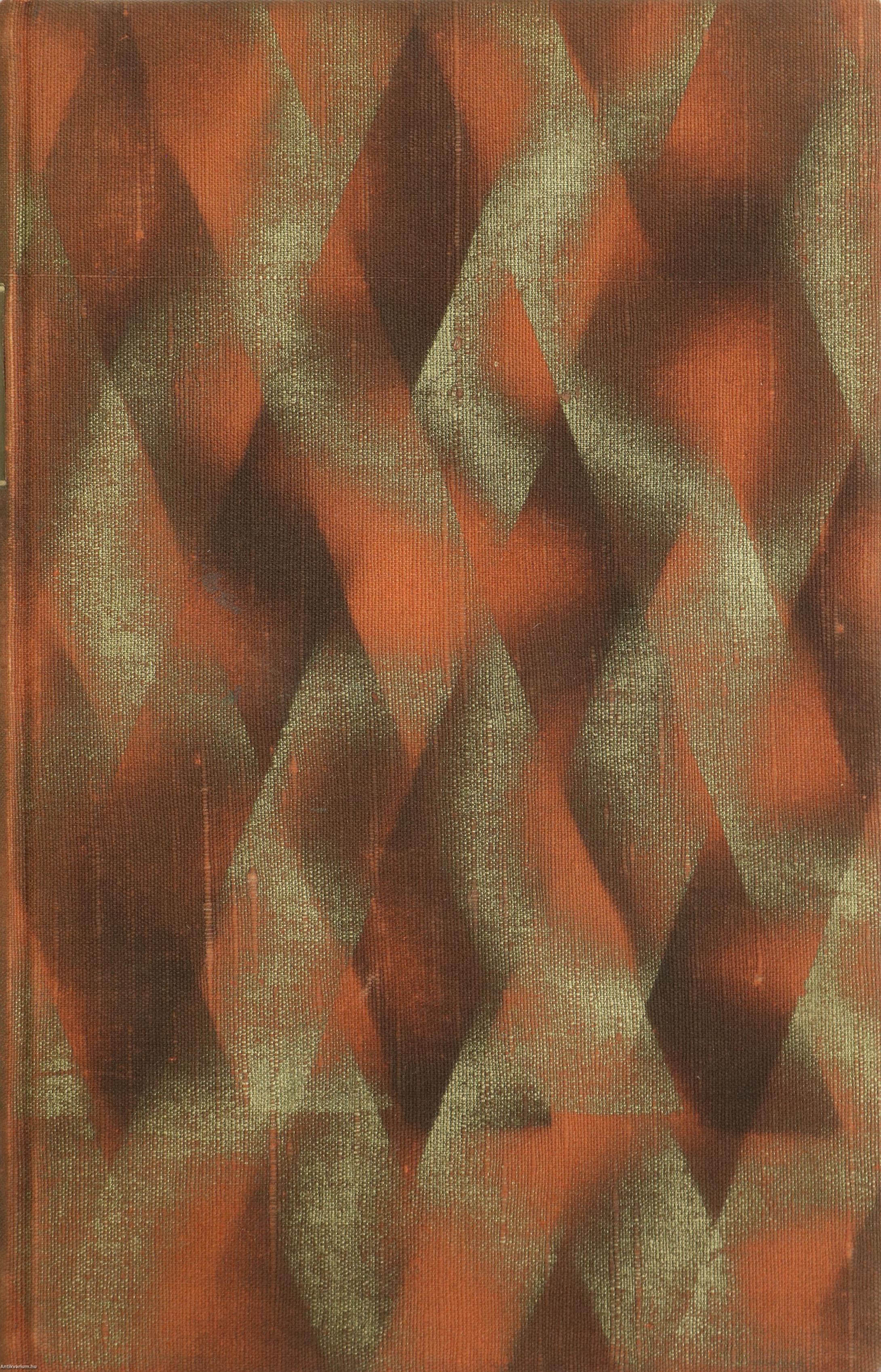Könyvkötői varrotgészvászon kötés egyedi színezésű, bibliofil fed- és hátlappal, hiányos előzéklapokkal, tiszta, szép belívekkel, jó állapotban.