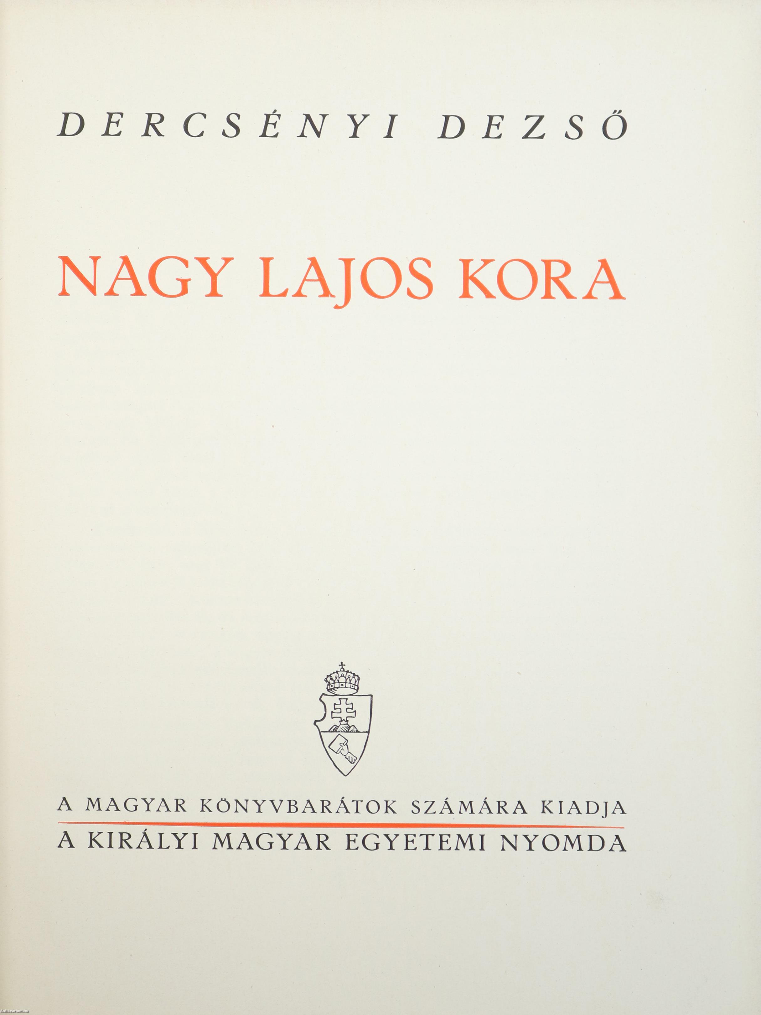 Első kiadás. Nagy Lajos kora. Írta: Dercsényi Dezső.