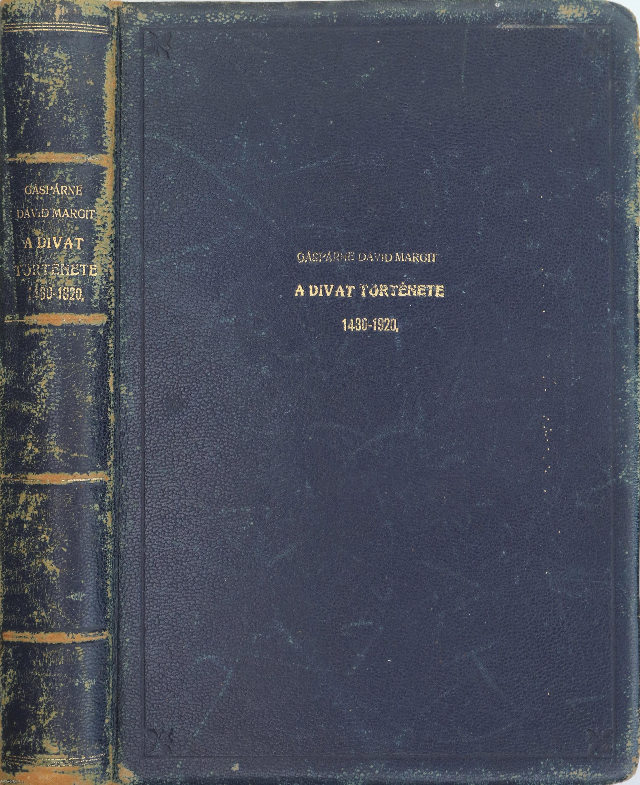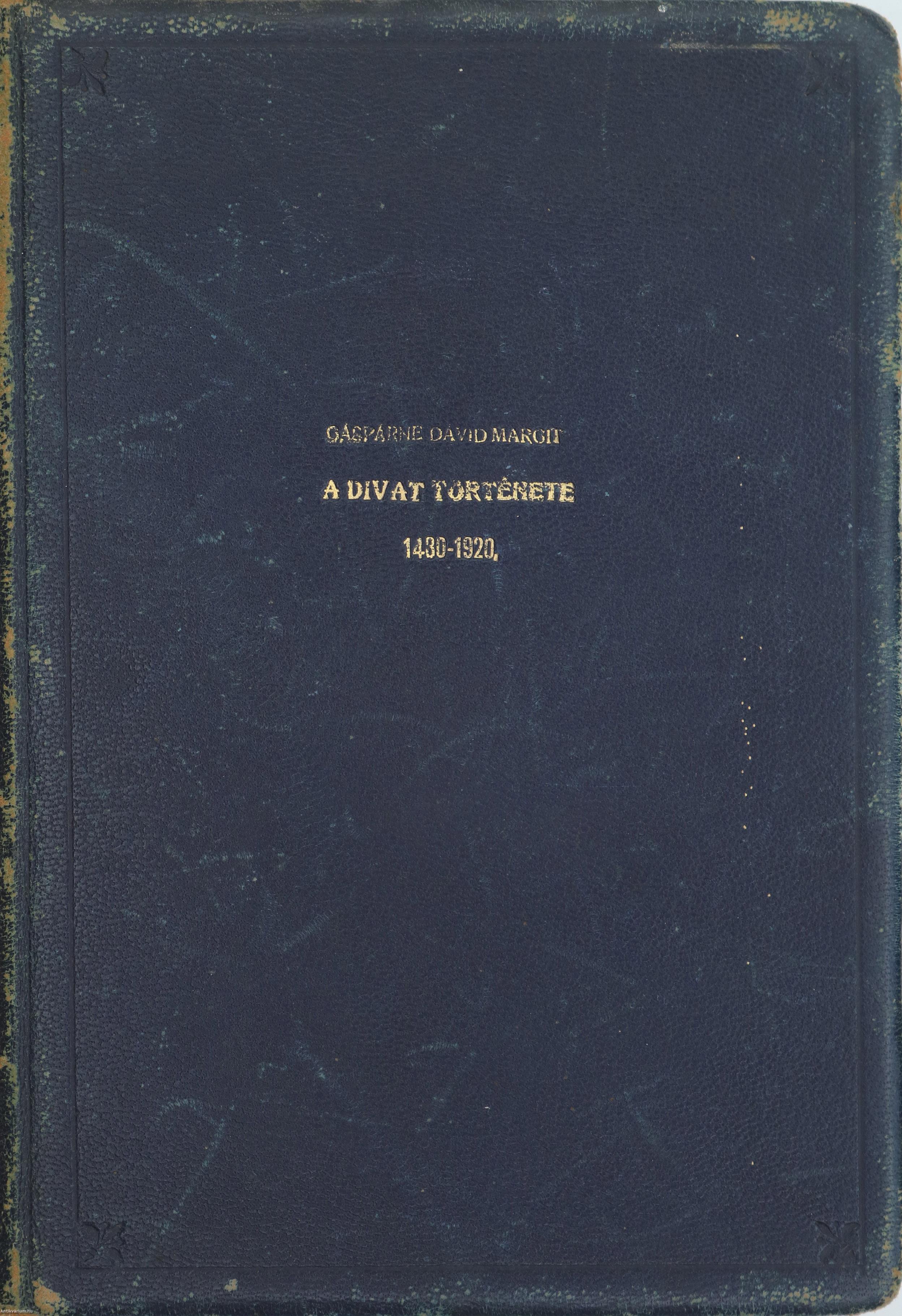 Első kiadás. A divat története I-II. Erkölcsök, szokások, viseletek. (két kötet egy könyvben) Írta: Gáspárné Dávid Margit.