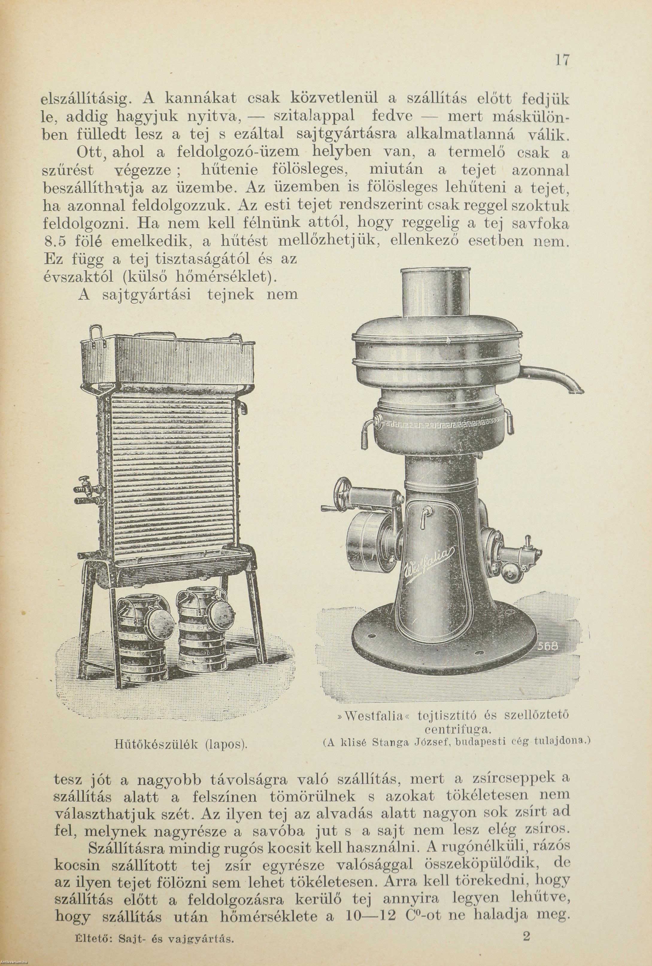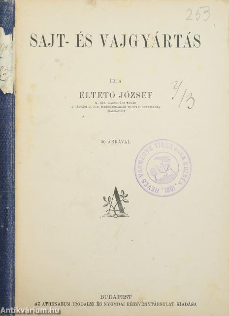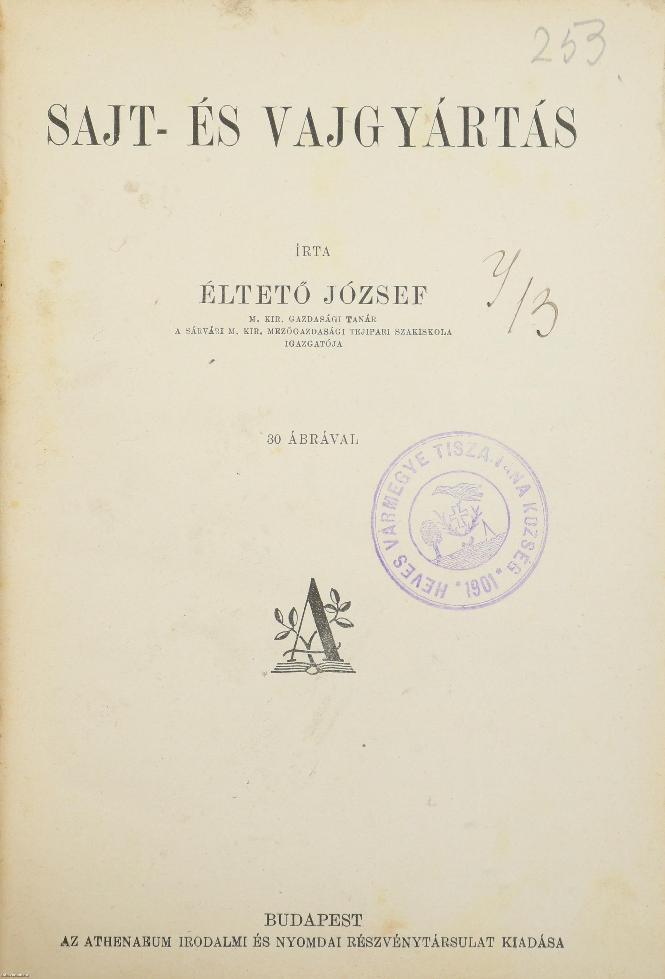 Sajt- és vajgyártás. Írta: Éltető József m. kir. gazdasági tanár, a Sárvári M. Kir. Mezőgazdasági Tejipari Szakiskola igazgatója.