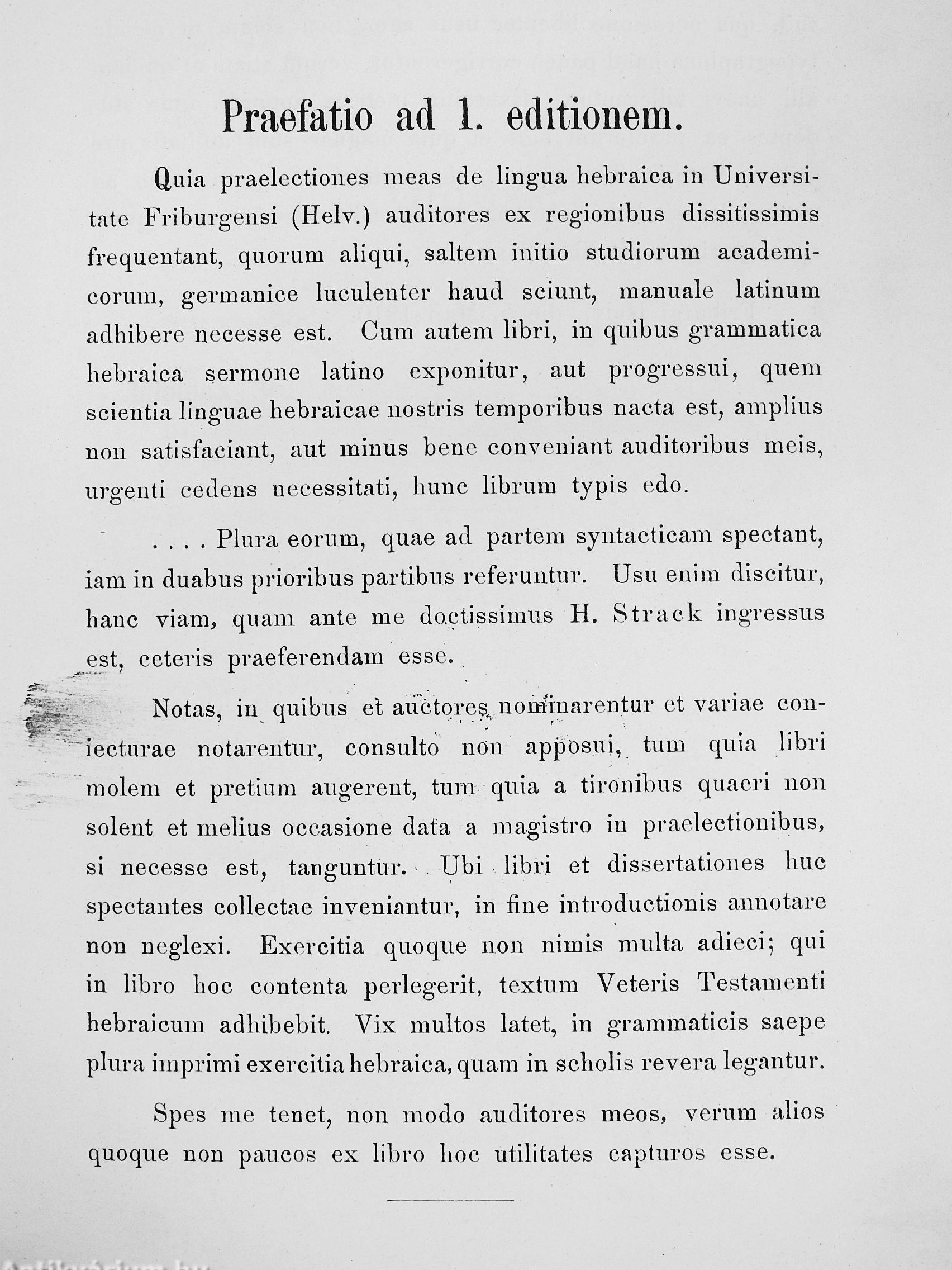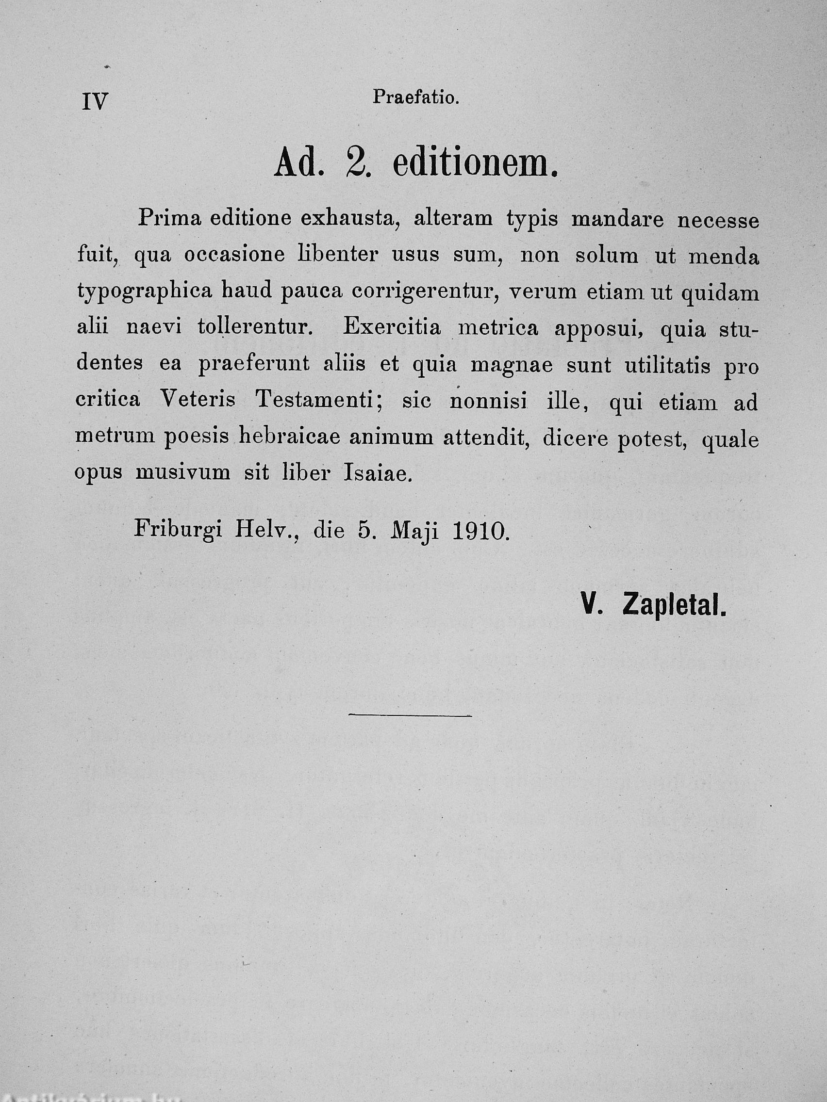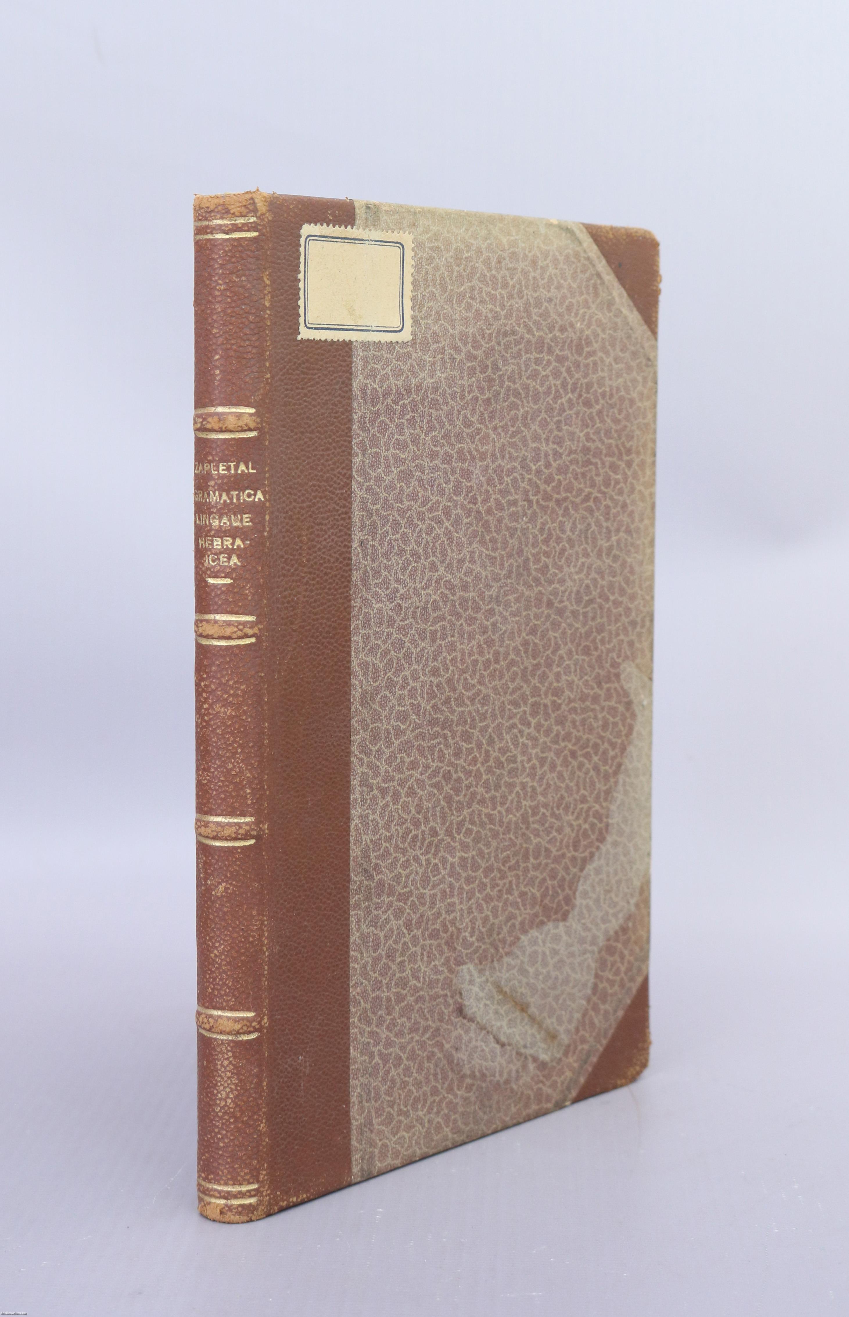 Grammatica Linguae Hebraicae cum exercitiis et glossario Studiis academicis accommodata a V. Zapletal, O. P., exegeseos vet. test. in Universitate Friburgensi (Helv.) professore ordinario. Editio altera, emendata. [latin nyelvű héber nyelvkönyv] / A héber nyelv nyelvtana gyakorlatokkal és szószedettel, az egyetemi tanulmányokhoz alkalmazva, V. Zapletal, O.P. tollából, az Ószövetség magyarázatának rendes tanára a (svájci) Friburgi Egyetemen. Második, javított kiadás. Címlapon korábbi tulajdonosi bélyegzéssel, tollal beírt megjegyzéssel, hátlapon korábbi tulajdonosi bélyegzéssel.